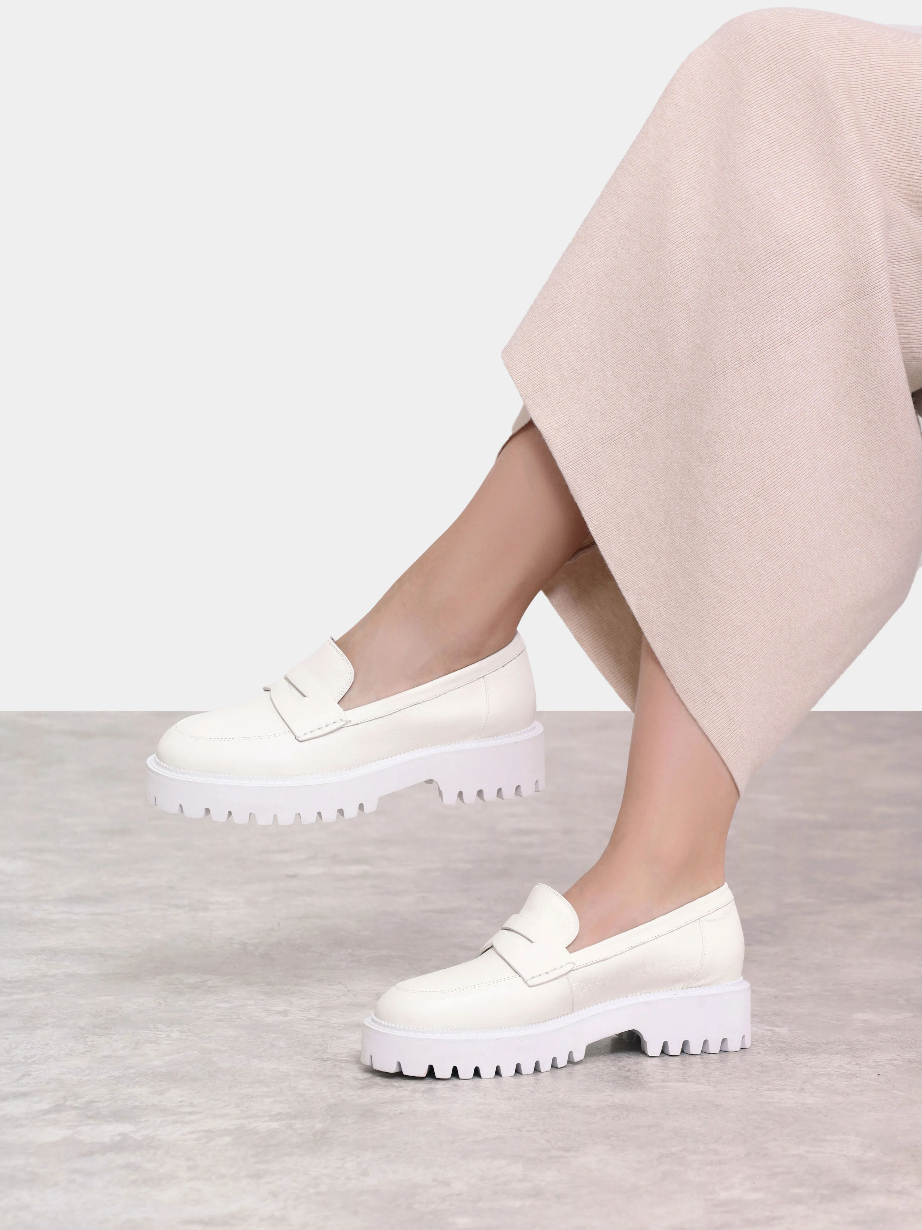 Лоферы женские всесезонные, цвет молочный, натуральная кожа