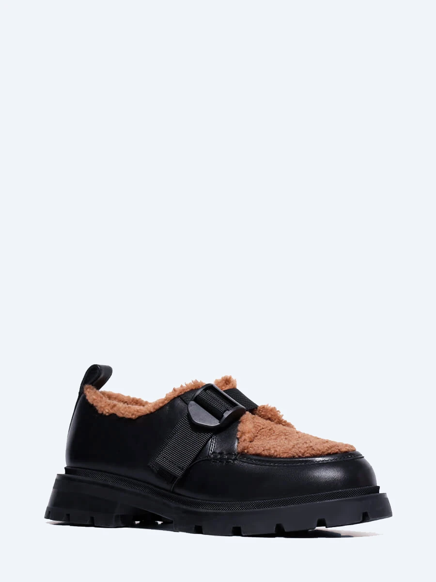 Лоферы женские зимние, цвет черный, натуральная кожа