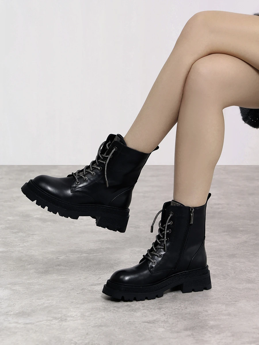 Ботинки женские зимние, цвет черный, натуральная кожа