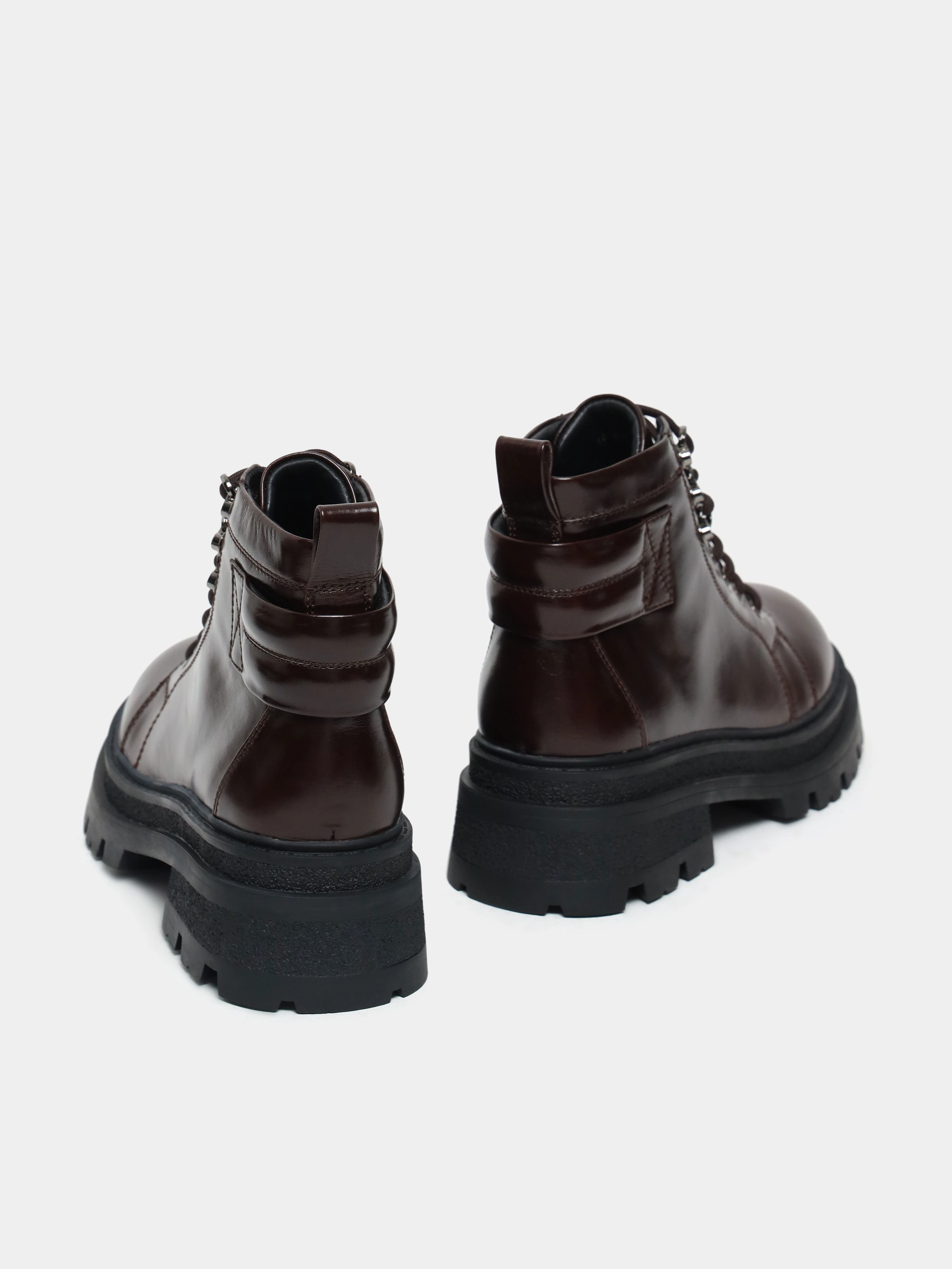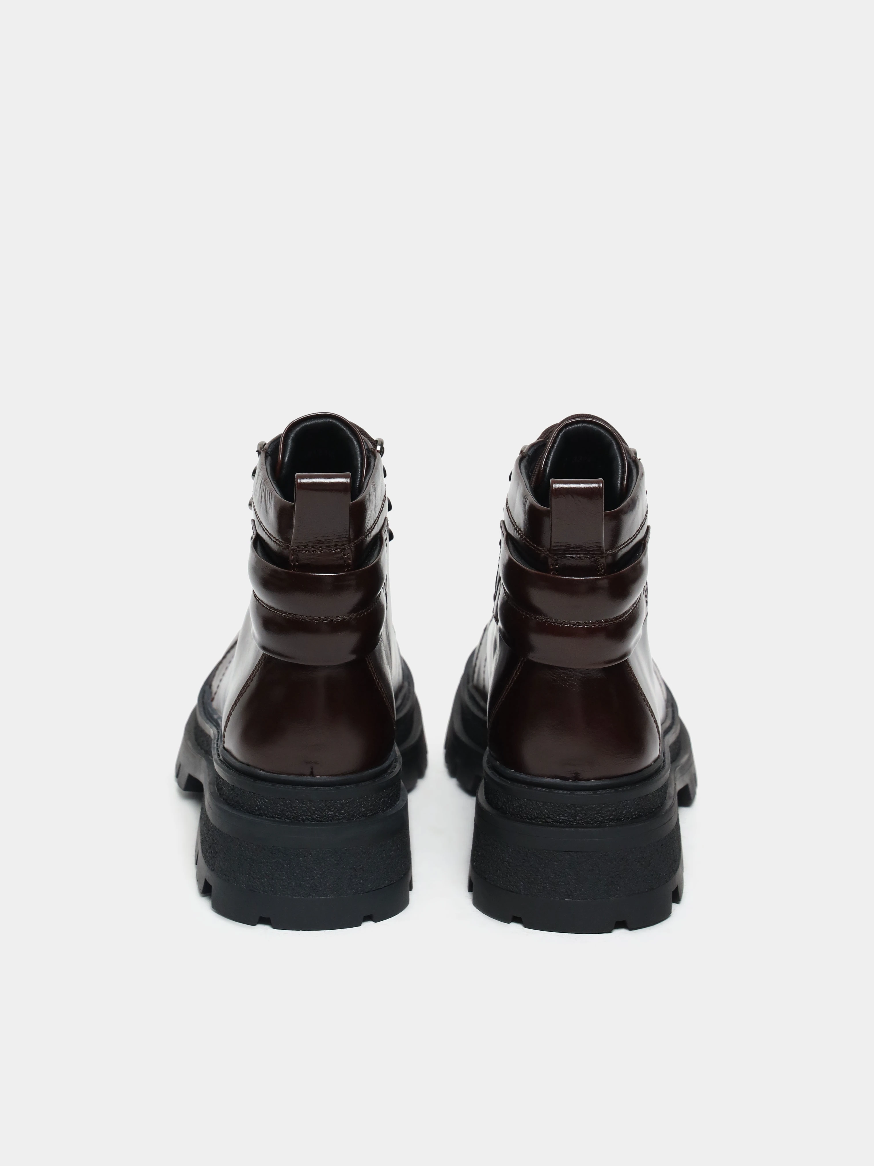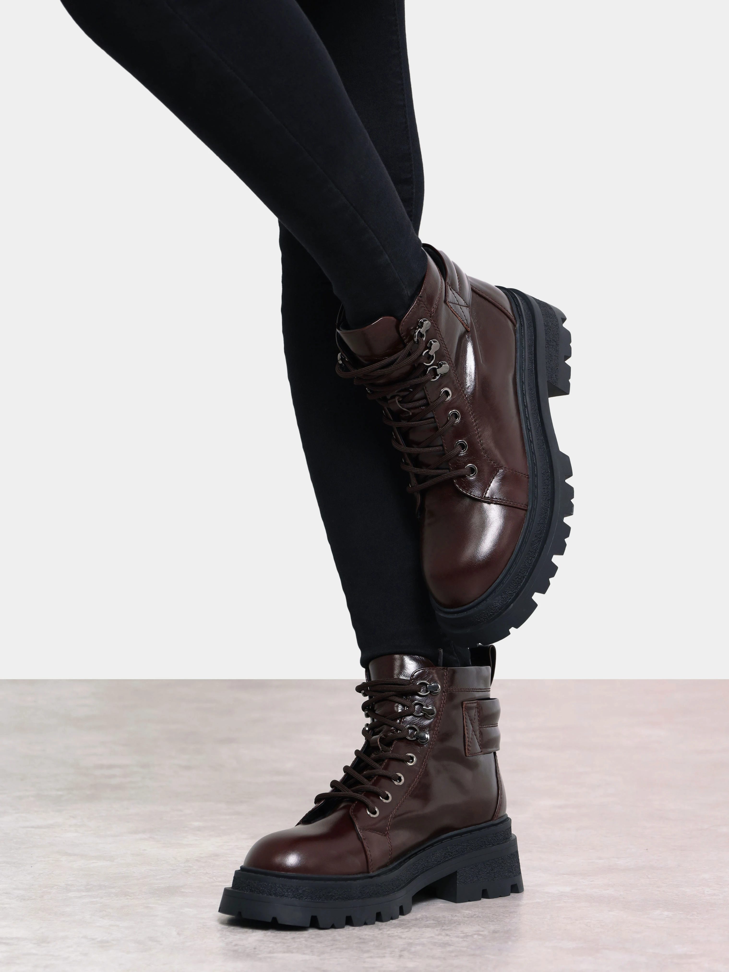Ботинки женские демисезонные, цвет коричневый, натуральная масляная кожа