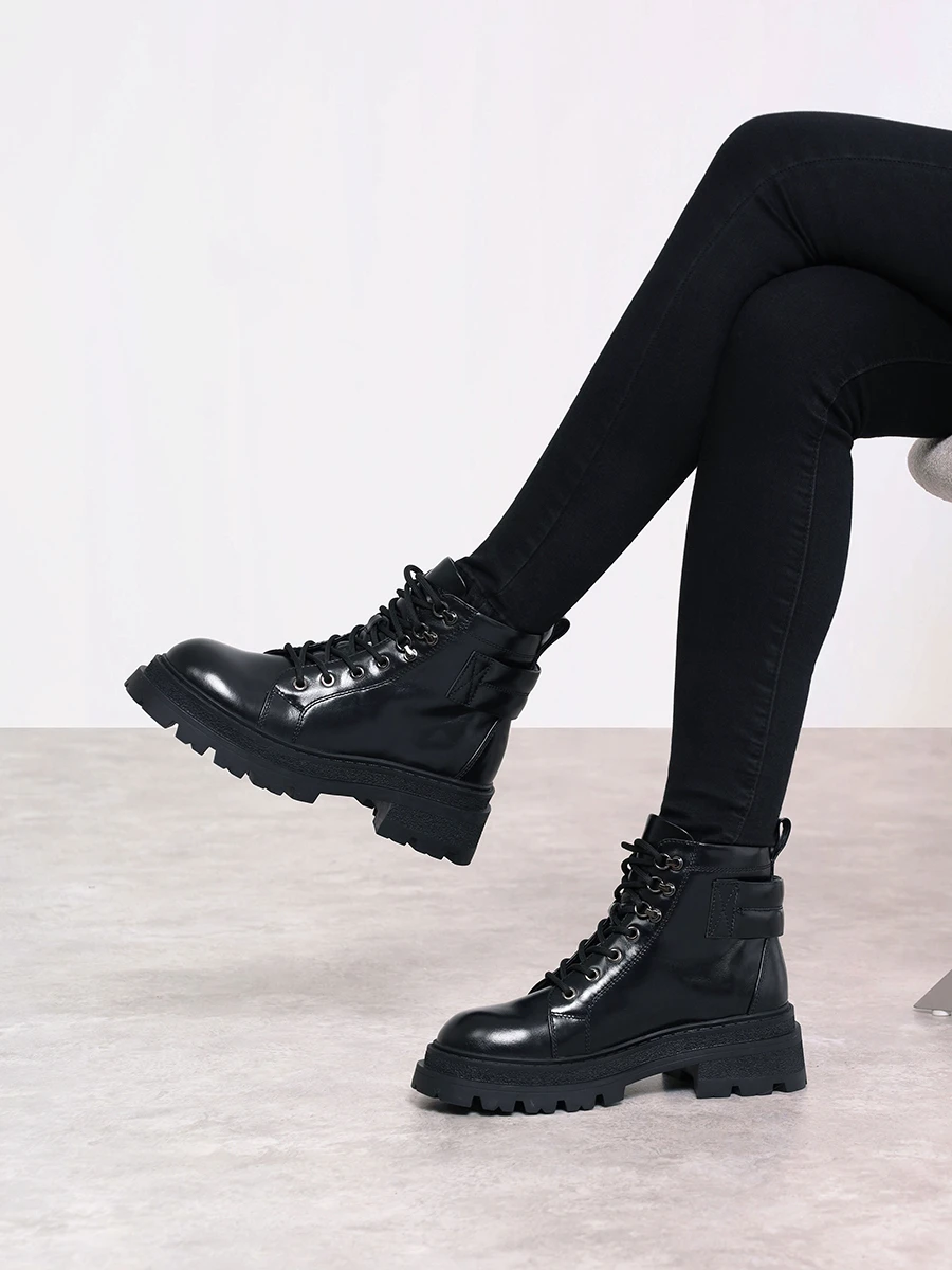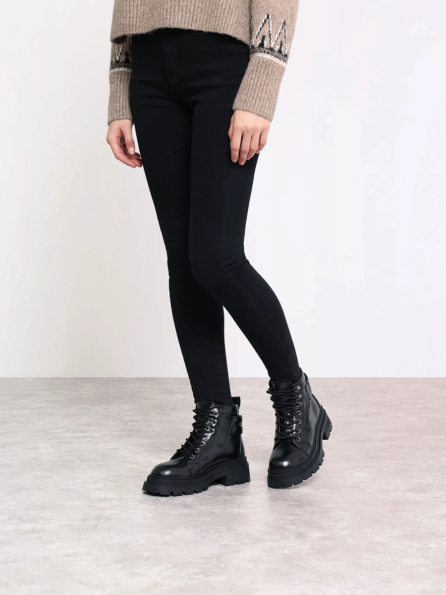 Ботинки женские зимние, цвет черный, натуральная масляная кожа