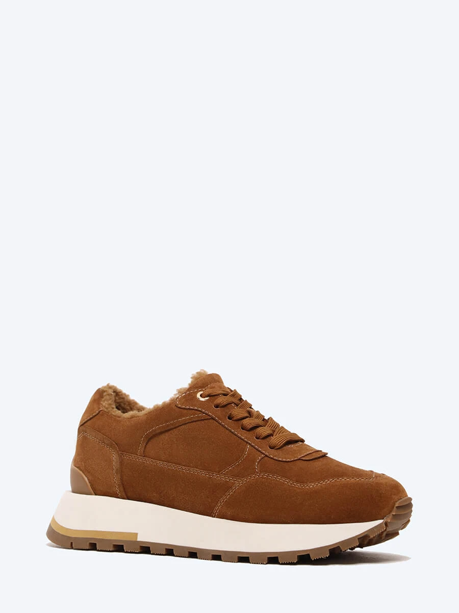Кроссовки женские зимние, цвет рыжий, натуральный спилок