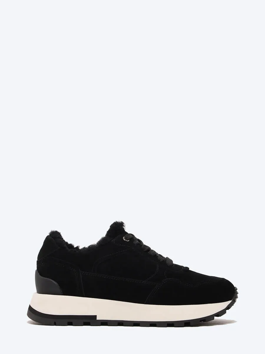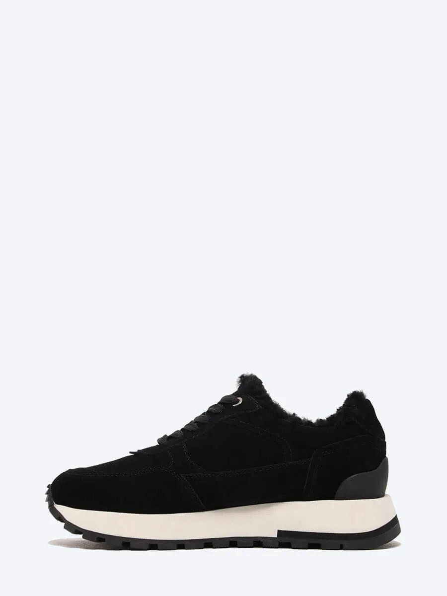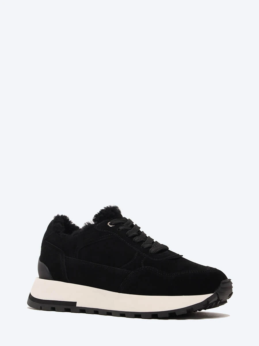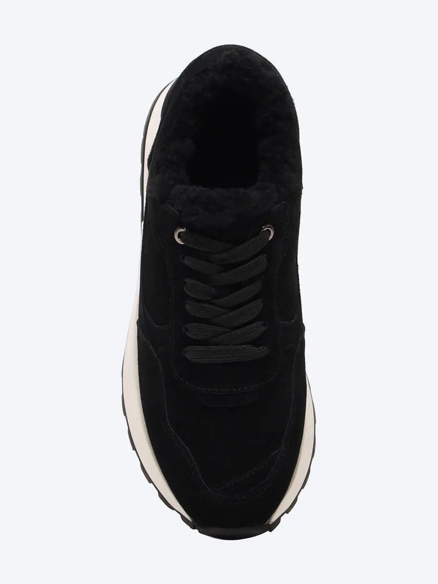 Кроссовки женские зимние, цвет черный, натуральный спилок