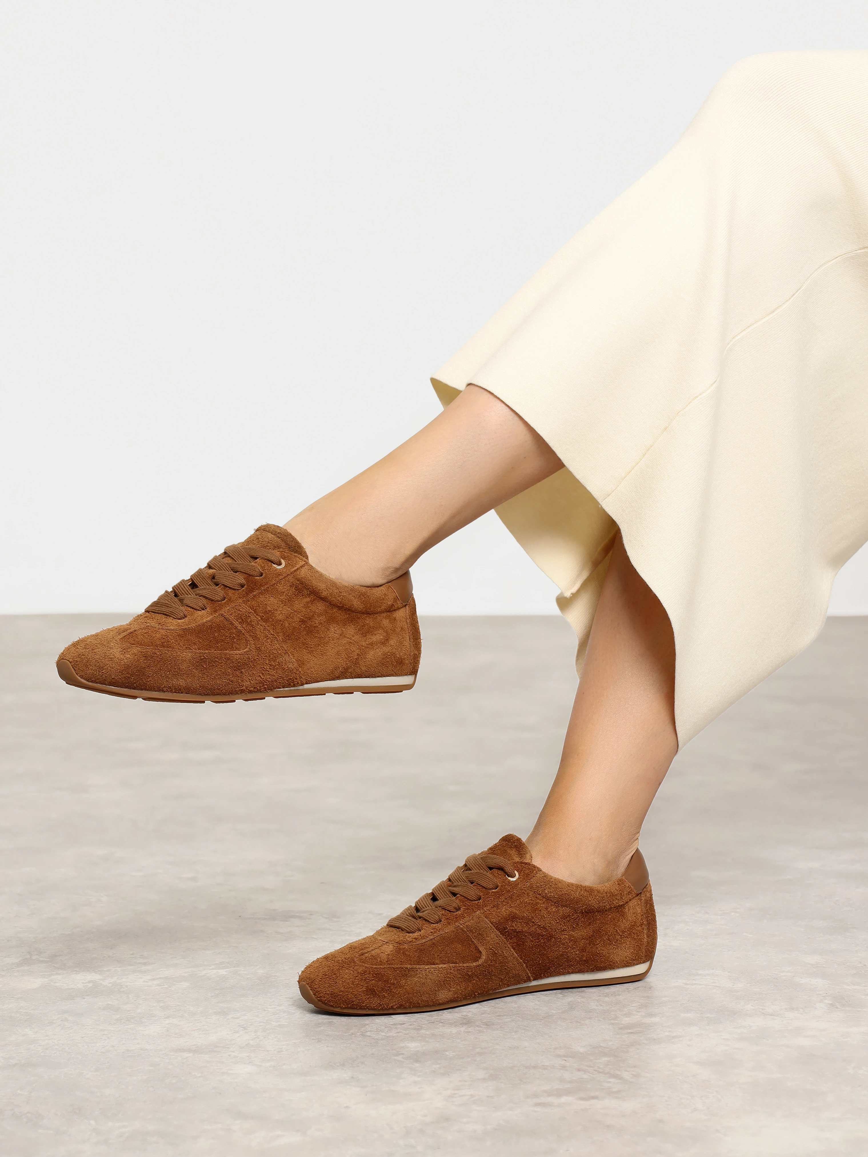 Кеды женские демисезонные, цвет рыжий, натуральный спилок