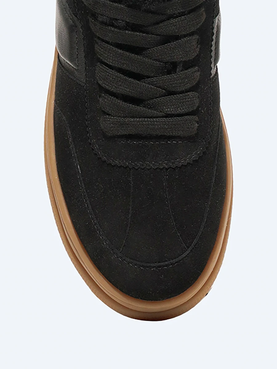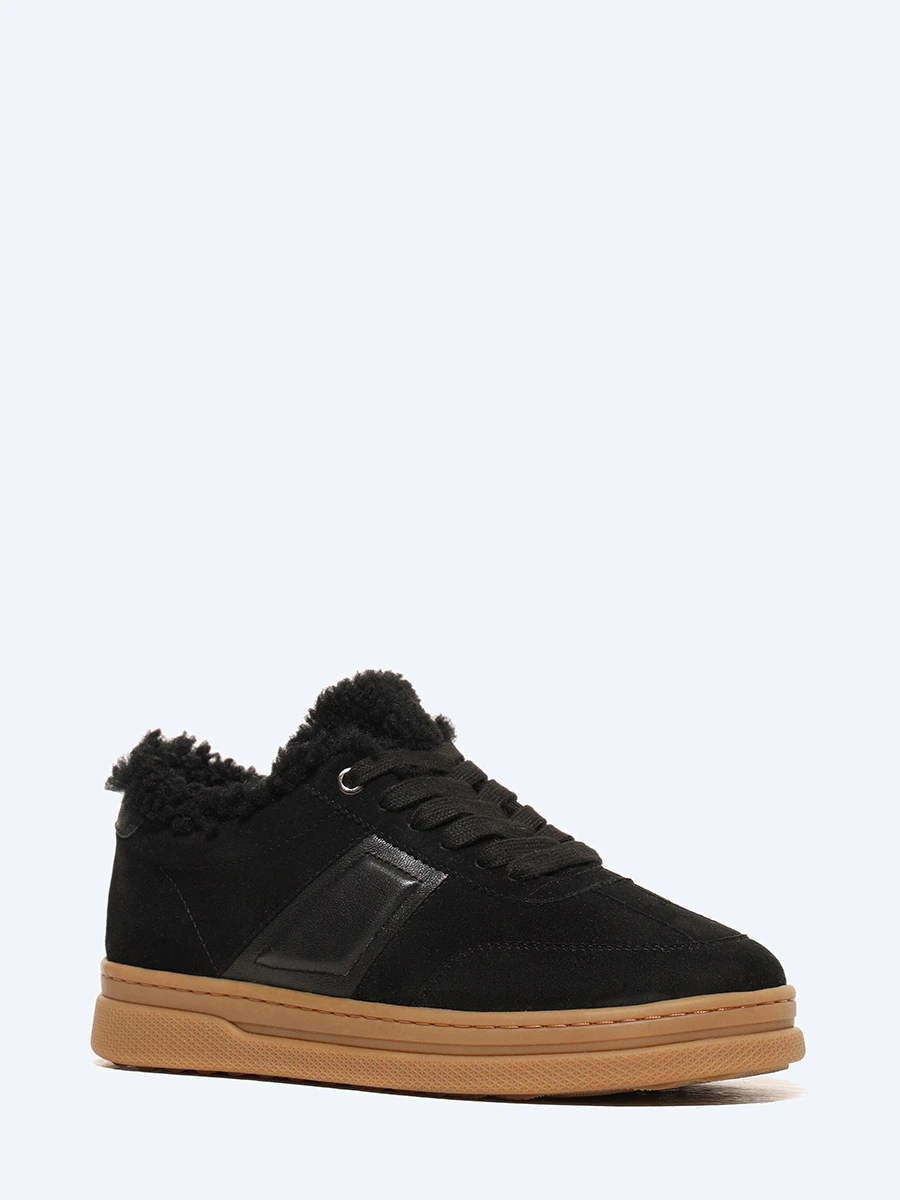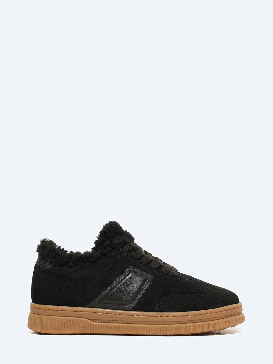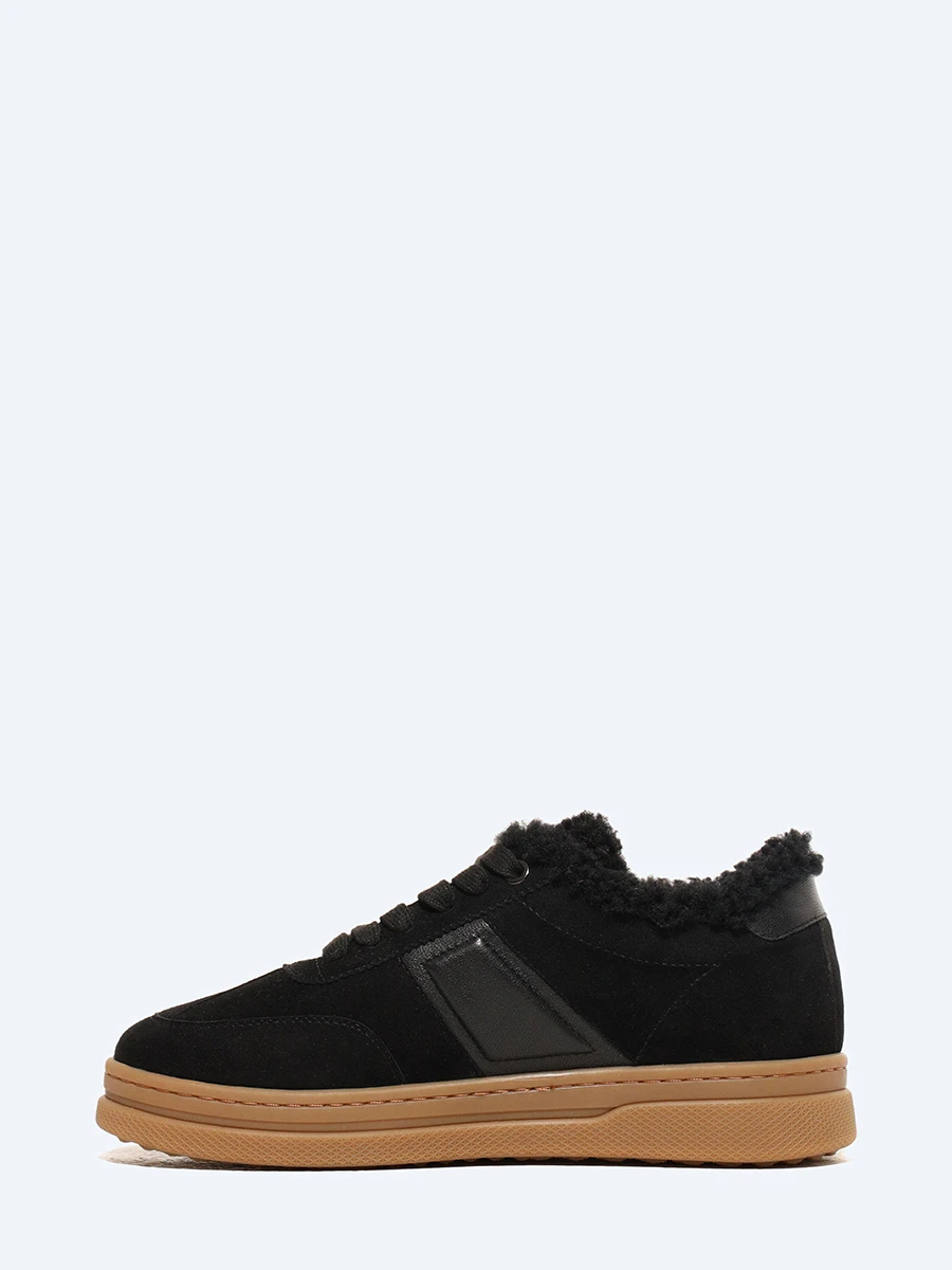 Кеды женские зимние, цвет черный, натуральный велюр/натуральная кожа