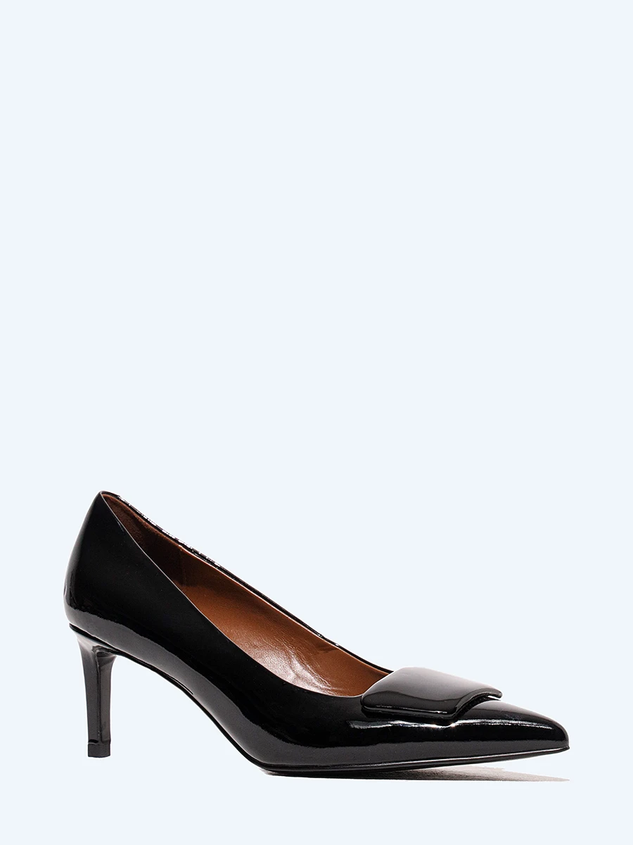 Туфли женские всесезонные, цвет черный, натуральная лаковая кожа