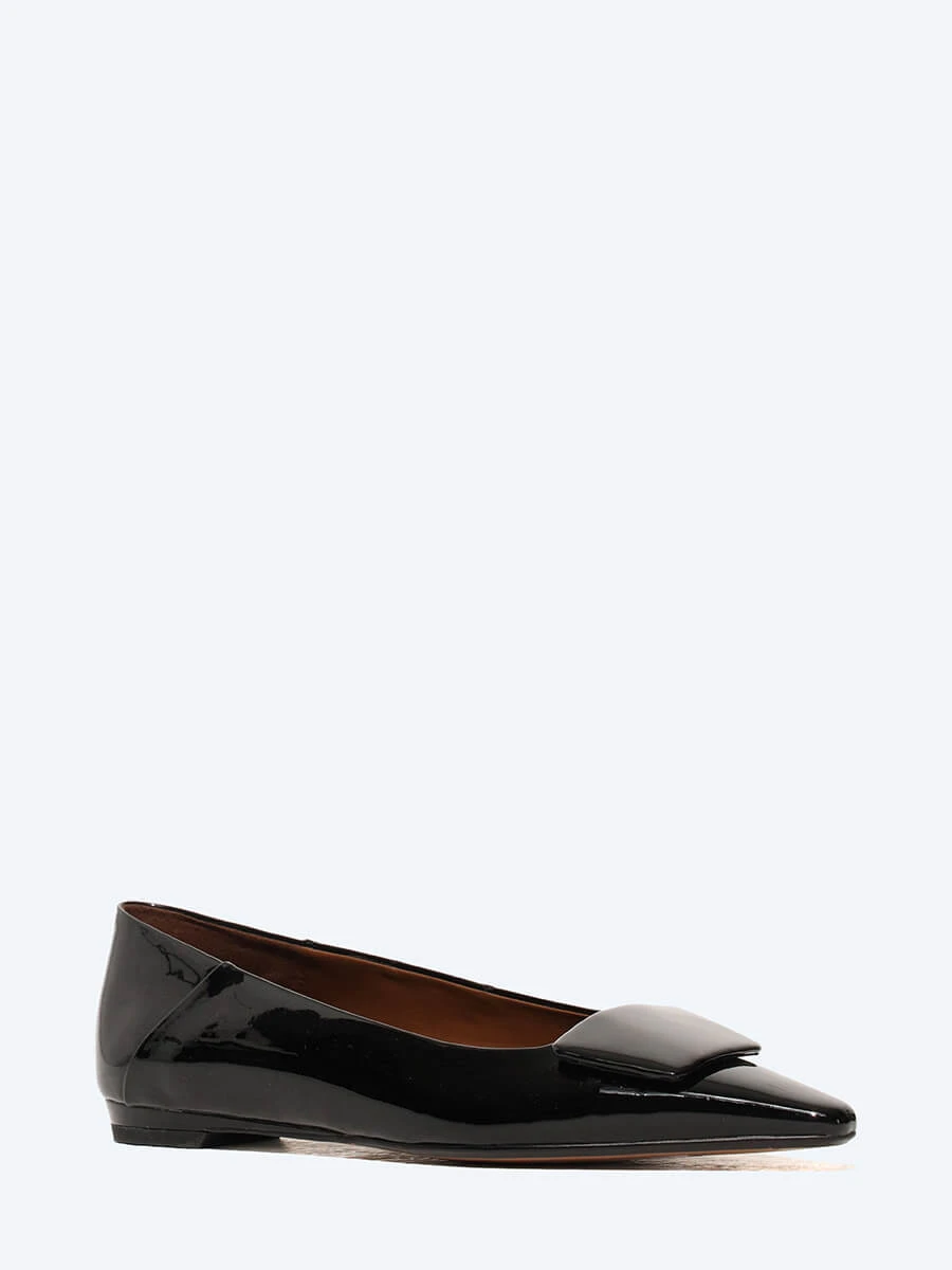 Балетки женские всесезонные, цвет черный, натуральная лаковая кожа