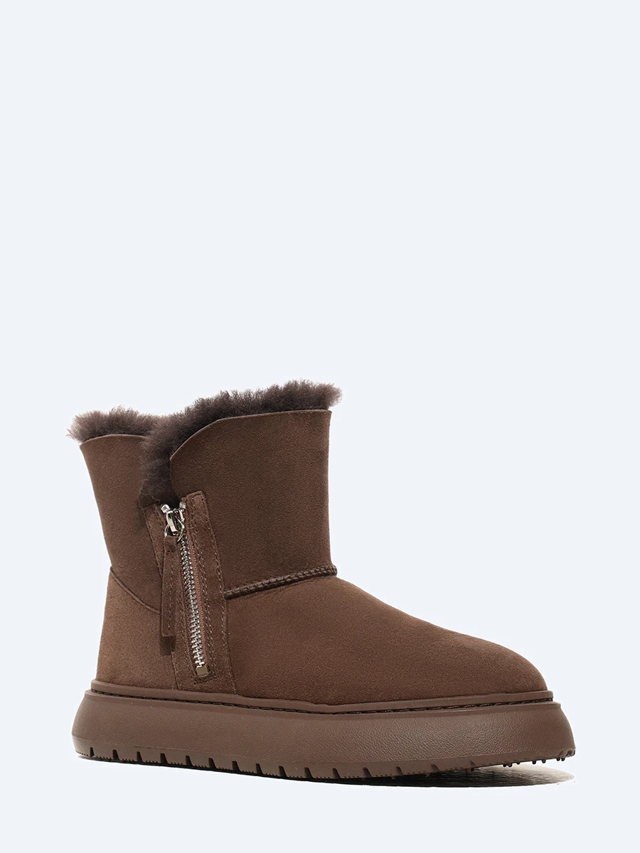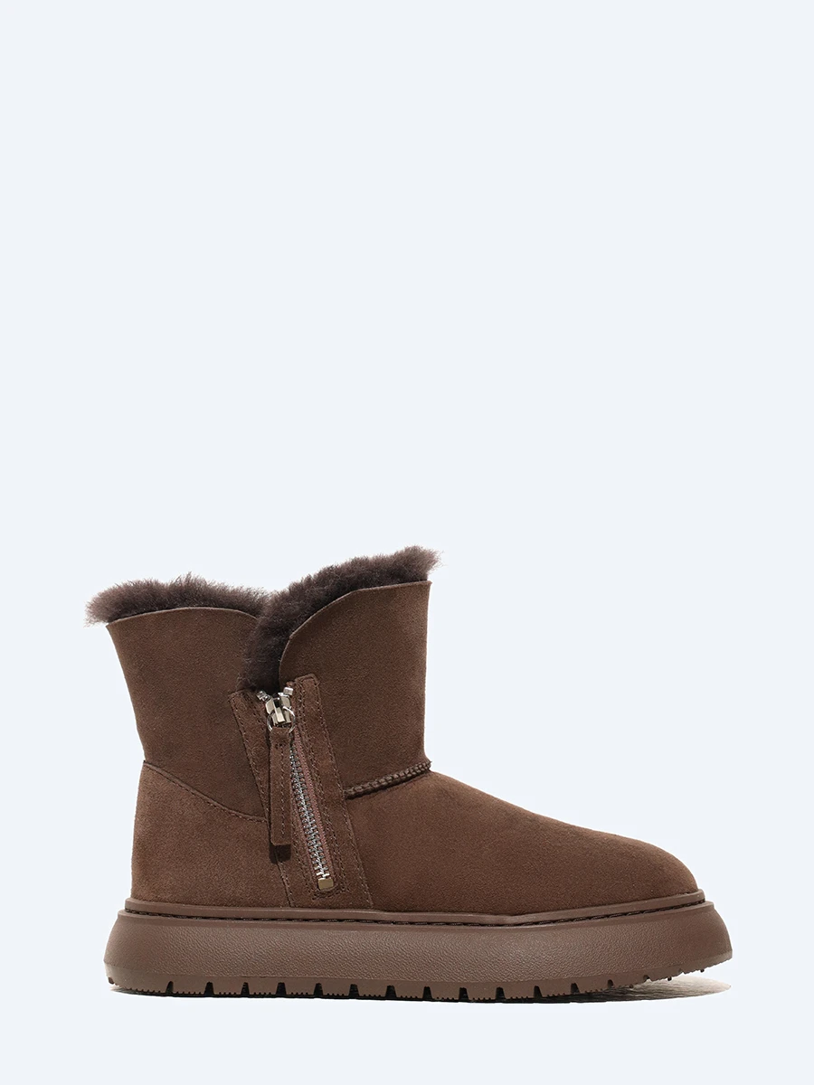 Полусапоги женские зимние, цвет коричневый, натуральный велюр