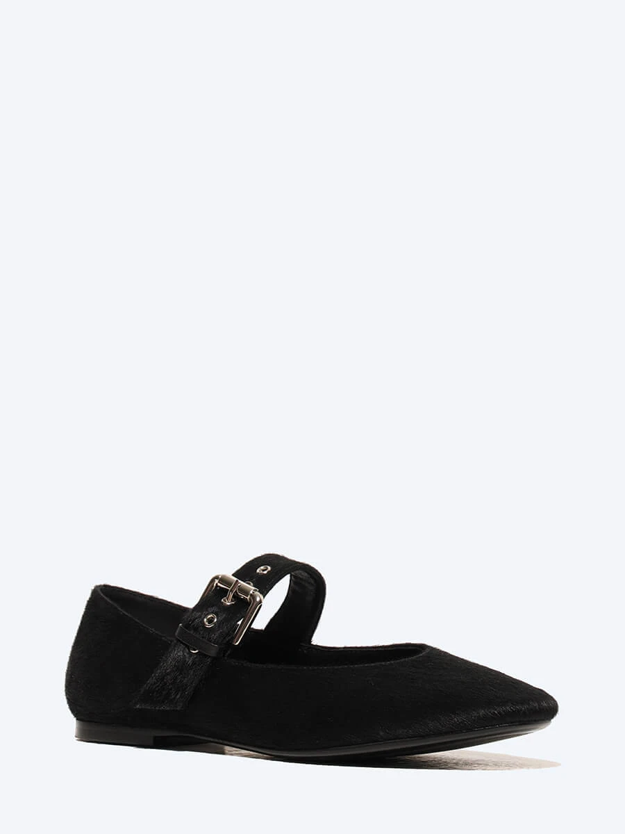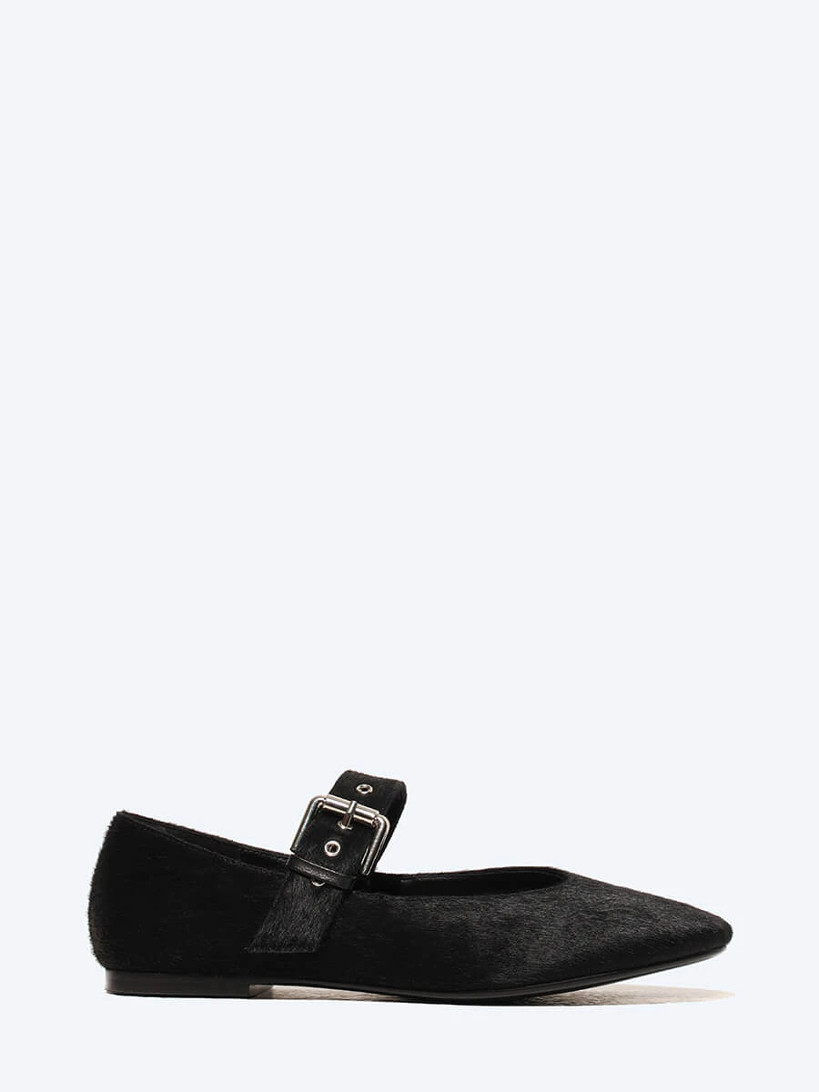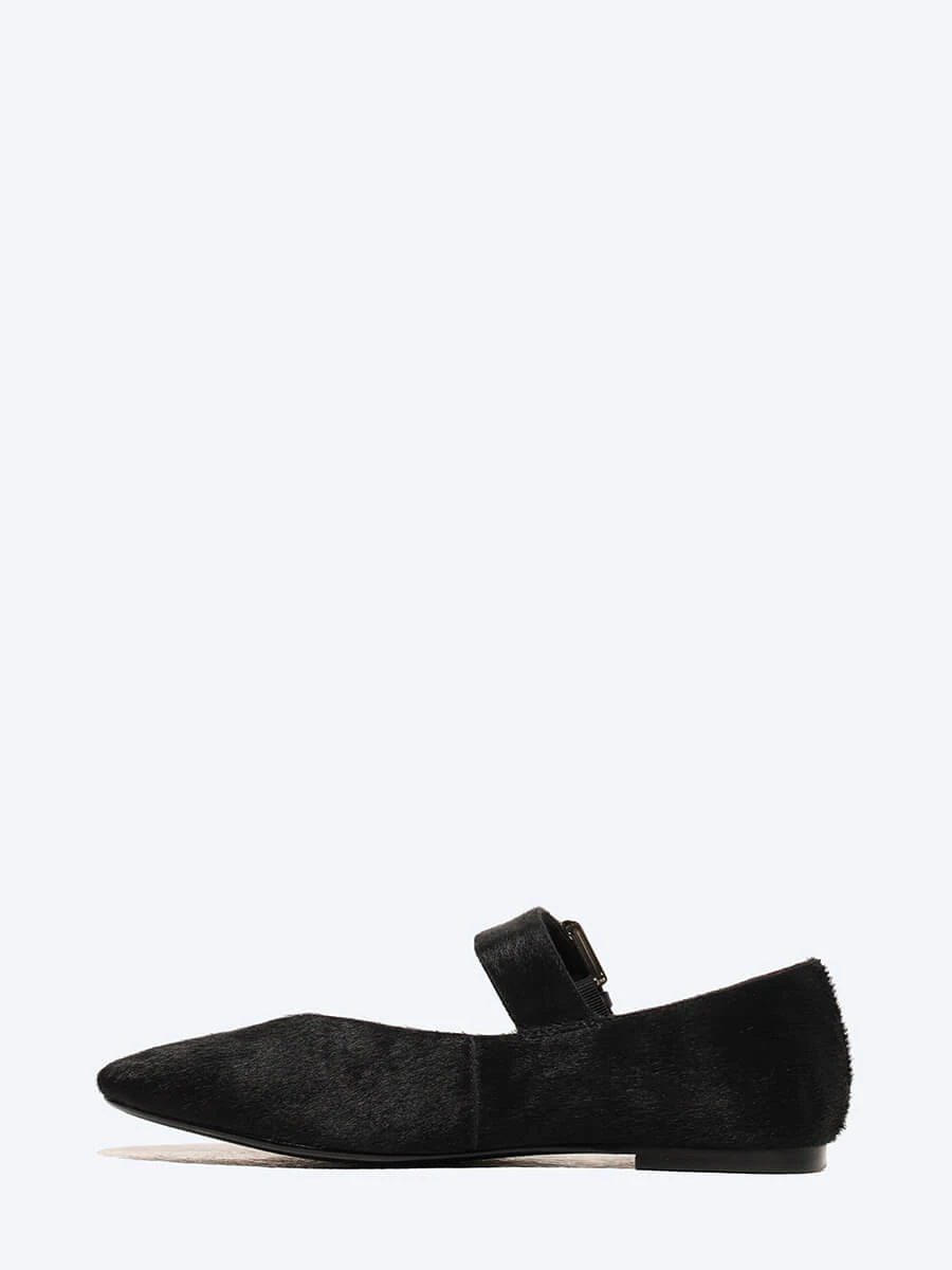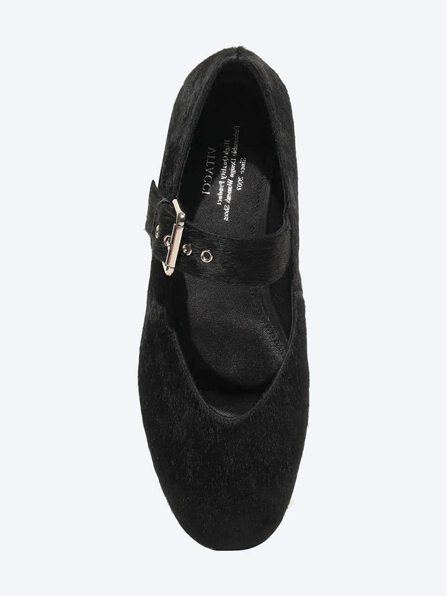 Балетки женские всесезонные, цвет черный, натуральный мех (пони)