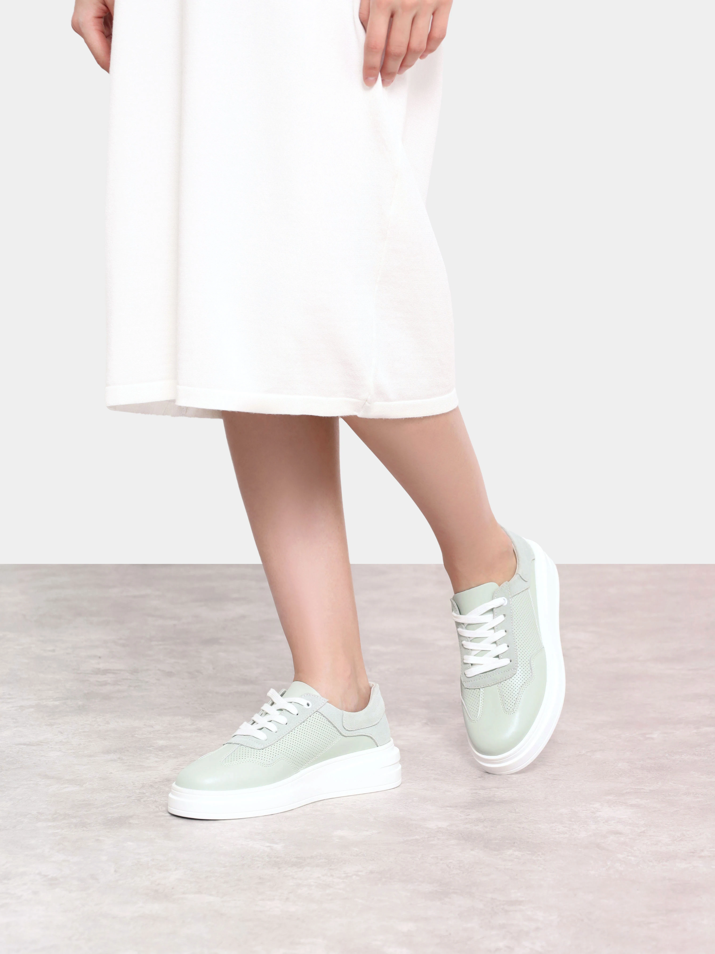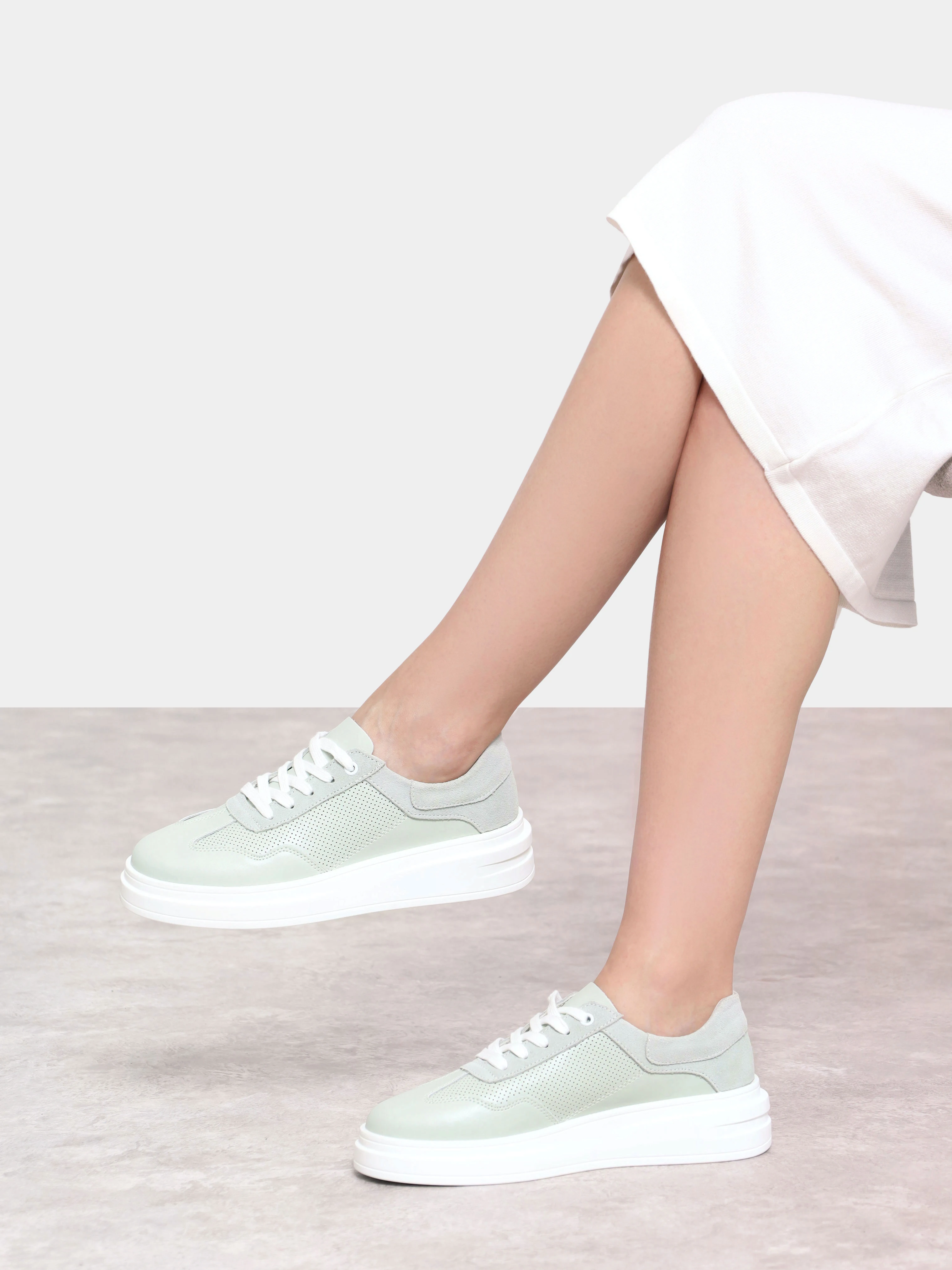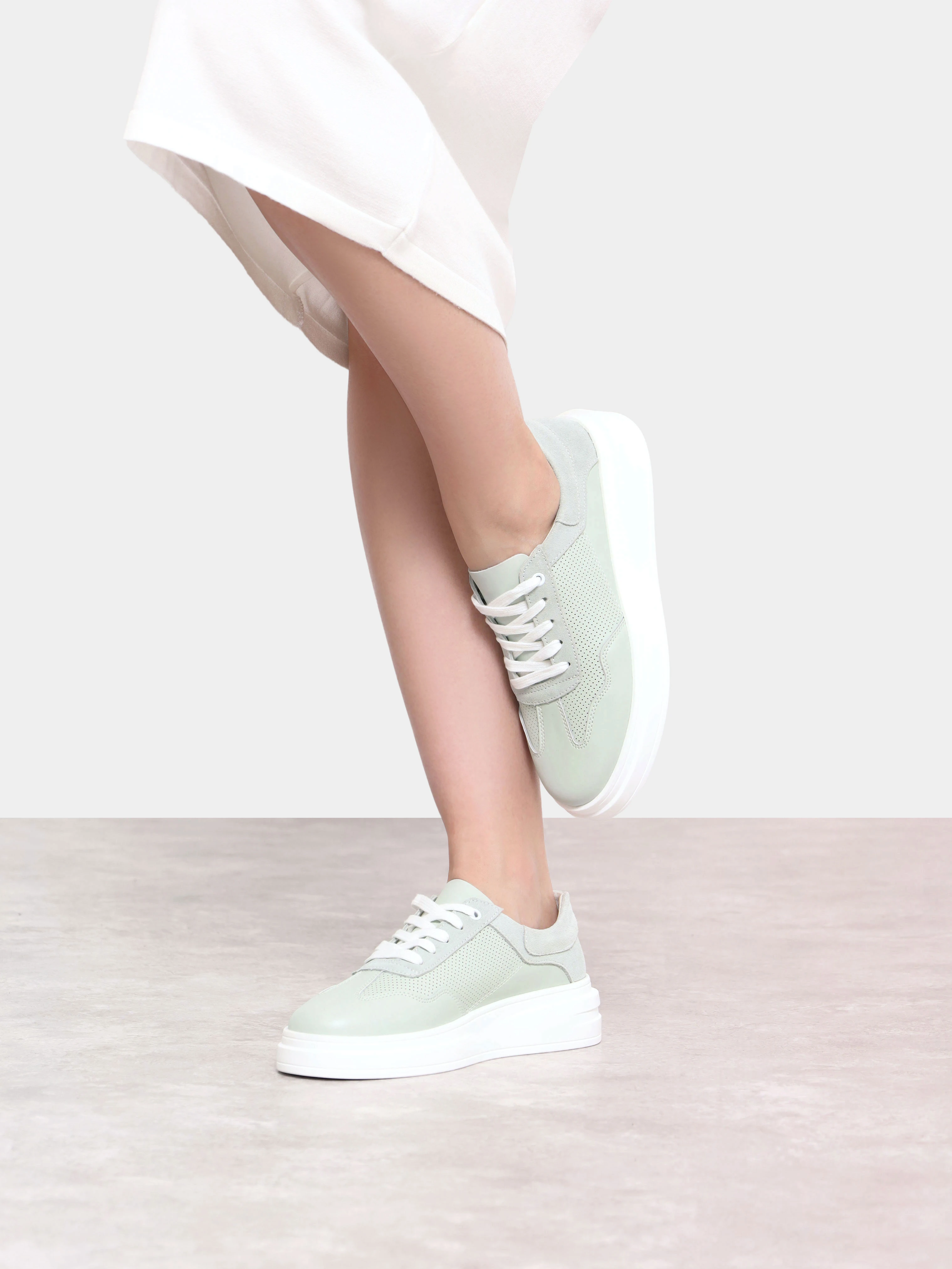 Кеды женские демисезонные, цвет мятный, натуральная кожа и полимерные материалы