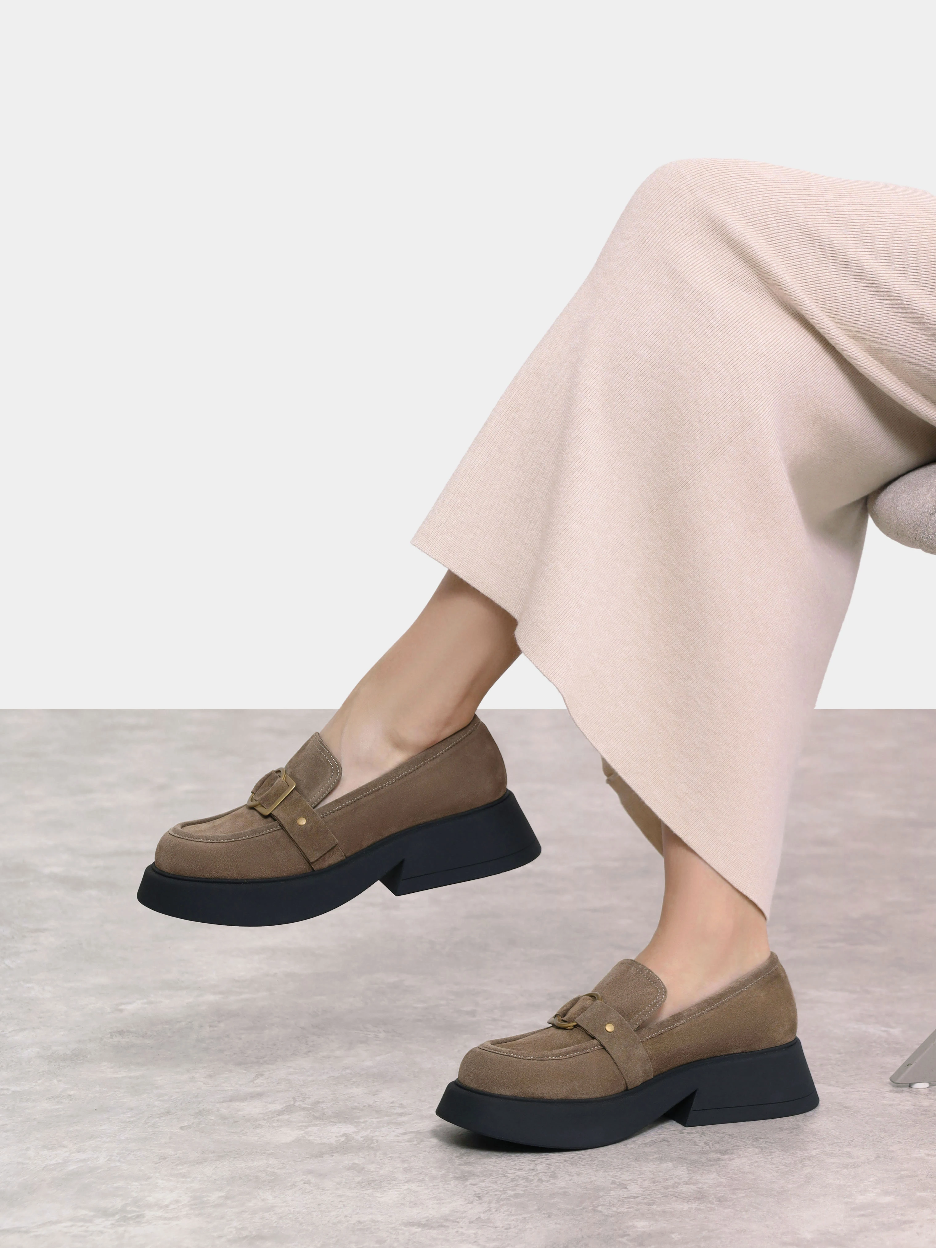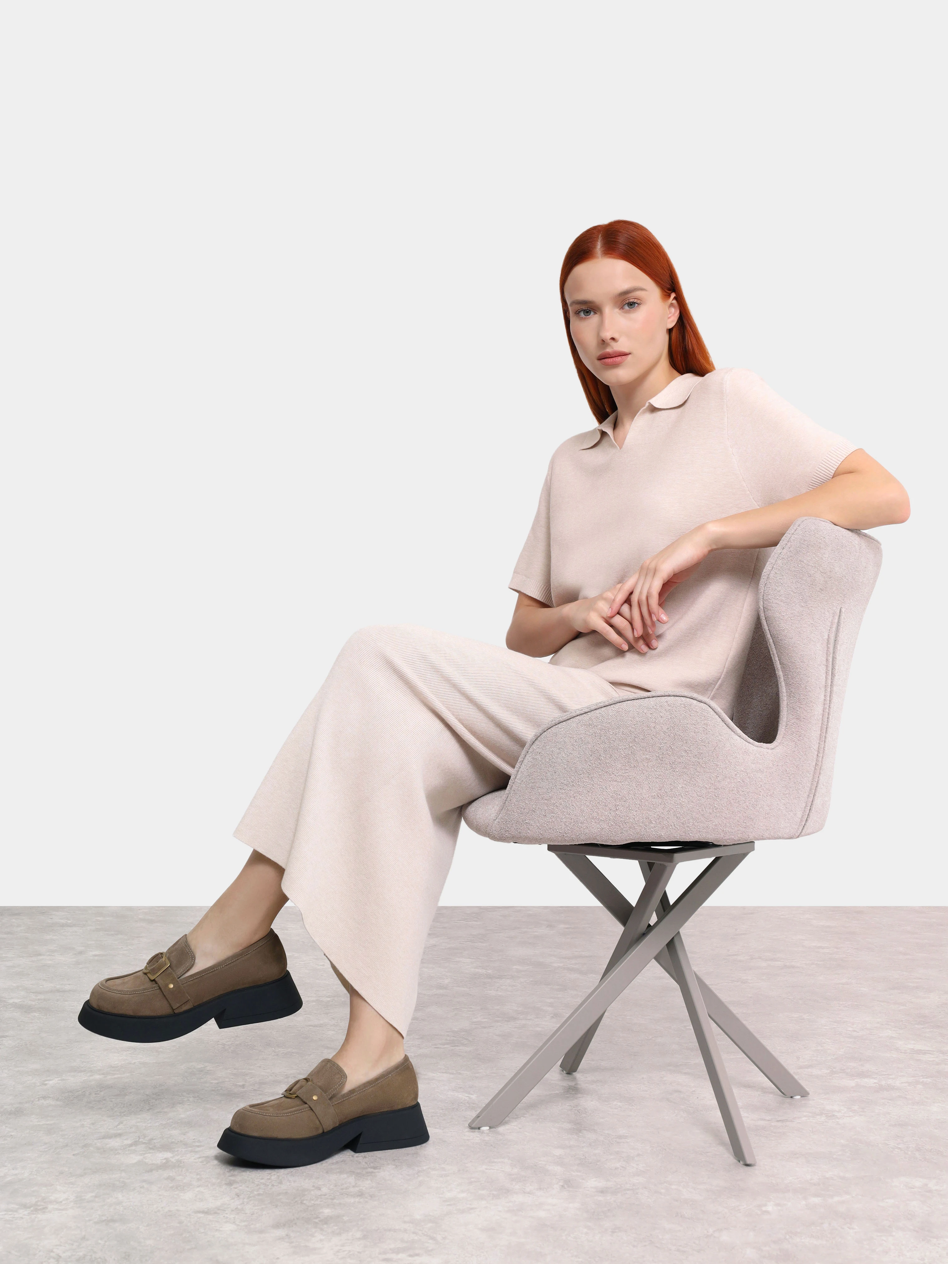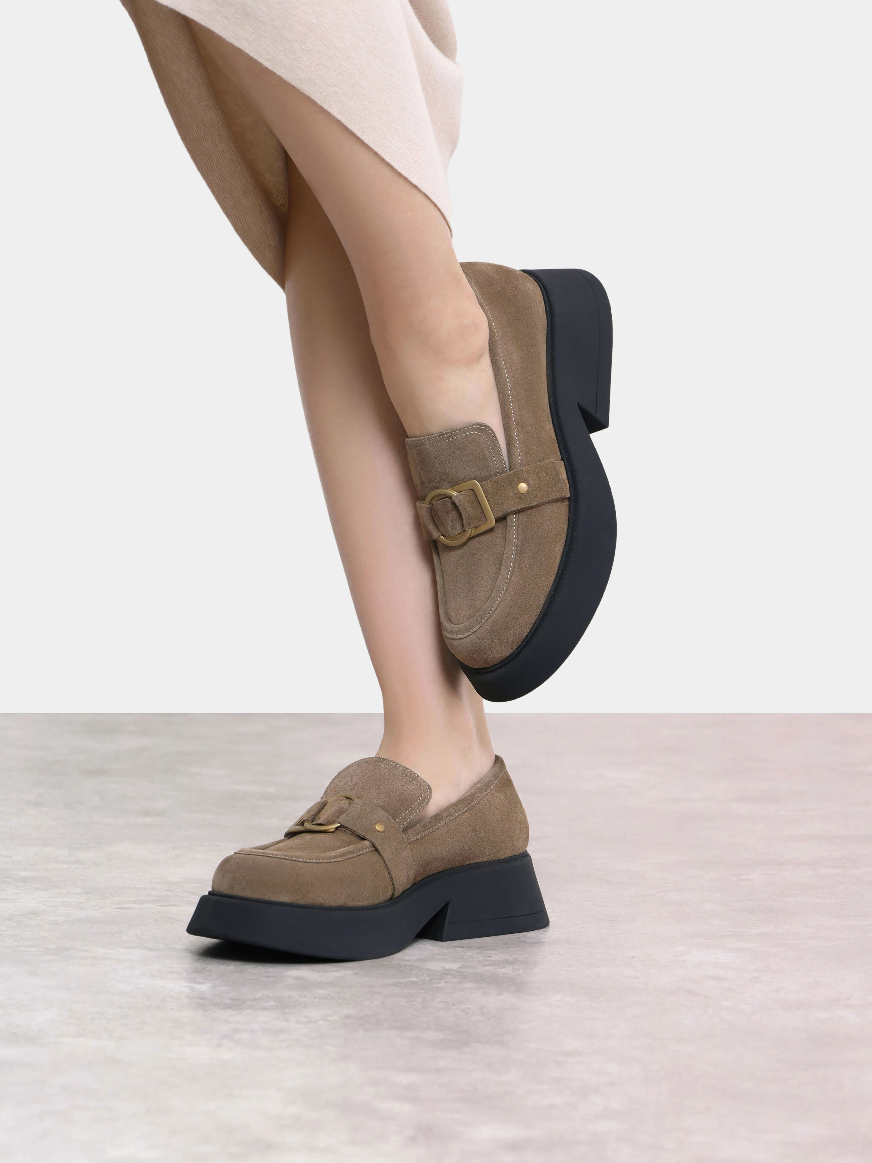 Лоферы женские всесезонные, цвет мокко, натуральный велюр