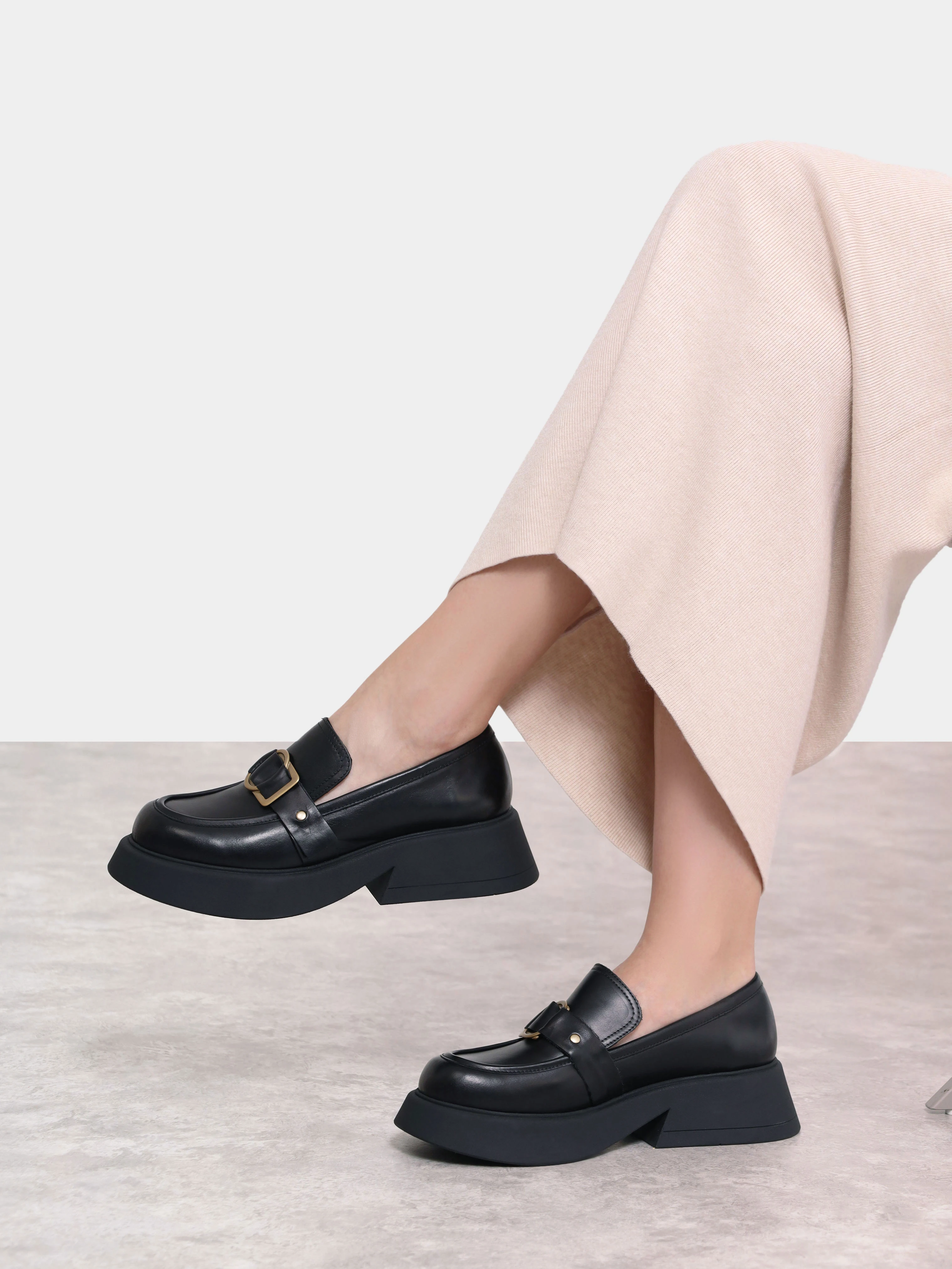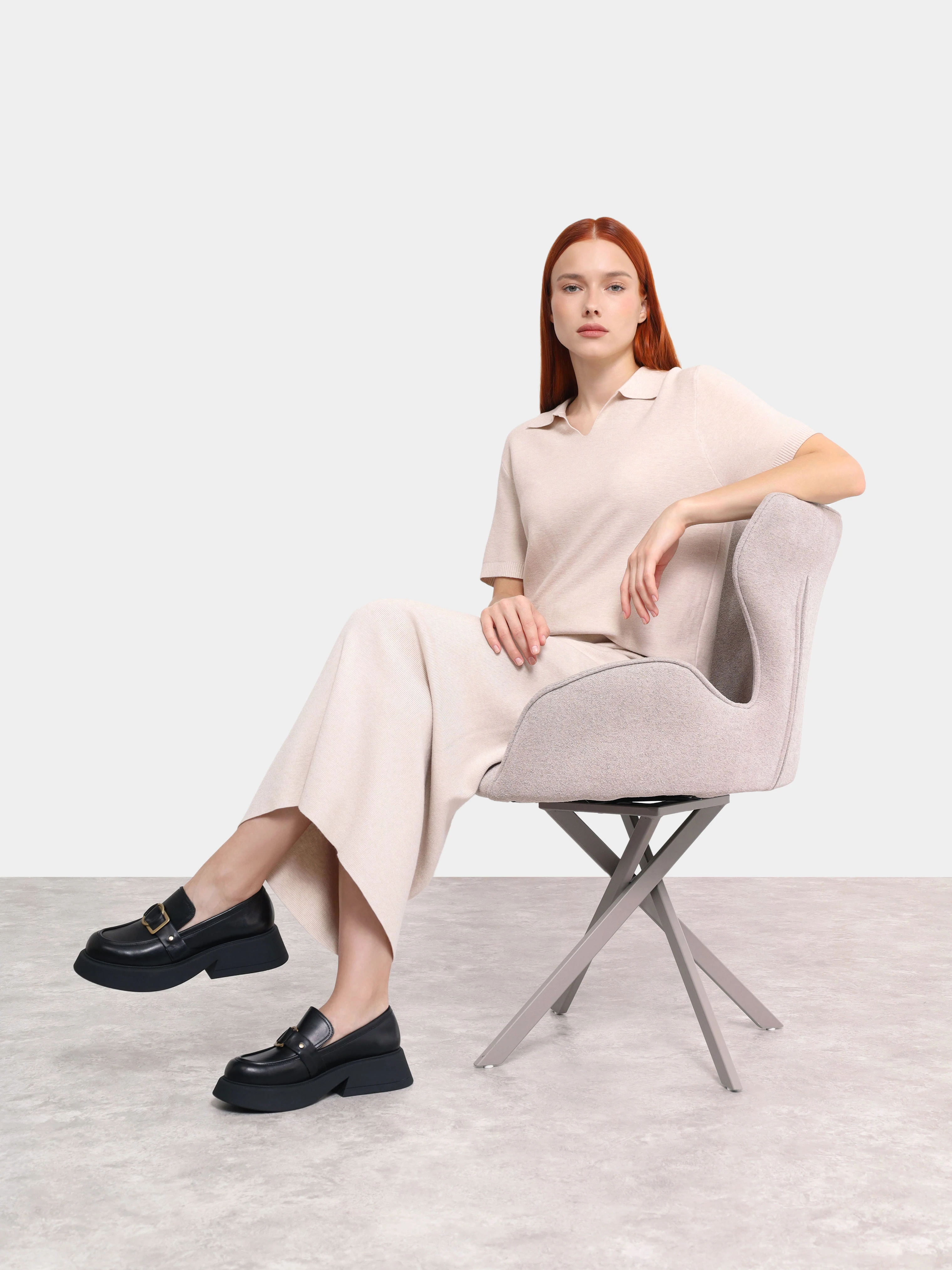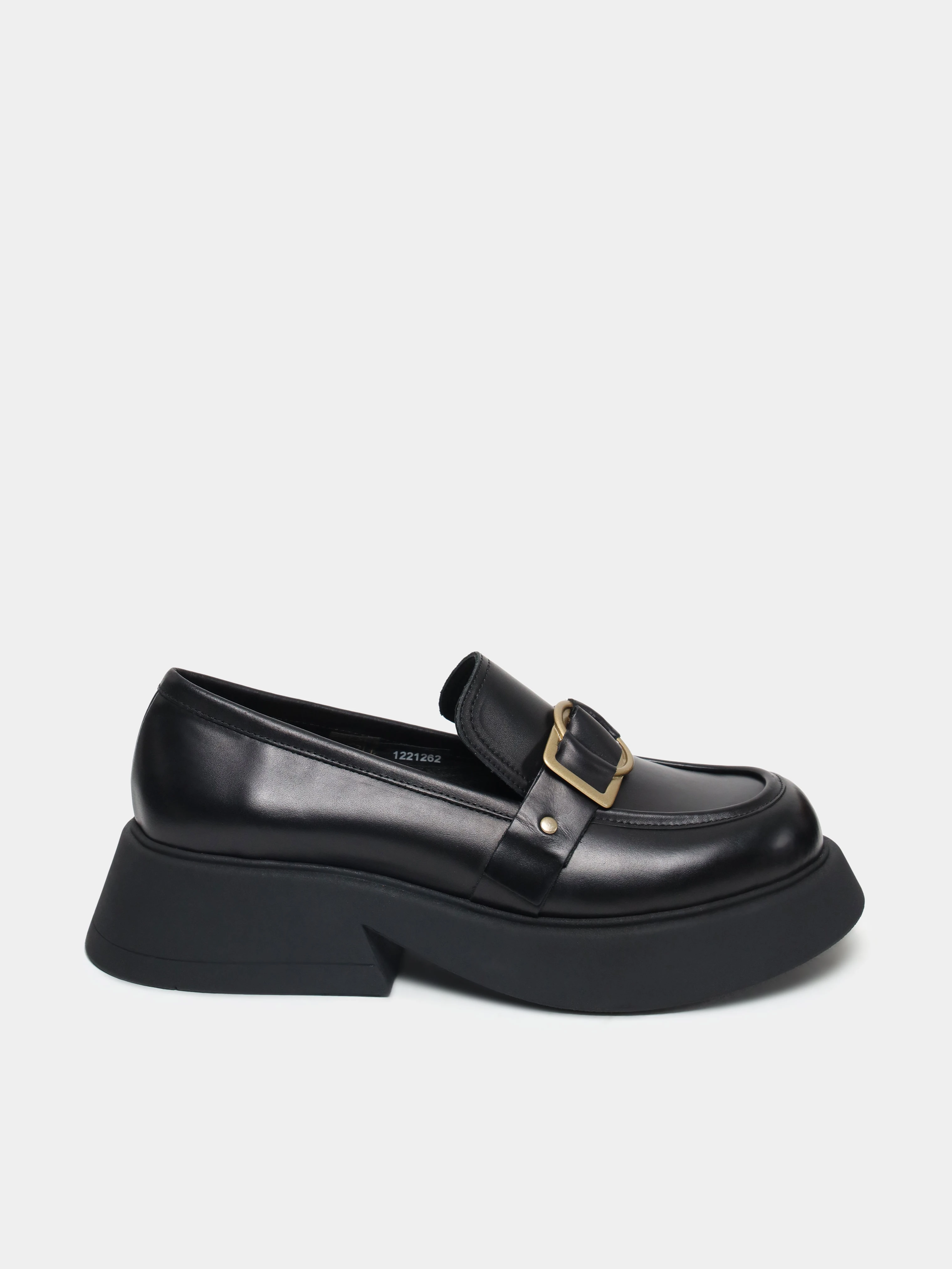 Лоферы женские всесезонные, цвет черный, натуральная кожа