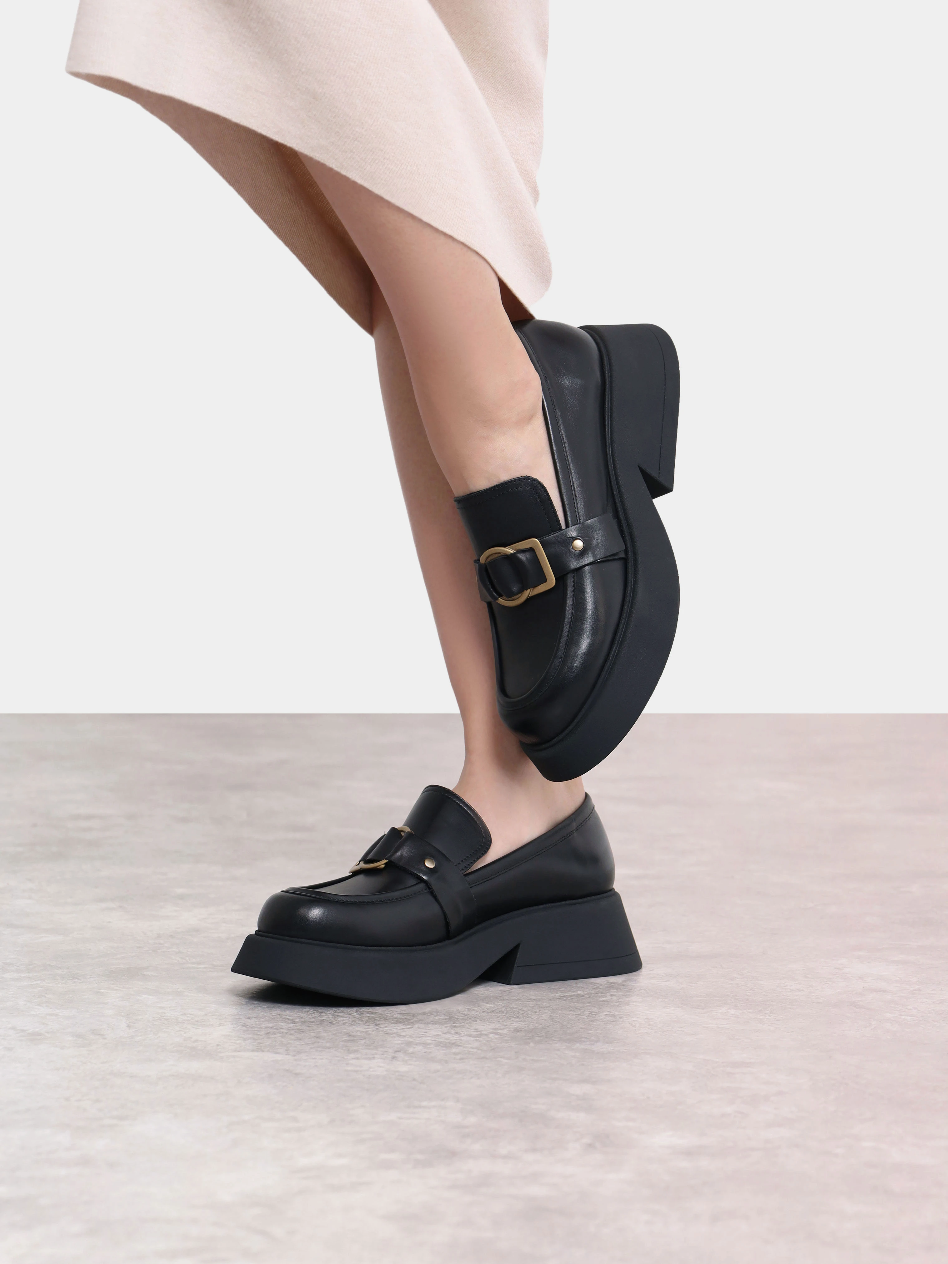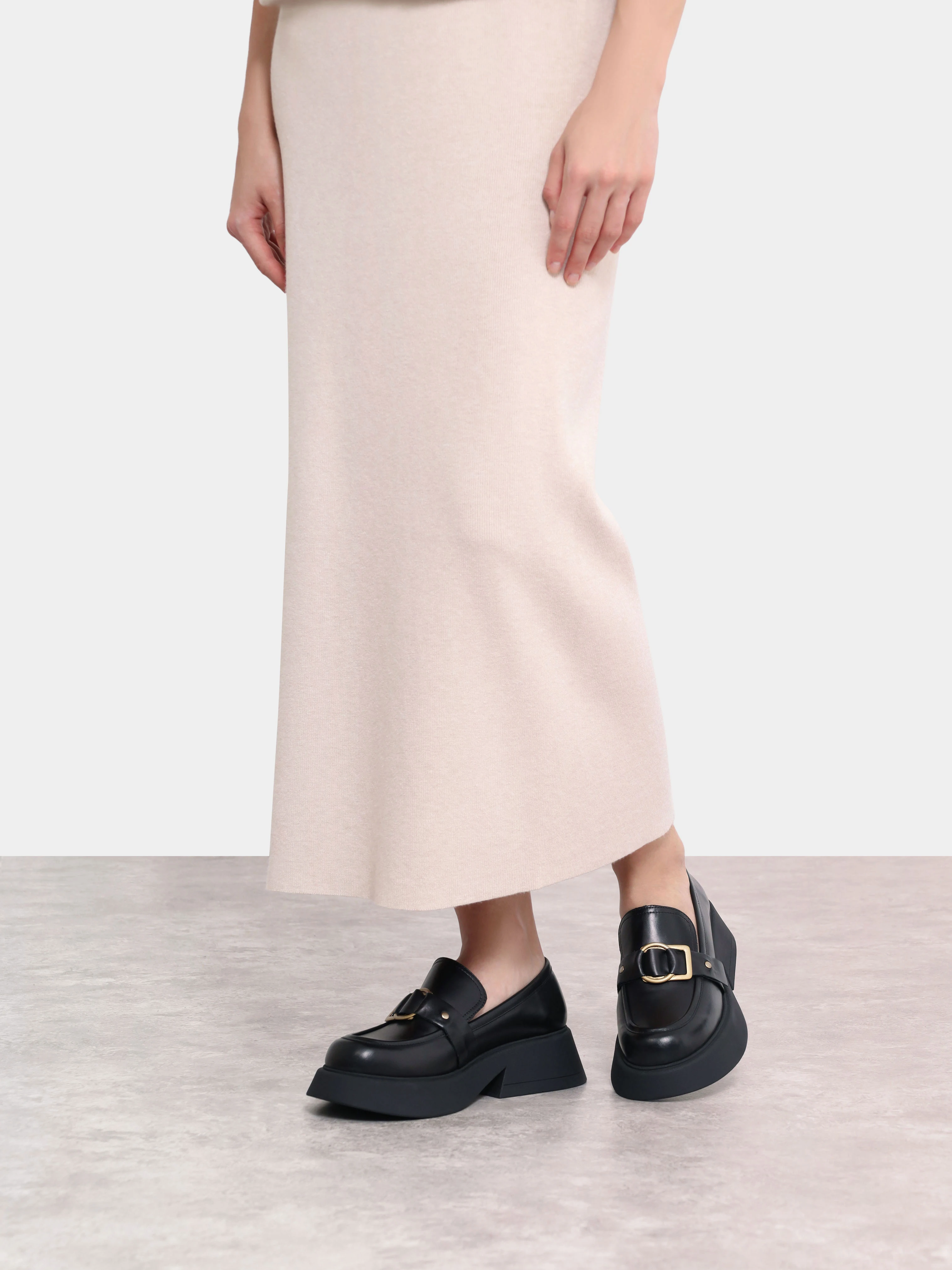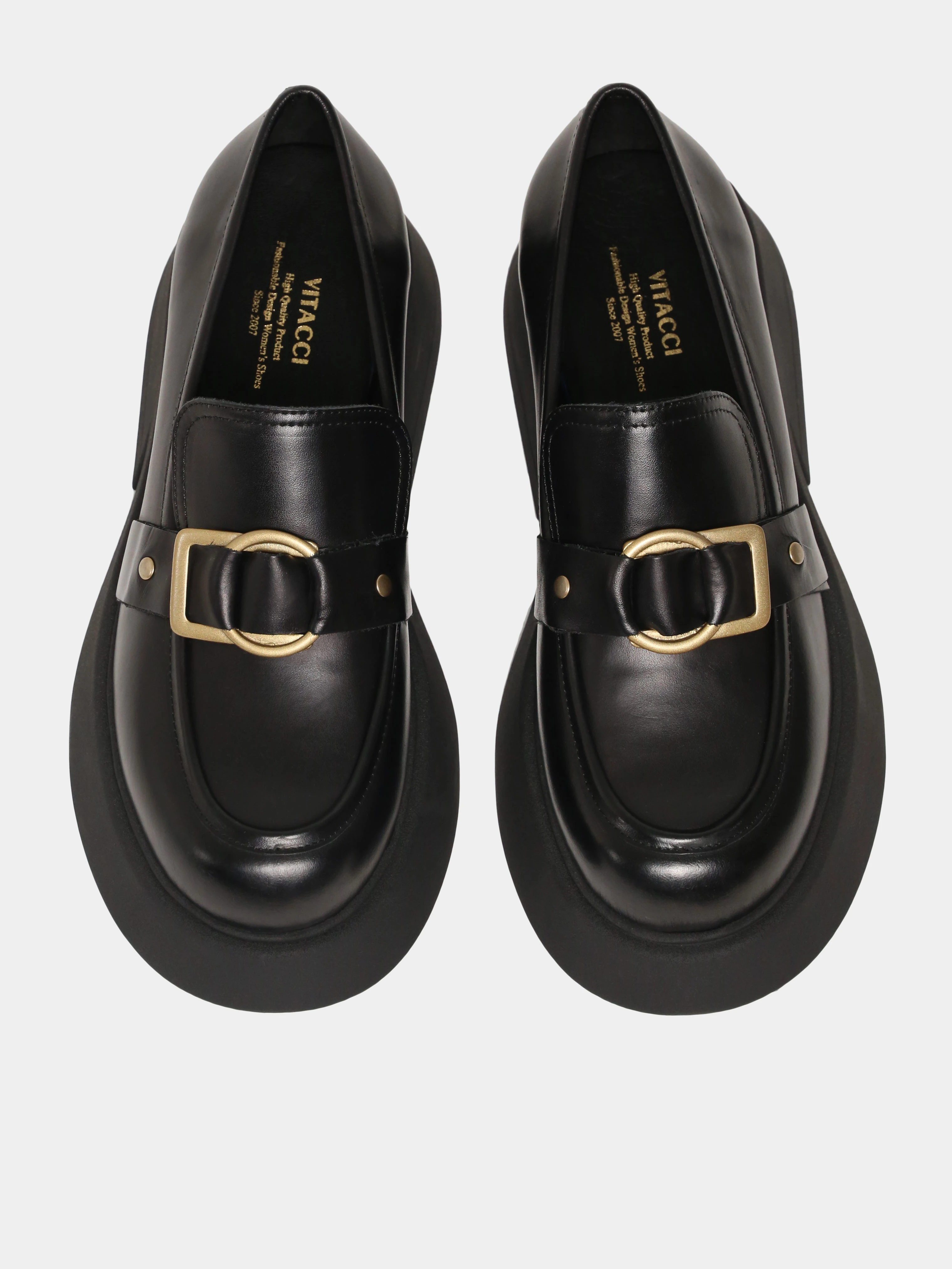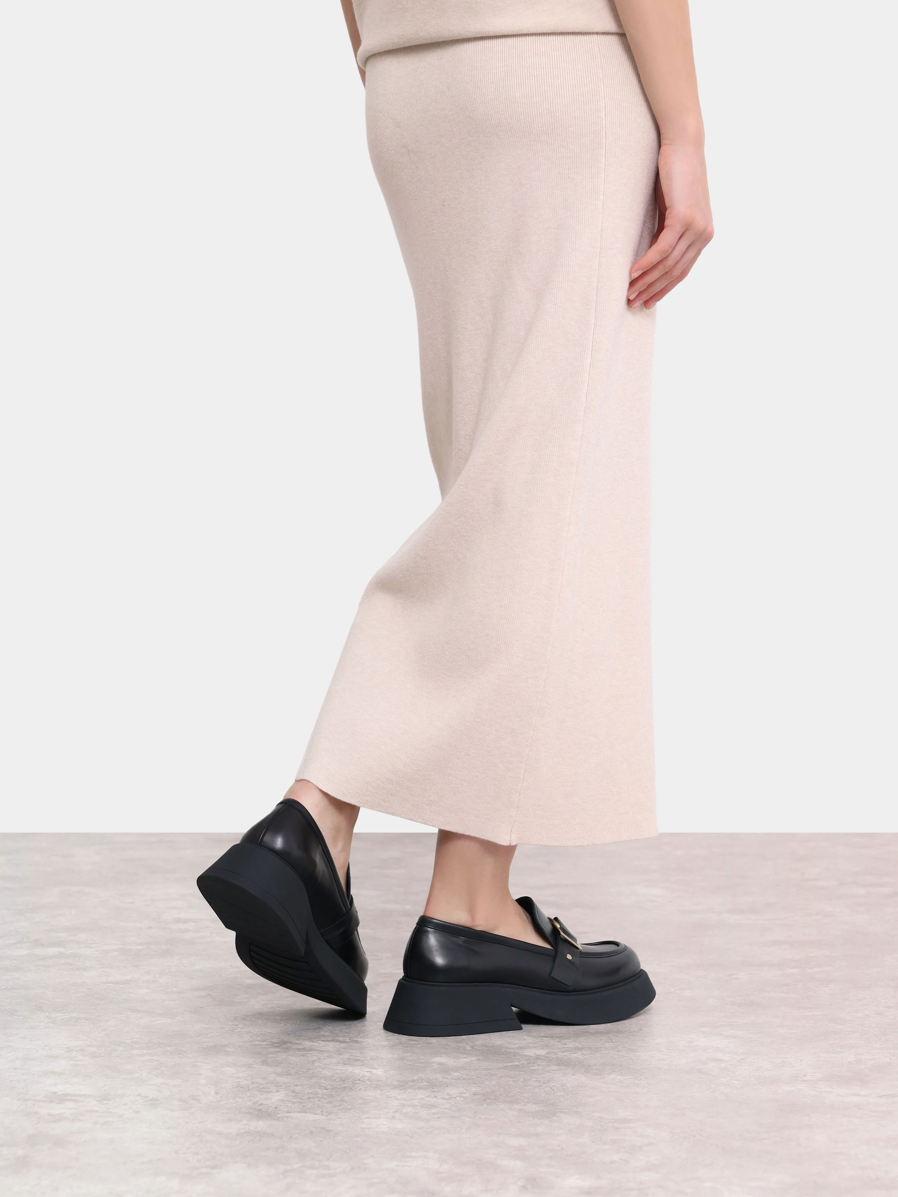 Лоферы женские всесезонные, цвет черный, натуральная кожа
