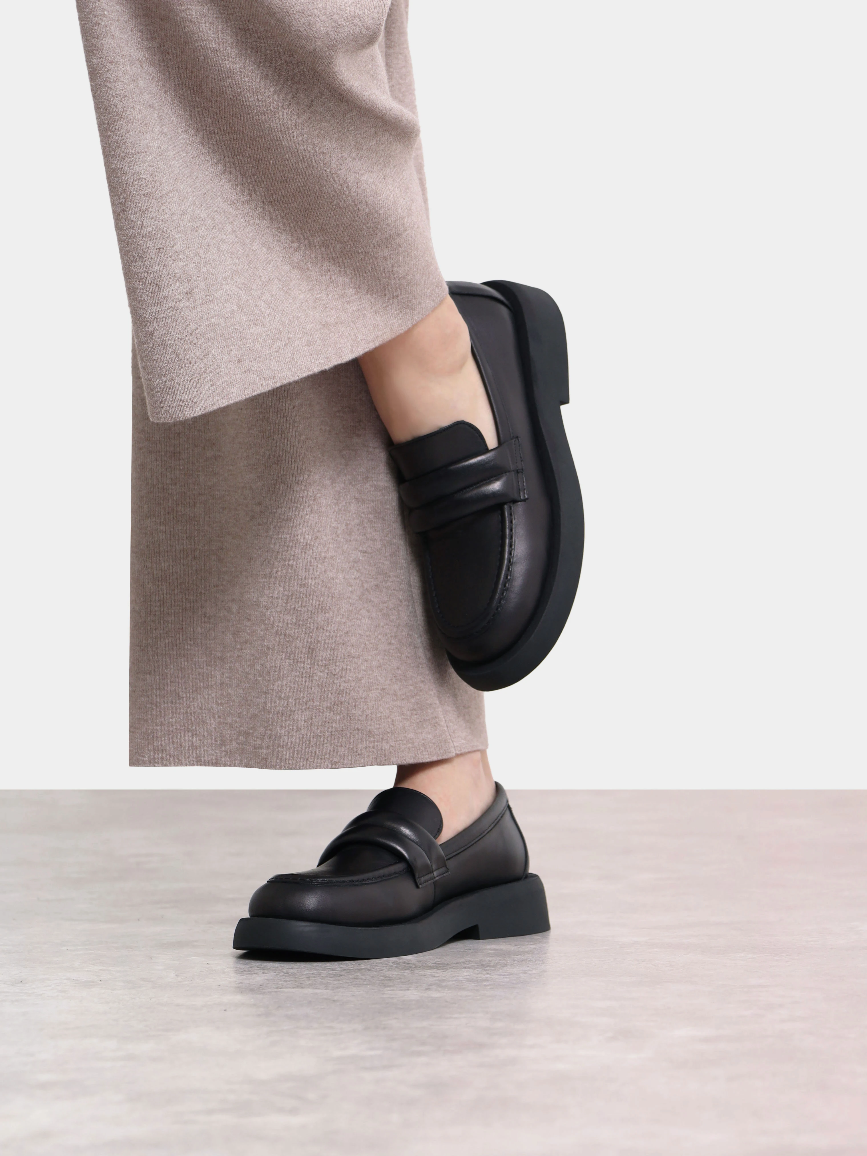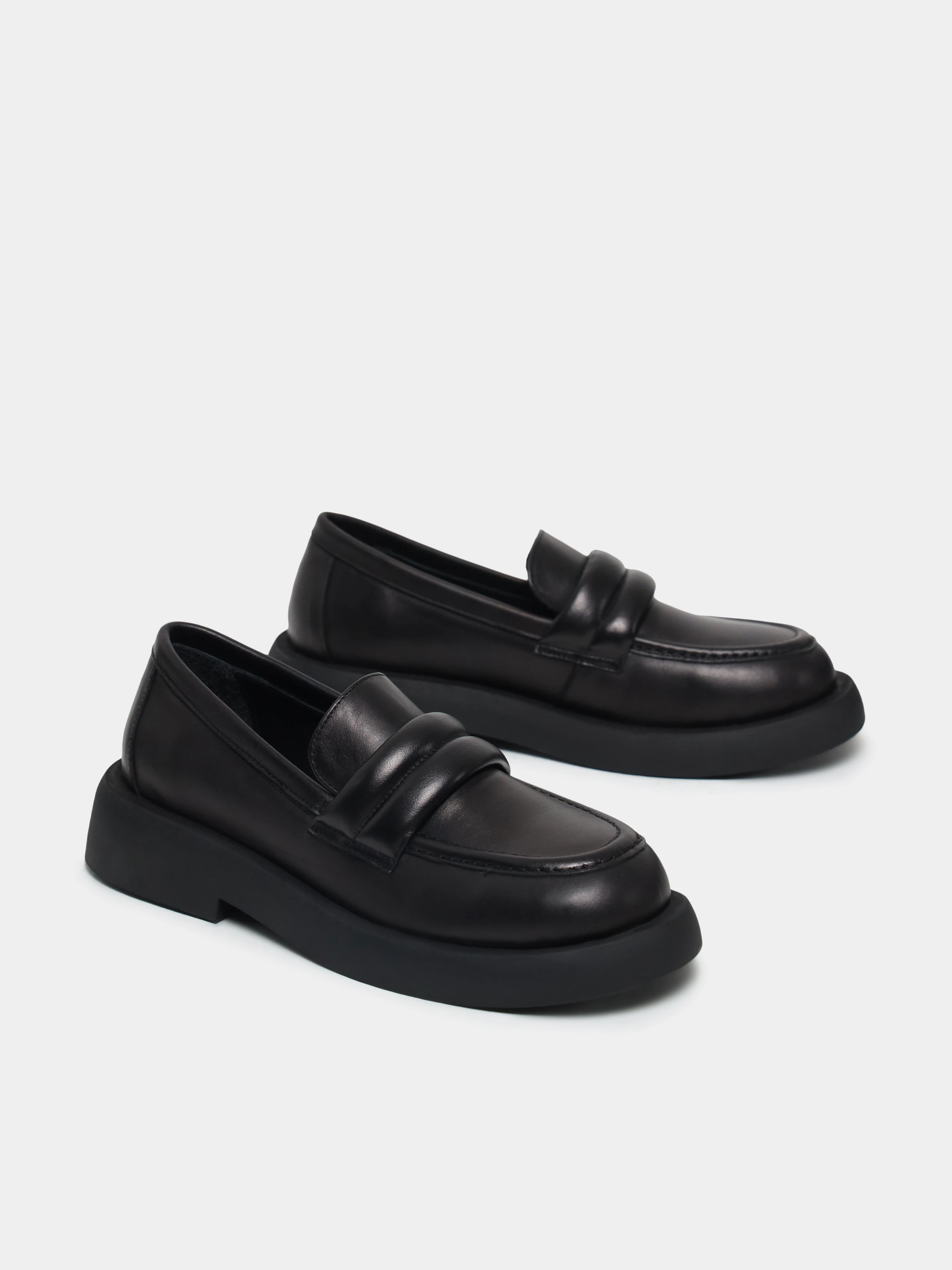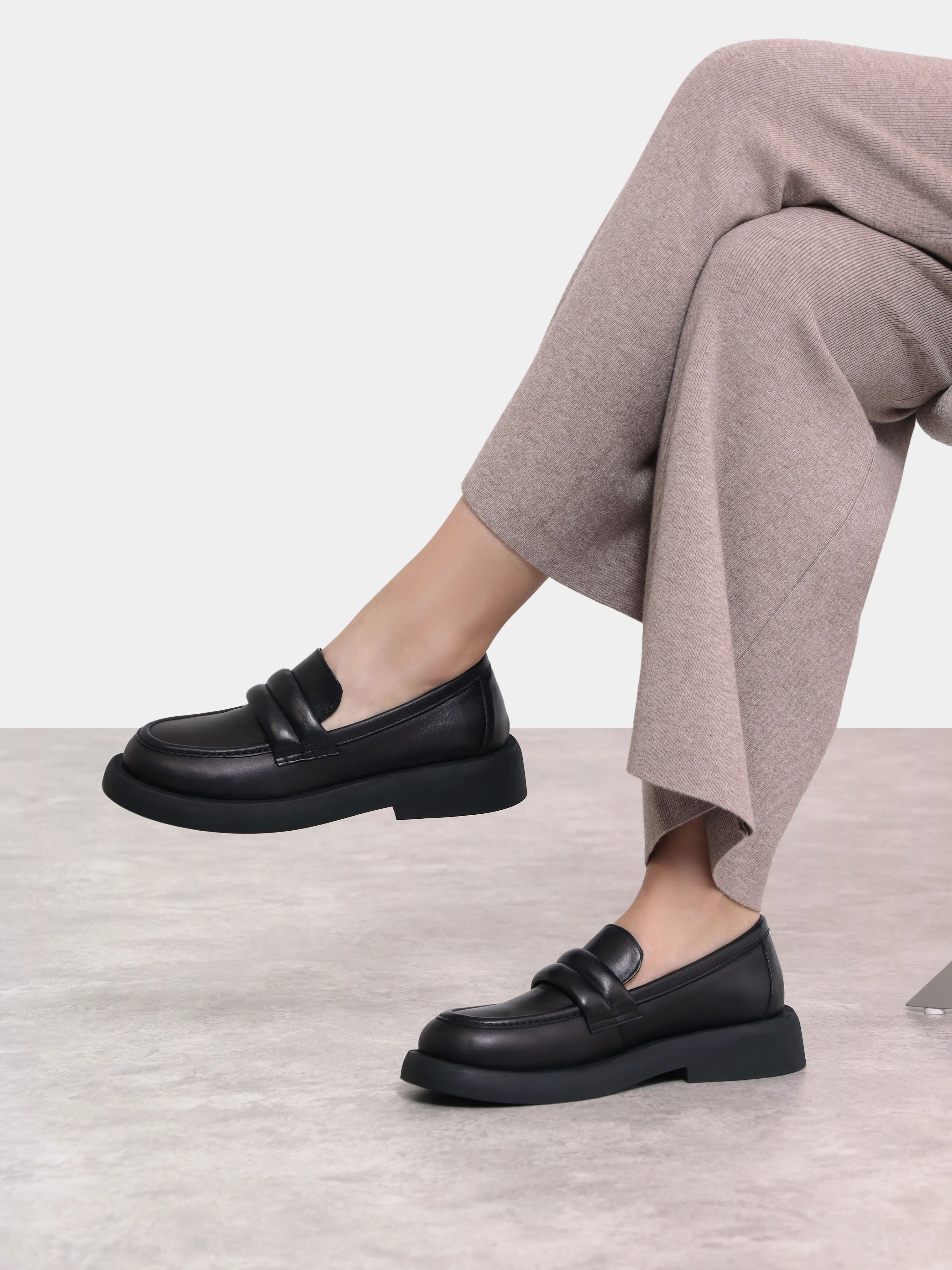 Лоферы женские всесезонные, цвет черный, натуральная кожа