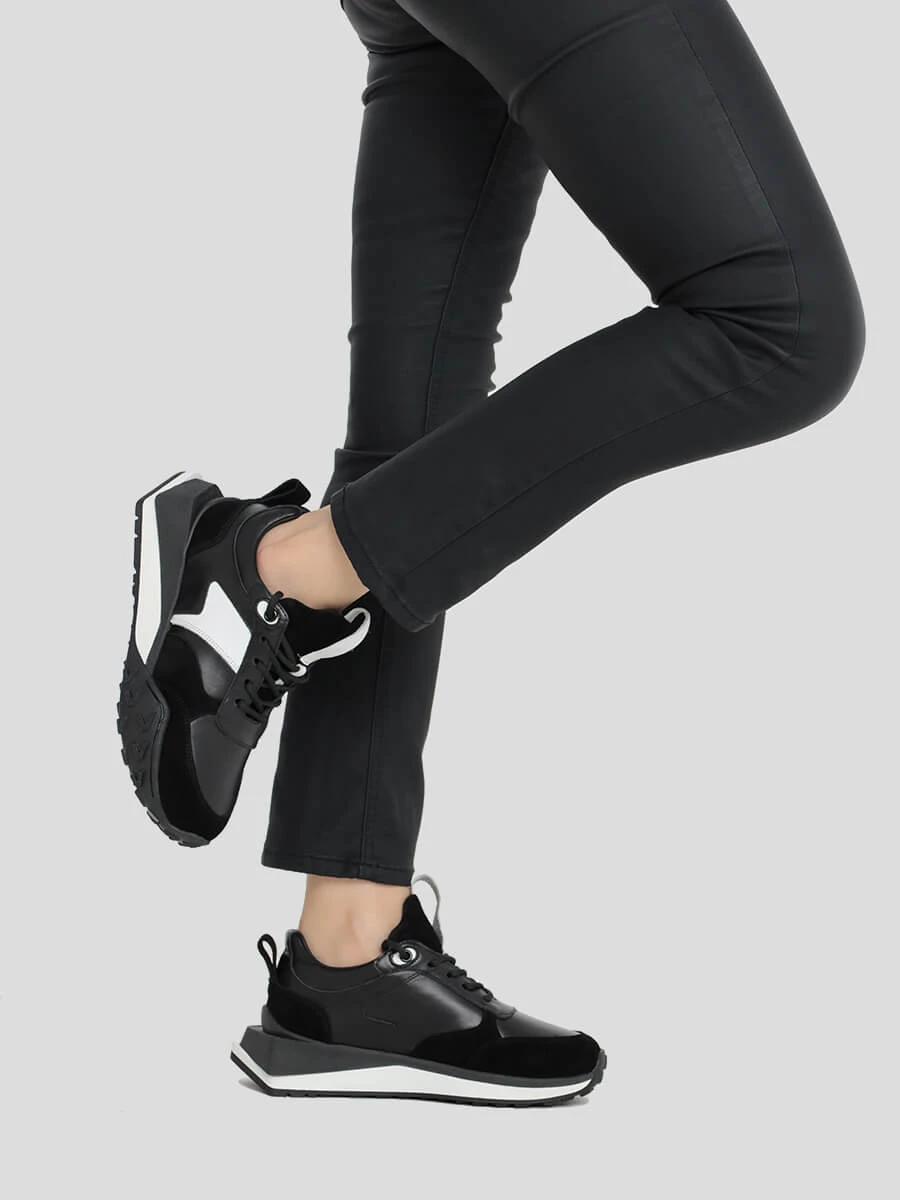 Кроссовки женские демисезонные, цвет черный, натуральная кожа