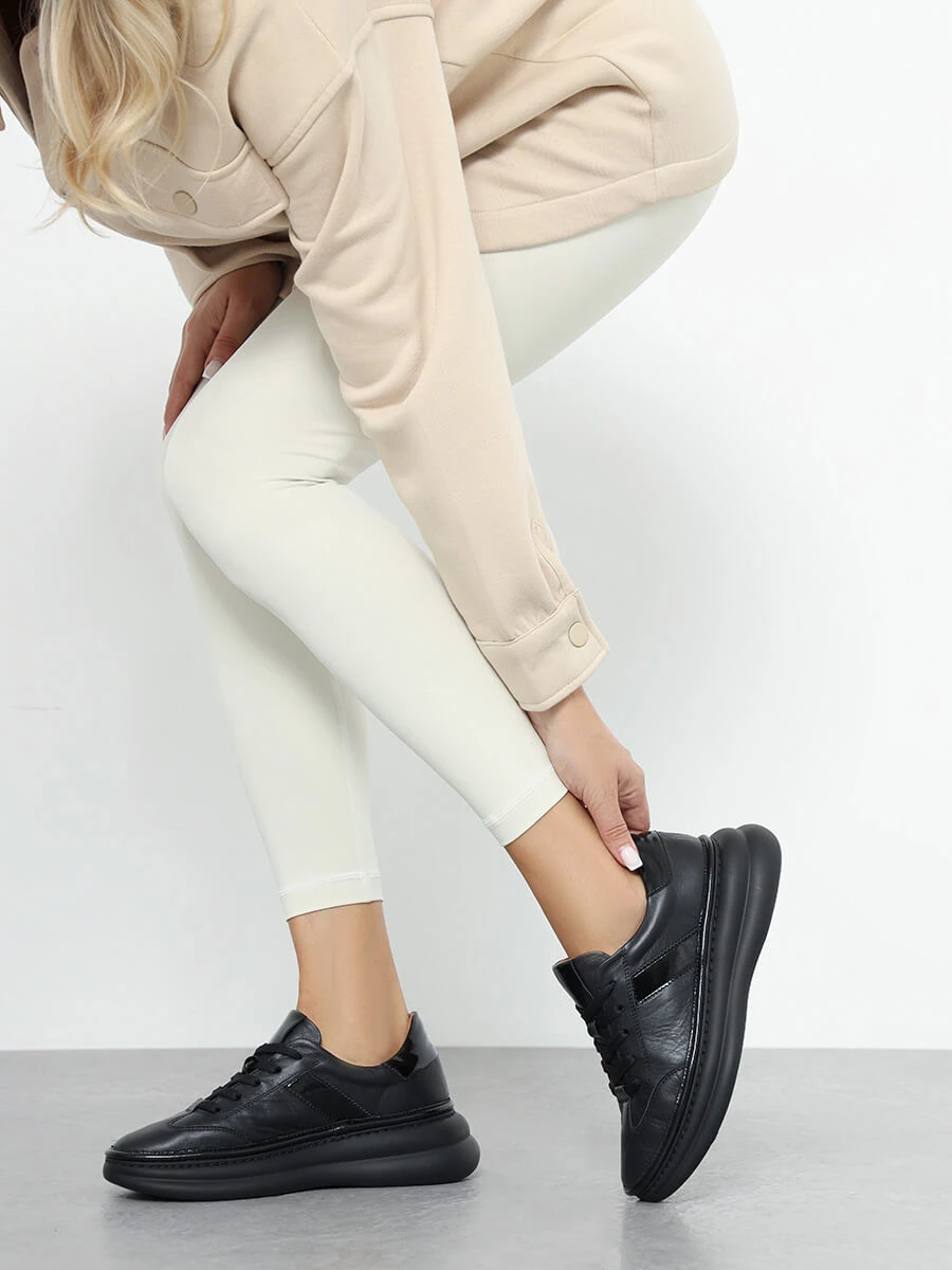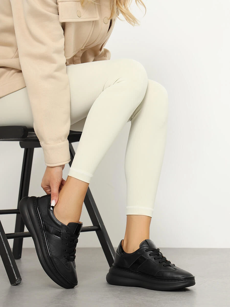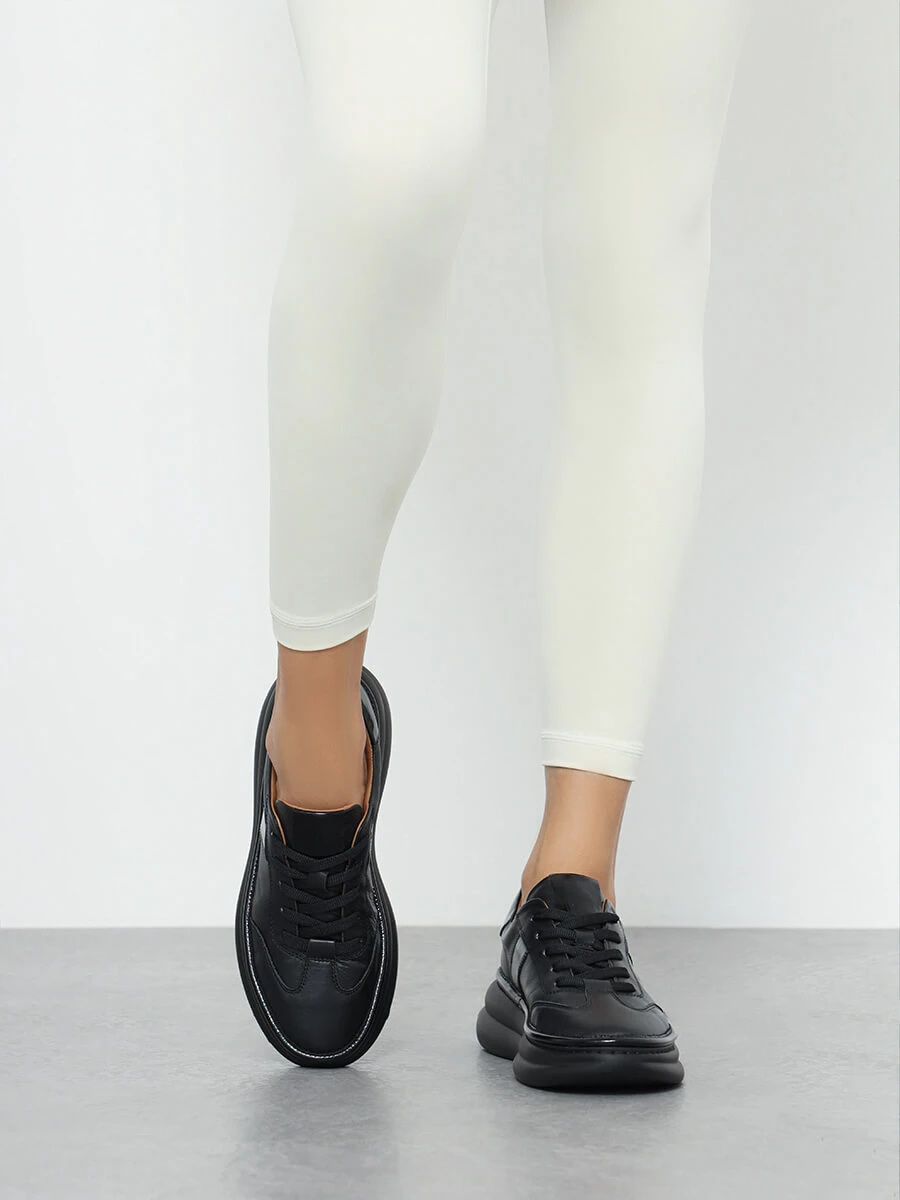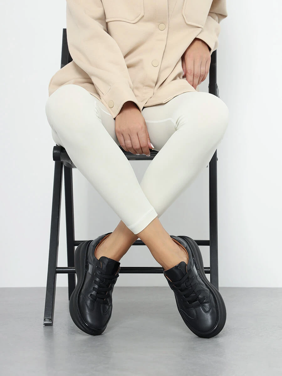 Кроссовки женские демисезонные, цвет черный, натуральная кожа