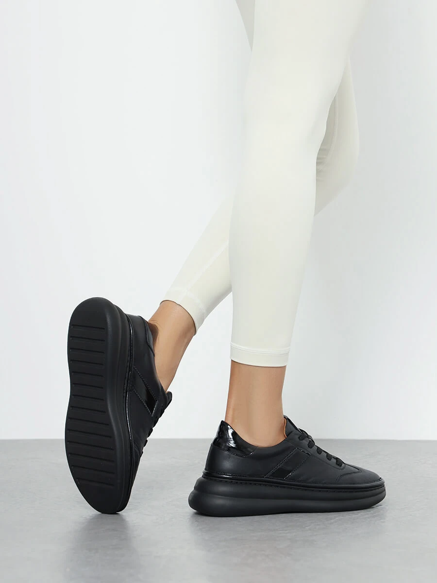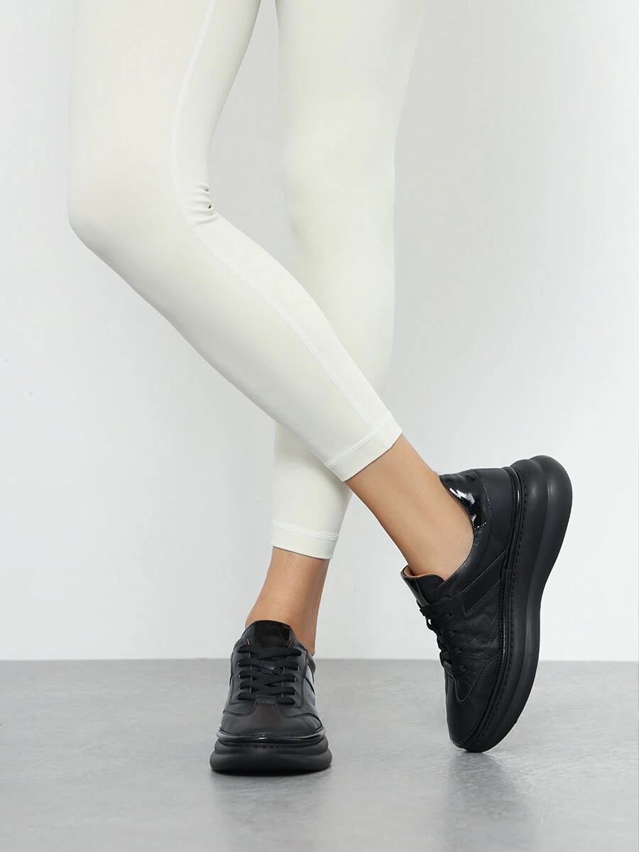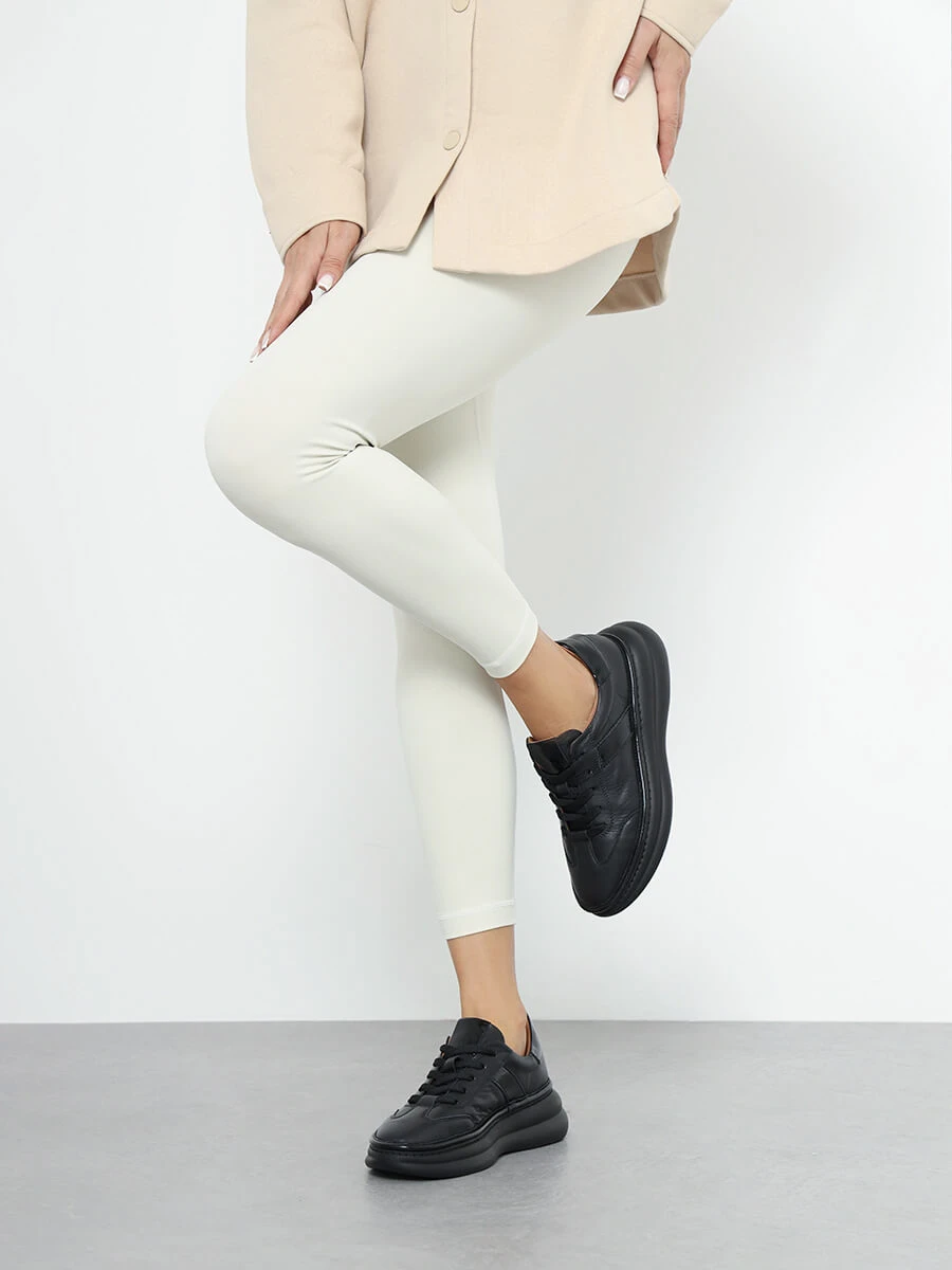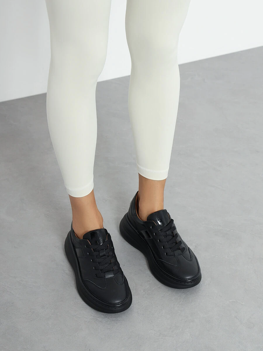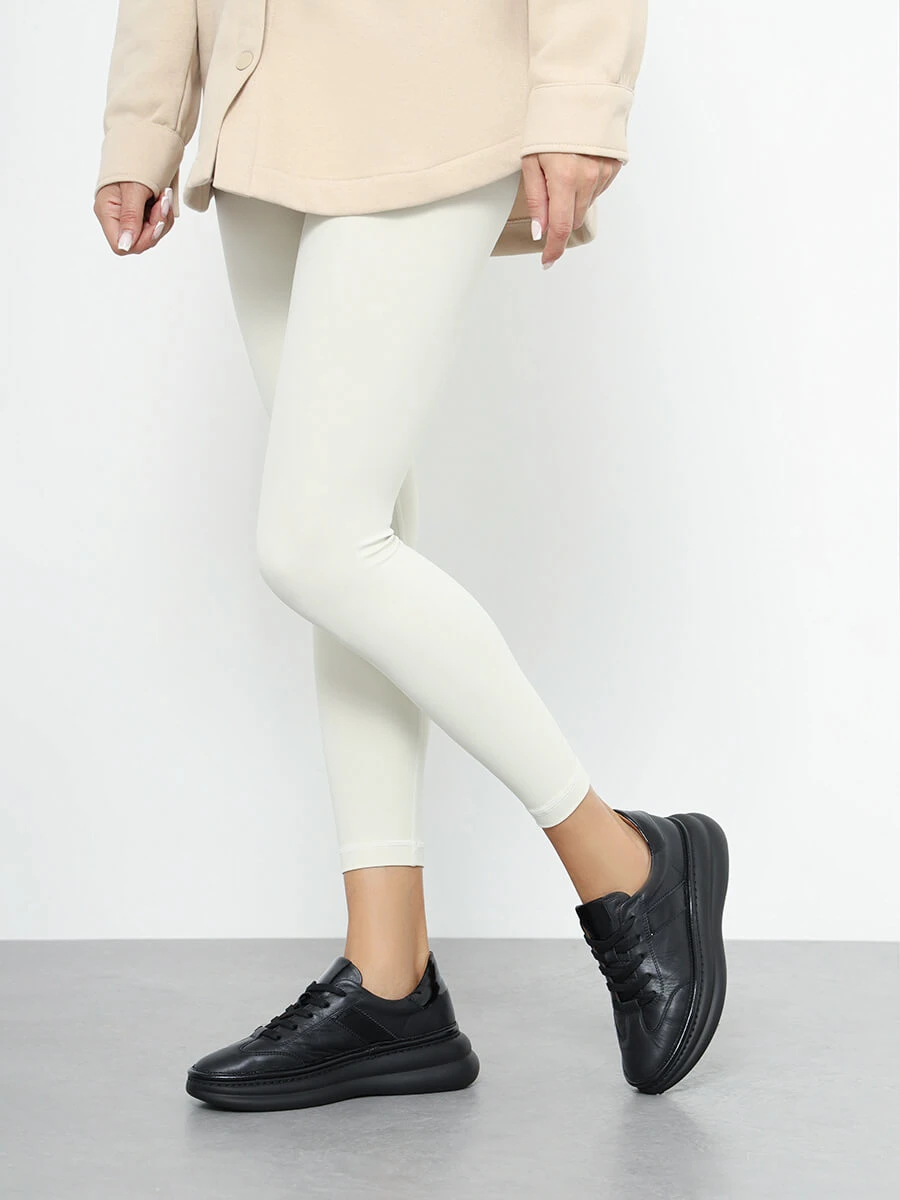 Кроссовки женские демисезонные, цвет черный, натуральная кожа