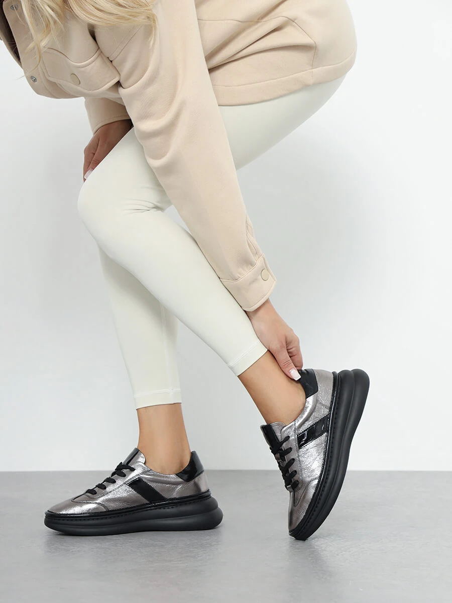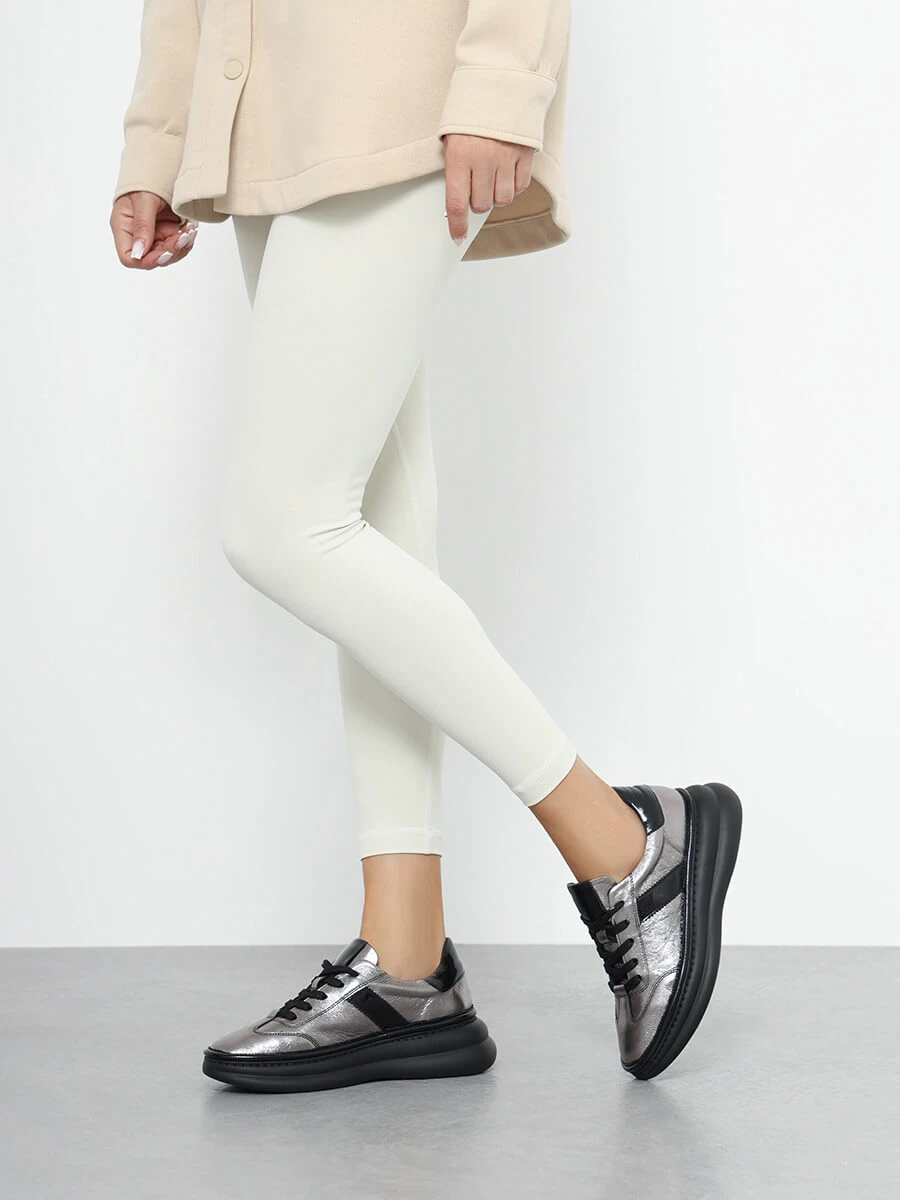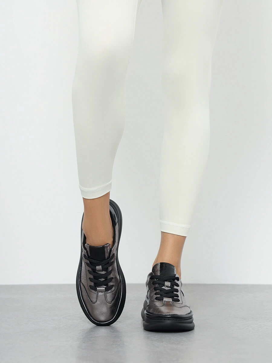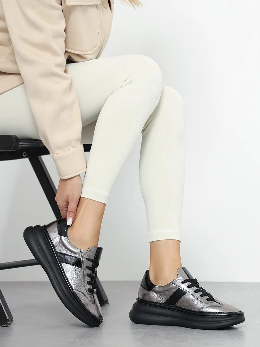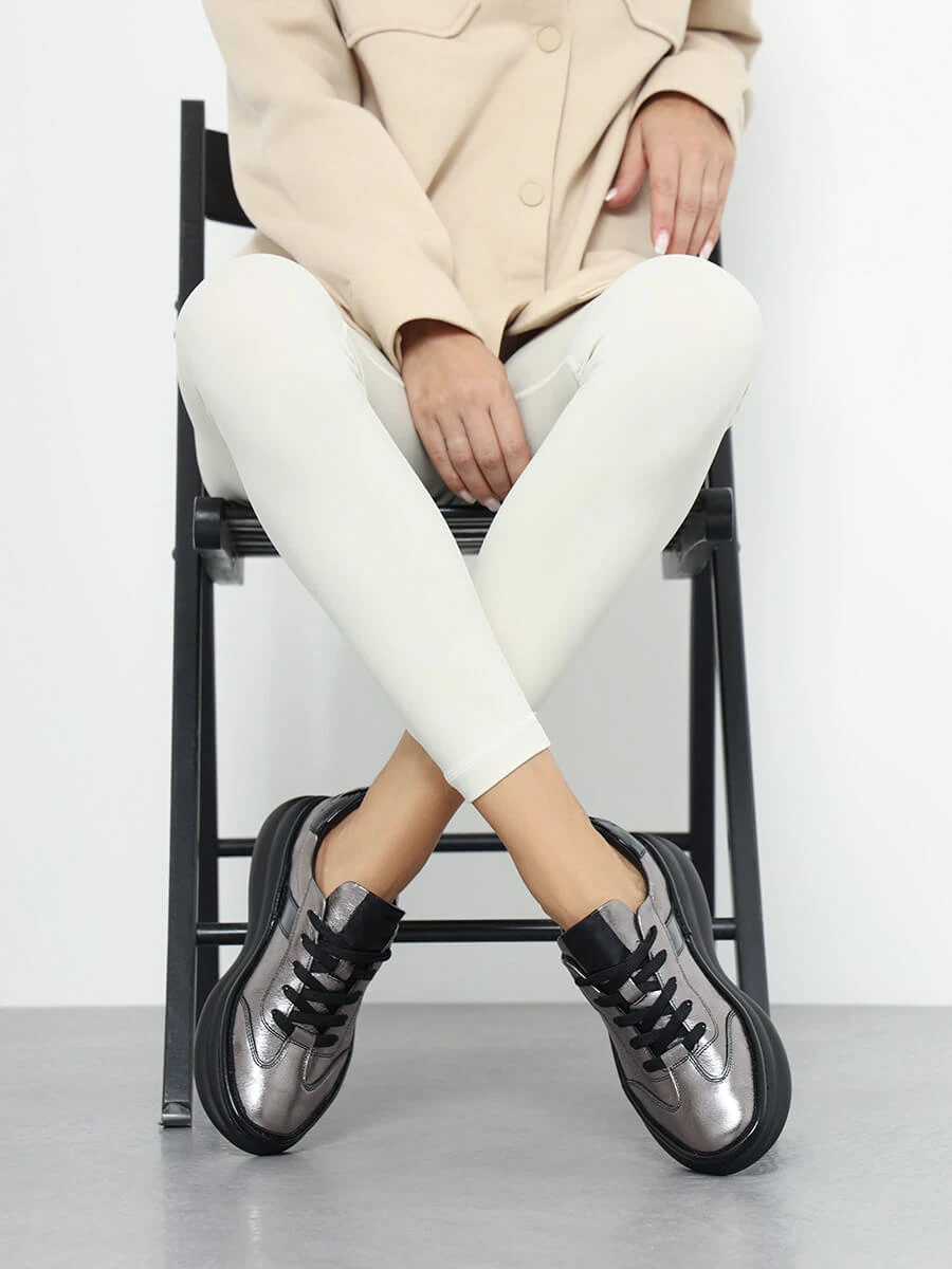 Кроссовки женские демисезонные, цвет графитовый, натуральная кожа