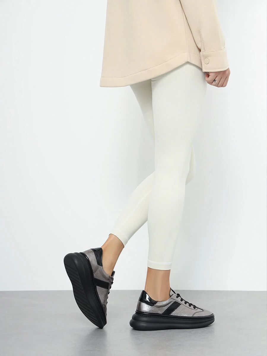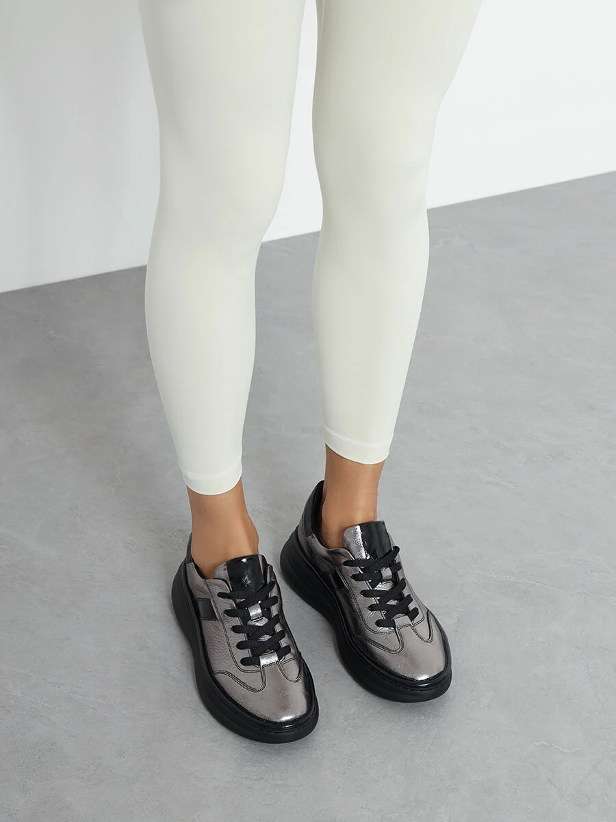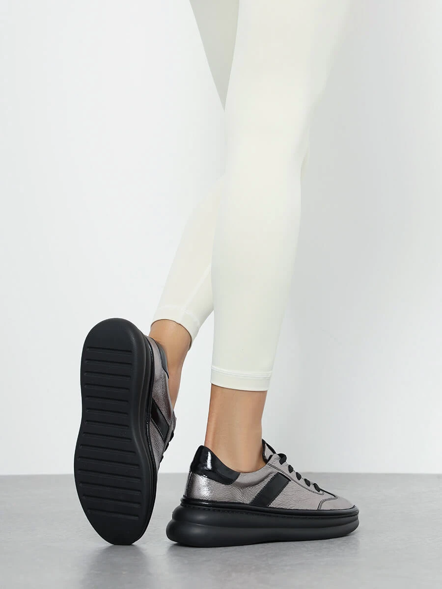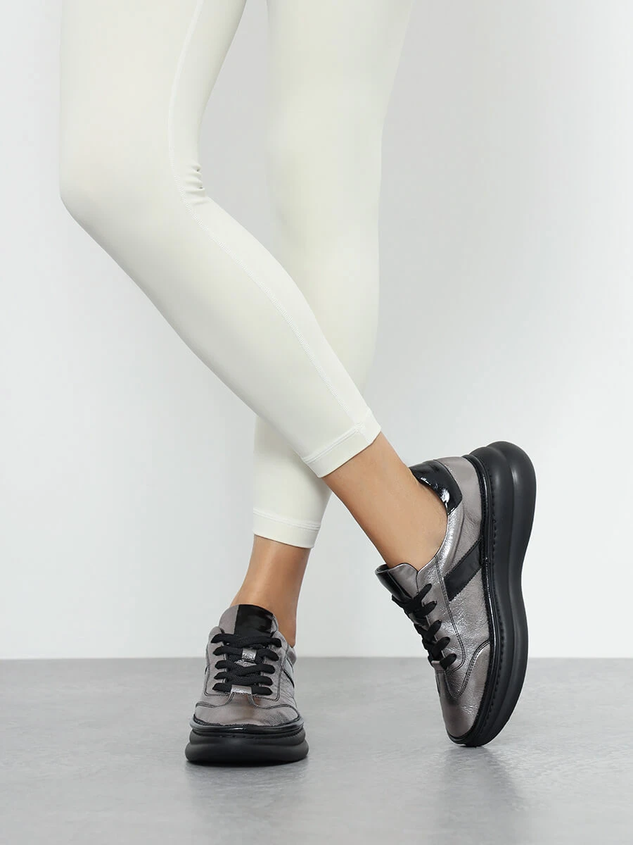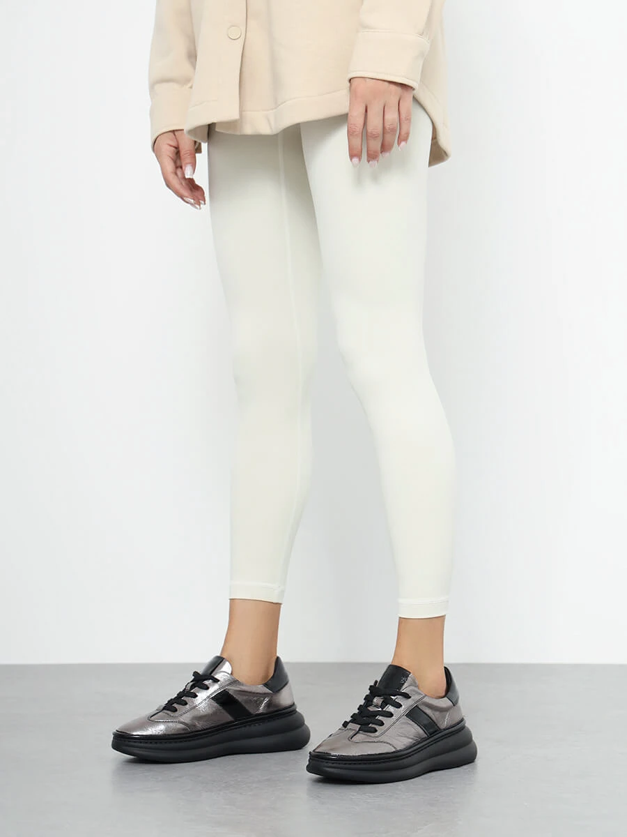 Кроссовки женские демисезонные, цвет графитовый, натуральная кожа