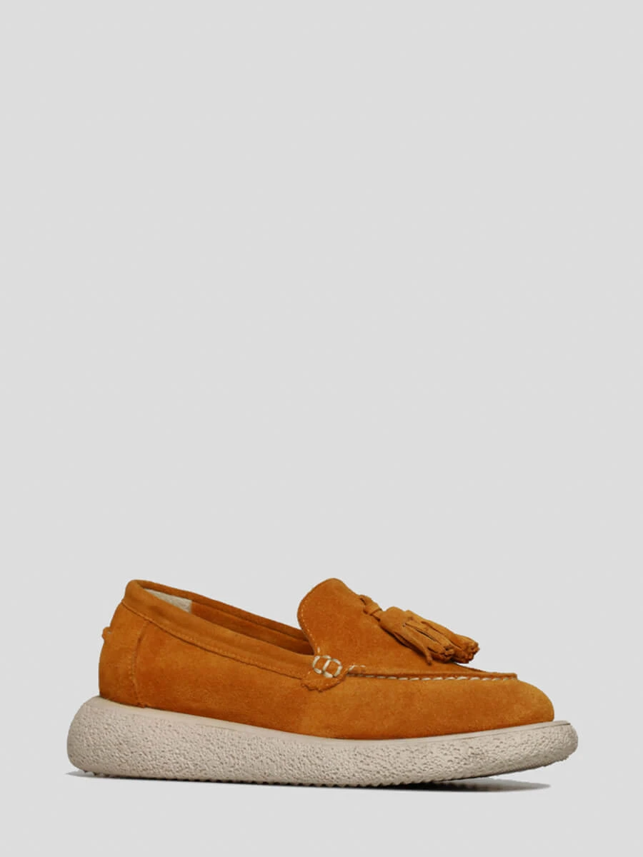 Лоферы женские всесезонные, цвет желтый, натуральный велюр