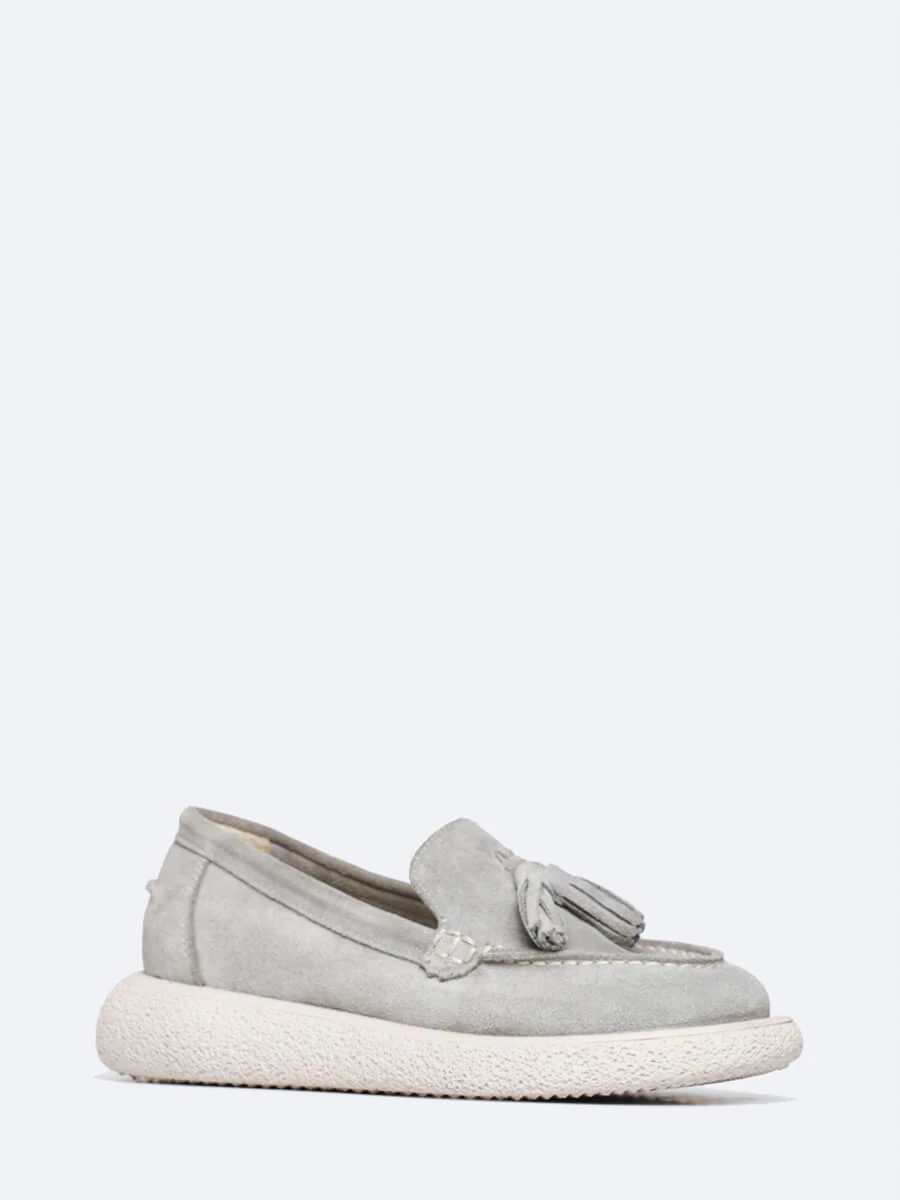 Лоферы женские всесезонные, цвет серый, натуральный велюр