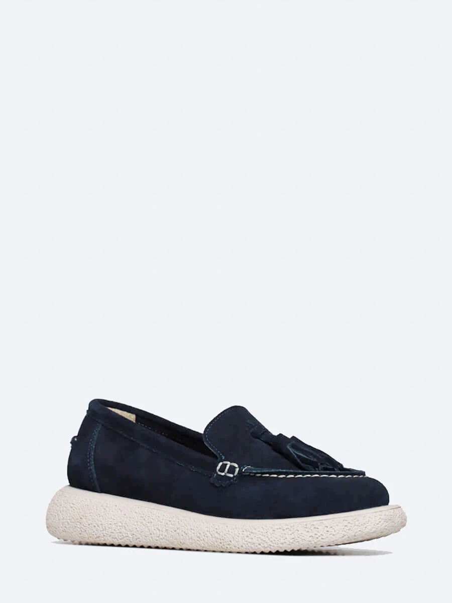 Лоферы женские всесезонные, цвет синий, натуральный велюр