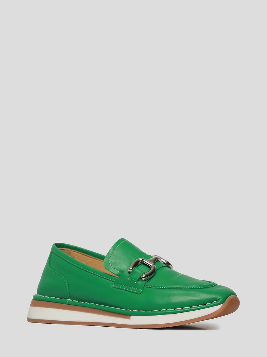 Лоферы женские всесезонные, цвет зеленый, натуральная кожа