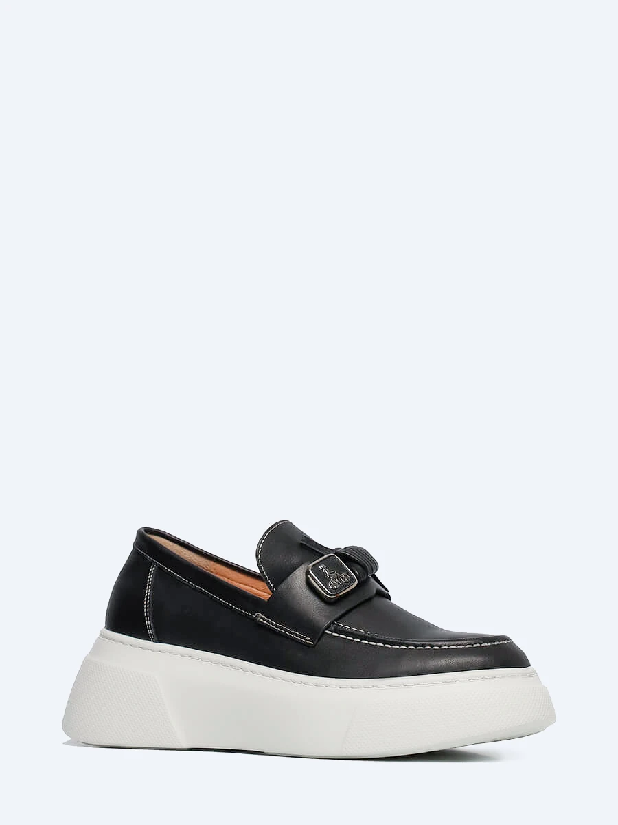 Лоферы женские всесезонные, цвет черный, натуральная кожа 136452 | 1
