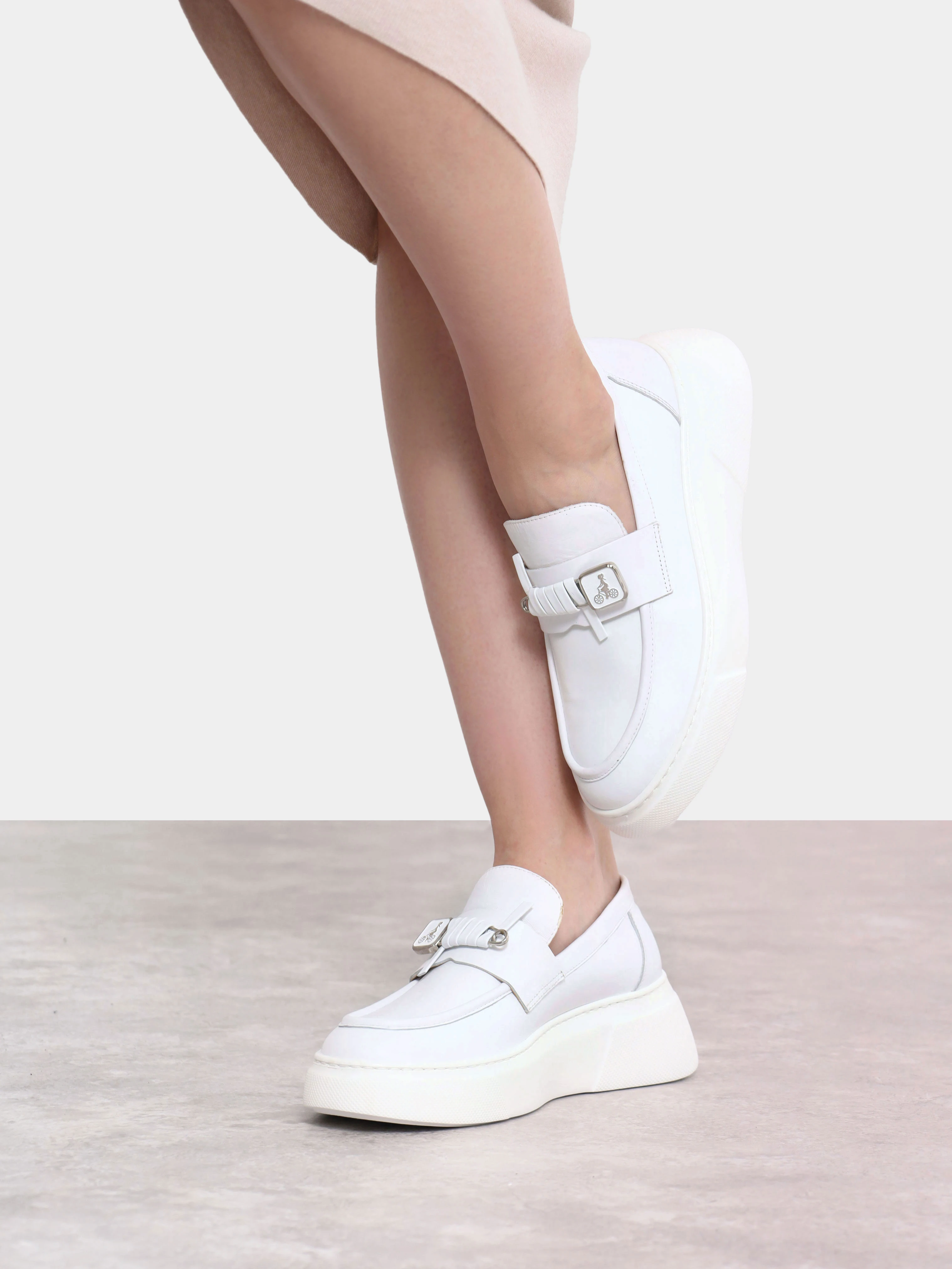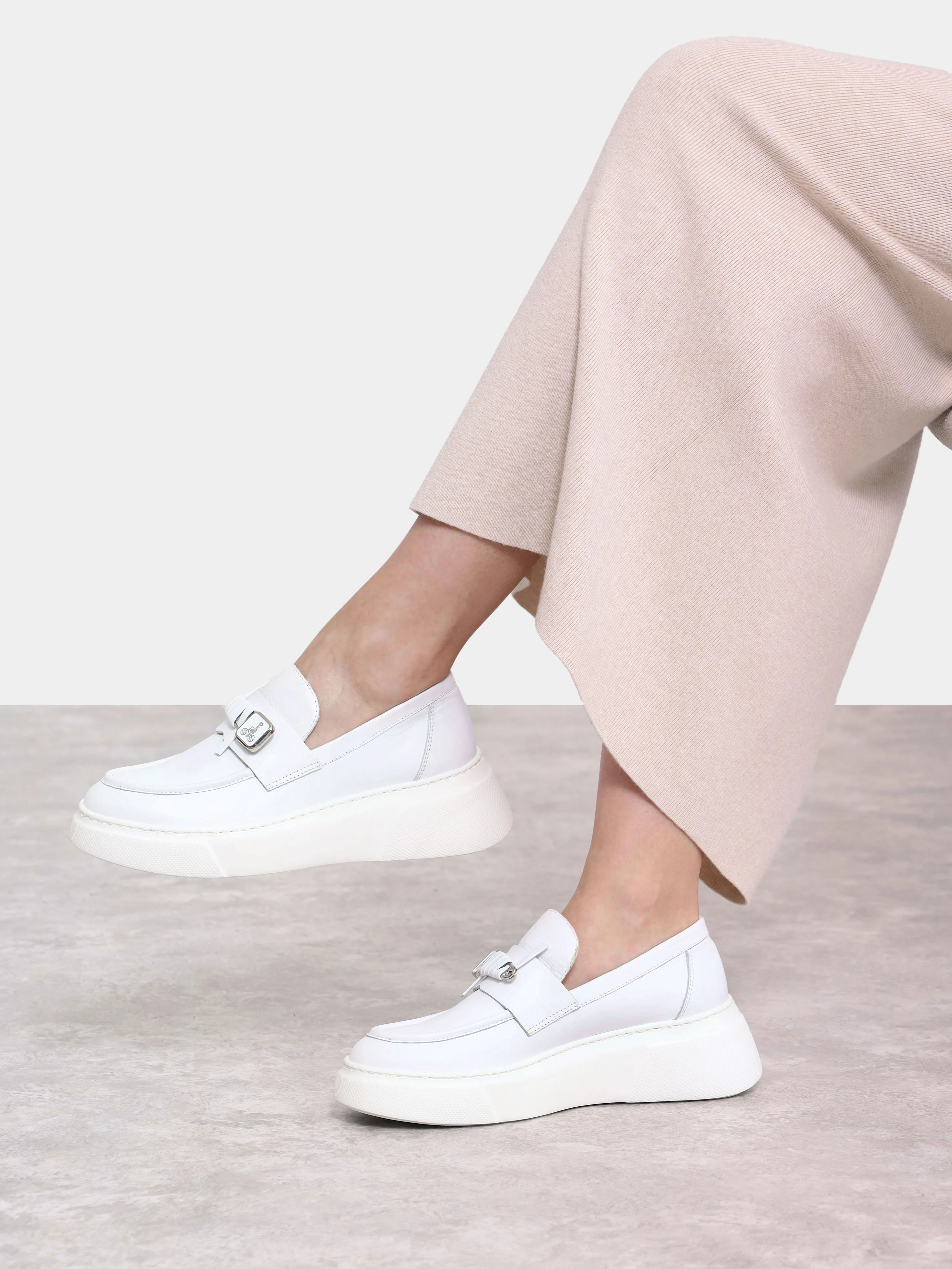 Лоферы женские всесезонные, цвет белый, натуральная кожа