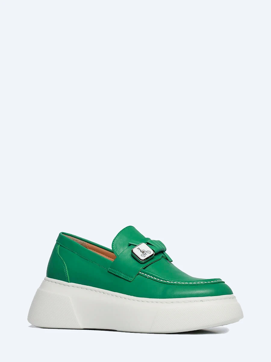 Лоферы женские всесезонные, цвет зеленый, натуральная кожа