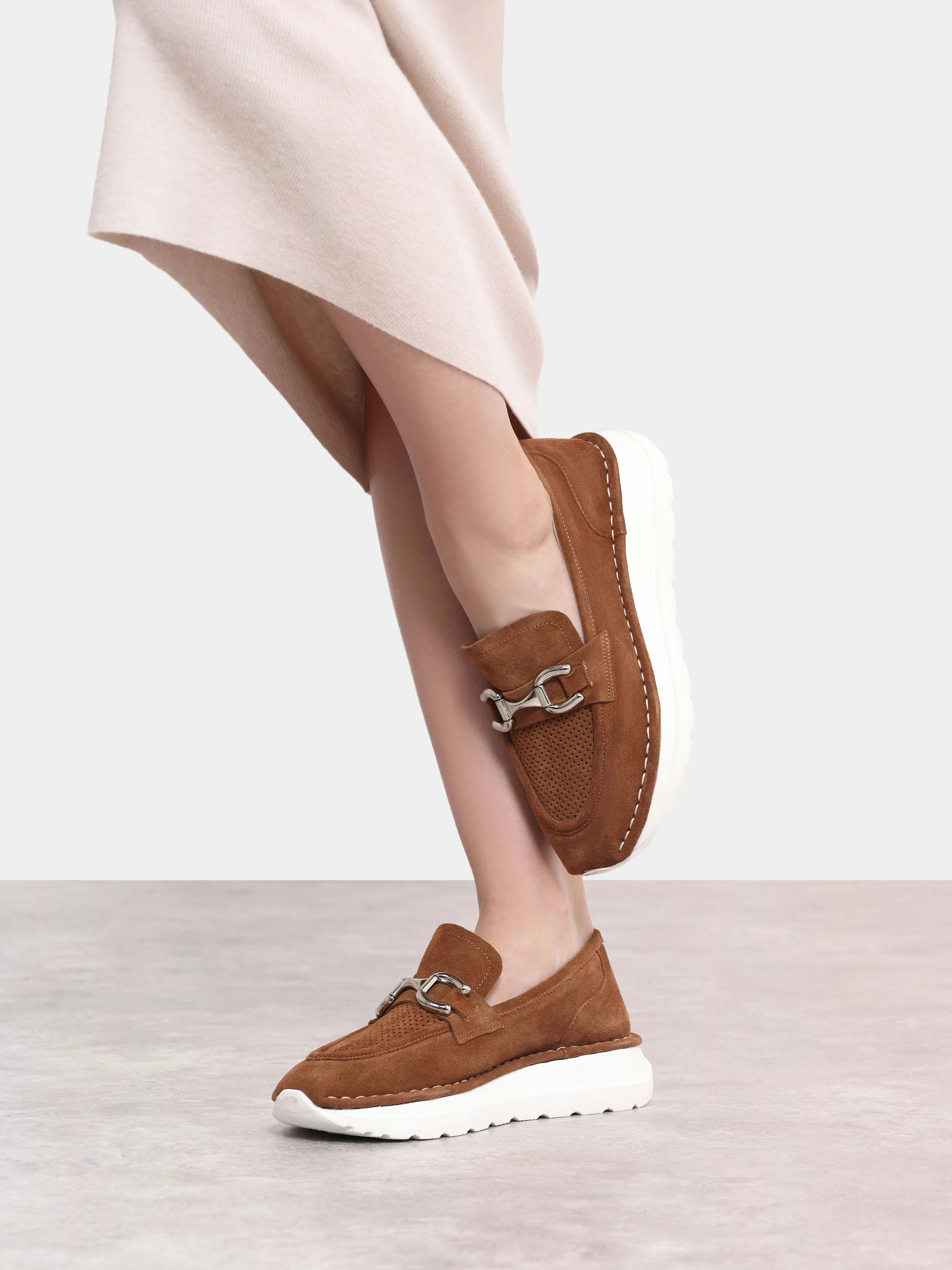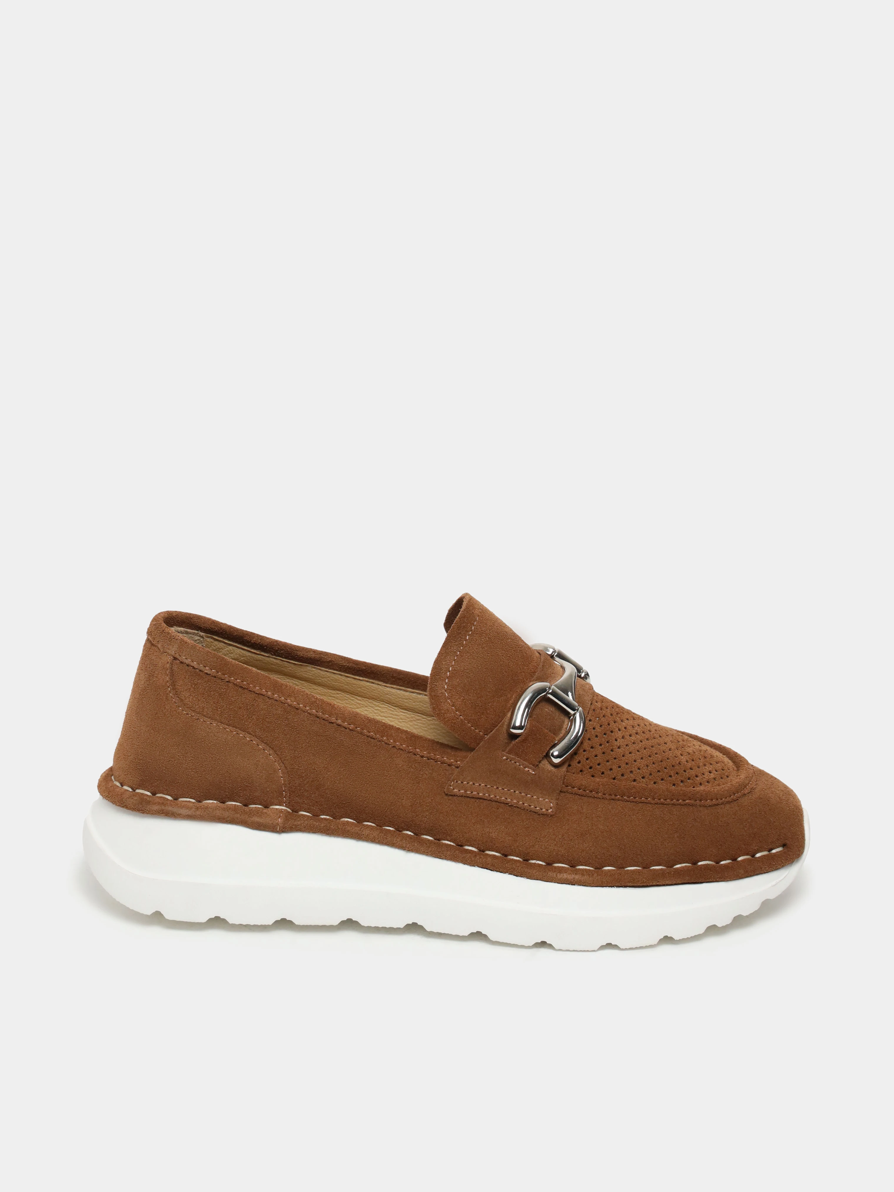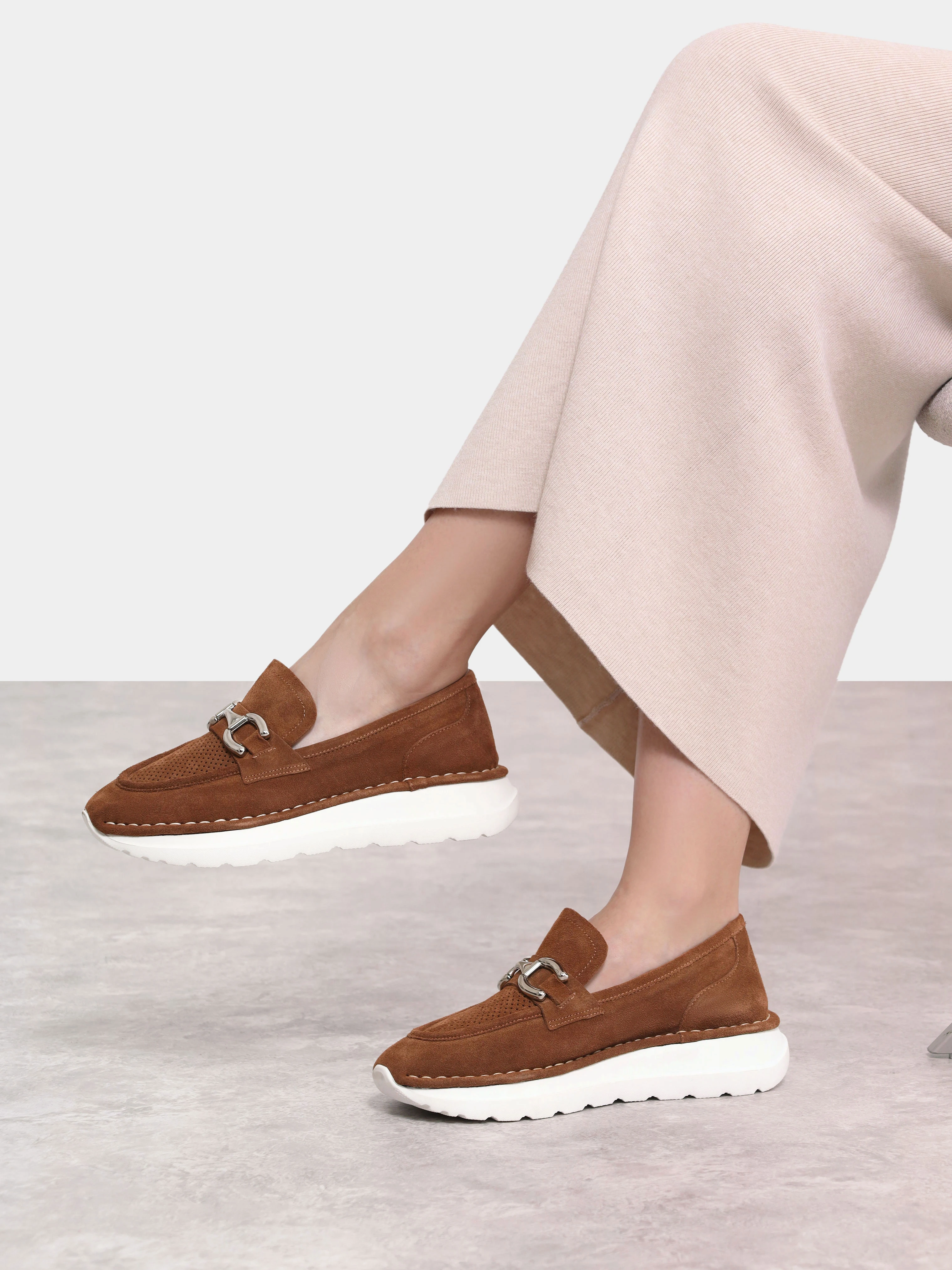 Лоферы женские всесезонные, цвет рыжий, натуральный спилок