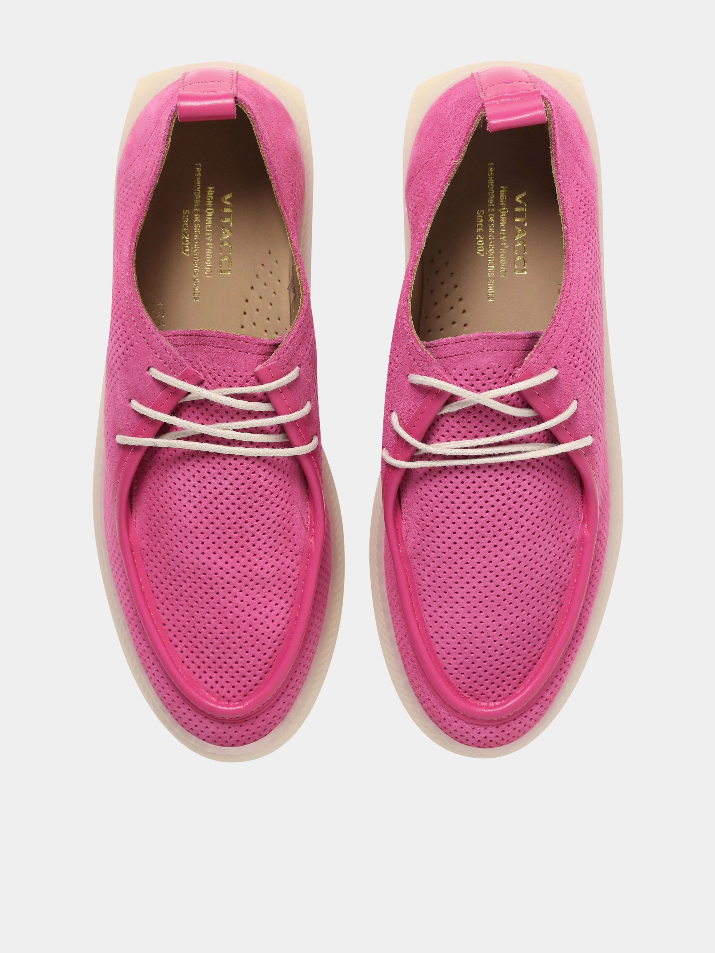 Полуботинки VITACCI выполнены из натурального спилка. Подошва из пенополиуретана отлично амортизирует. Модель подойдет для прогулок летом в городе.