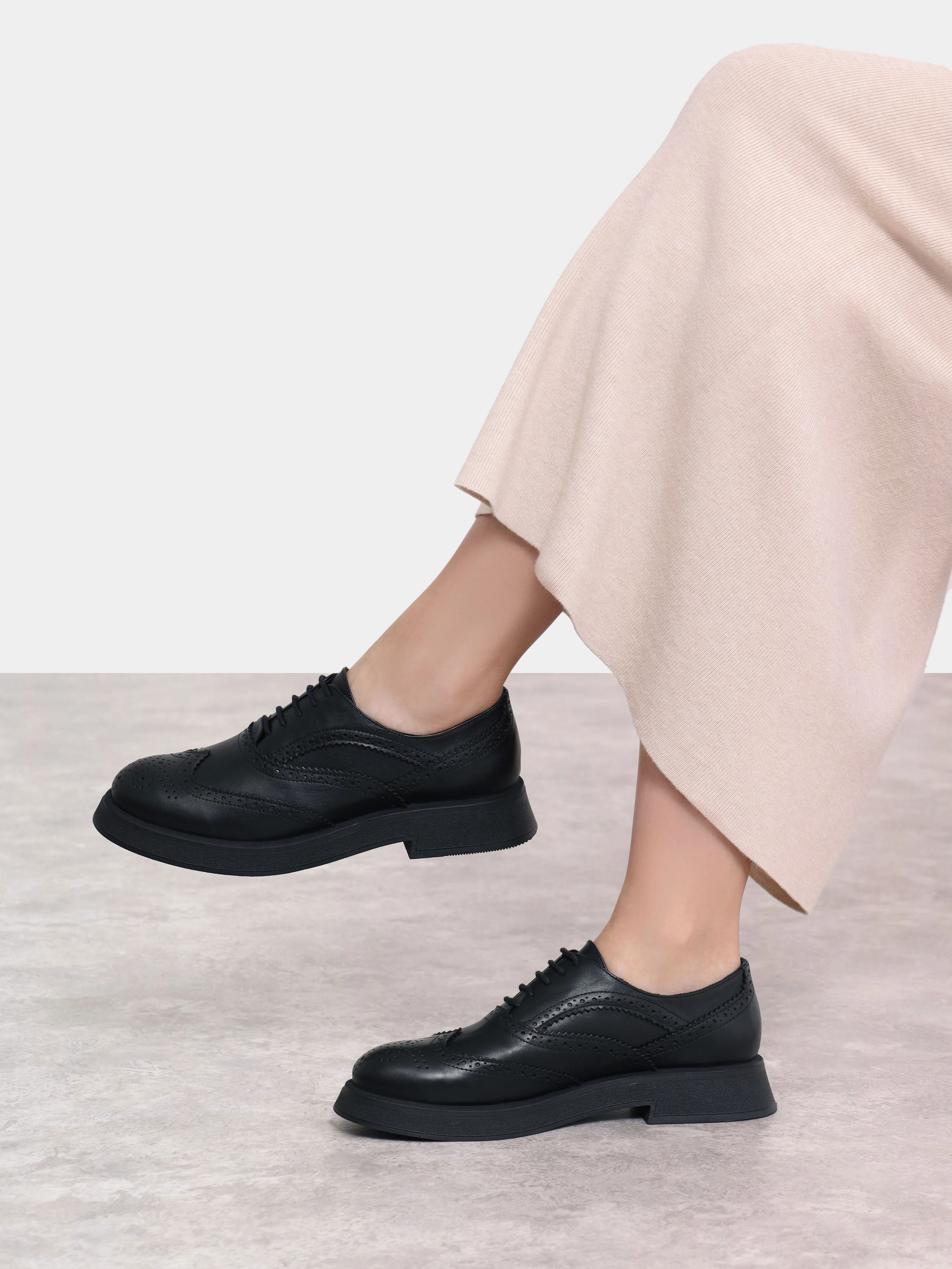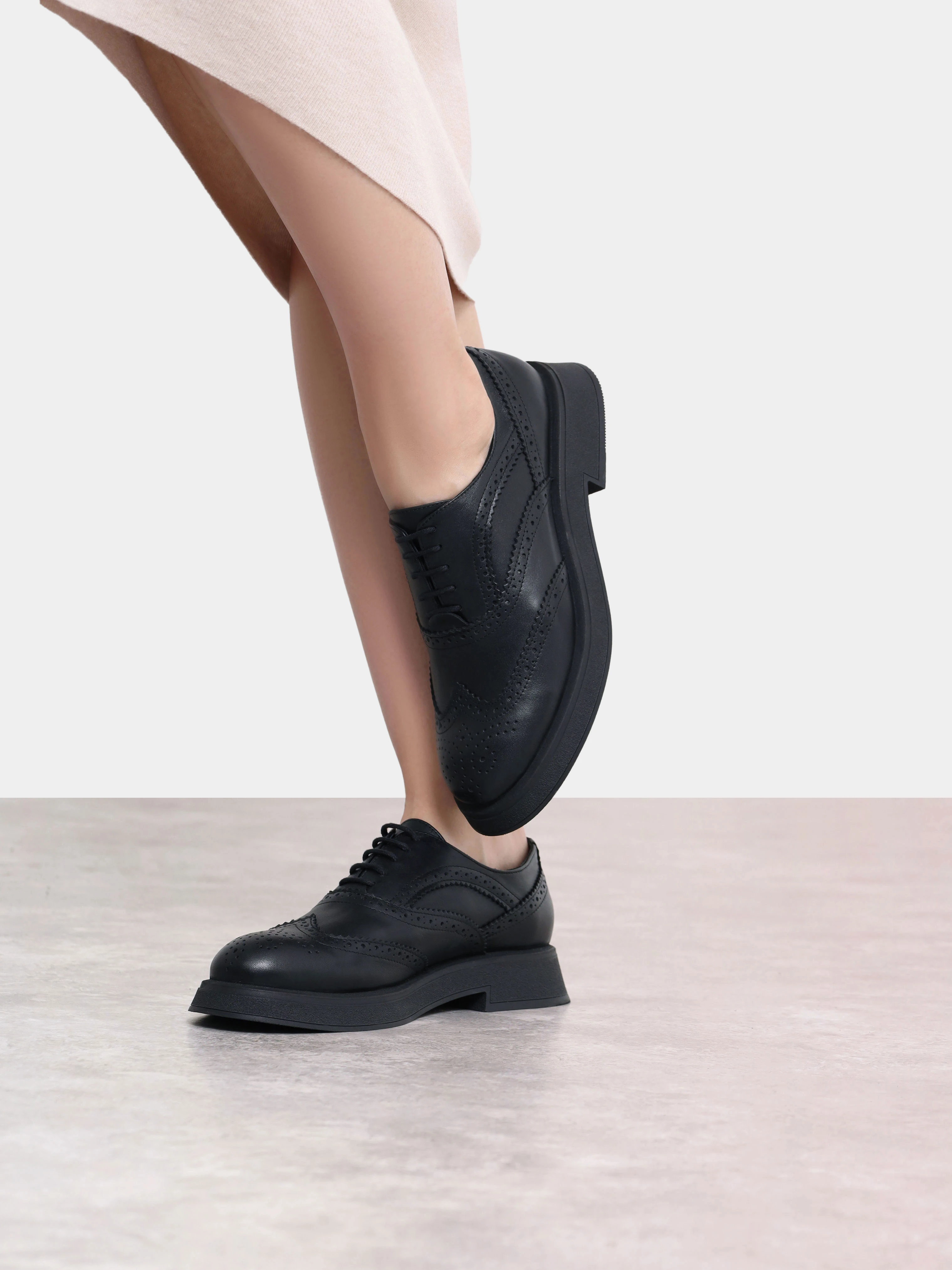 Полуботинки женские демисезонные, цвет черный, натуральная кожа