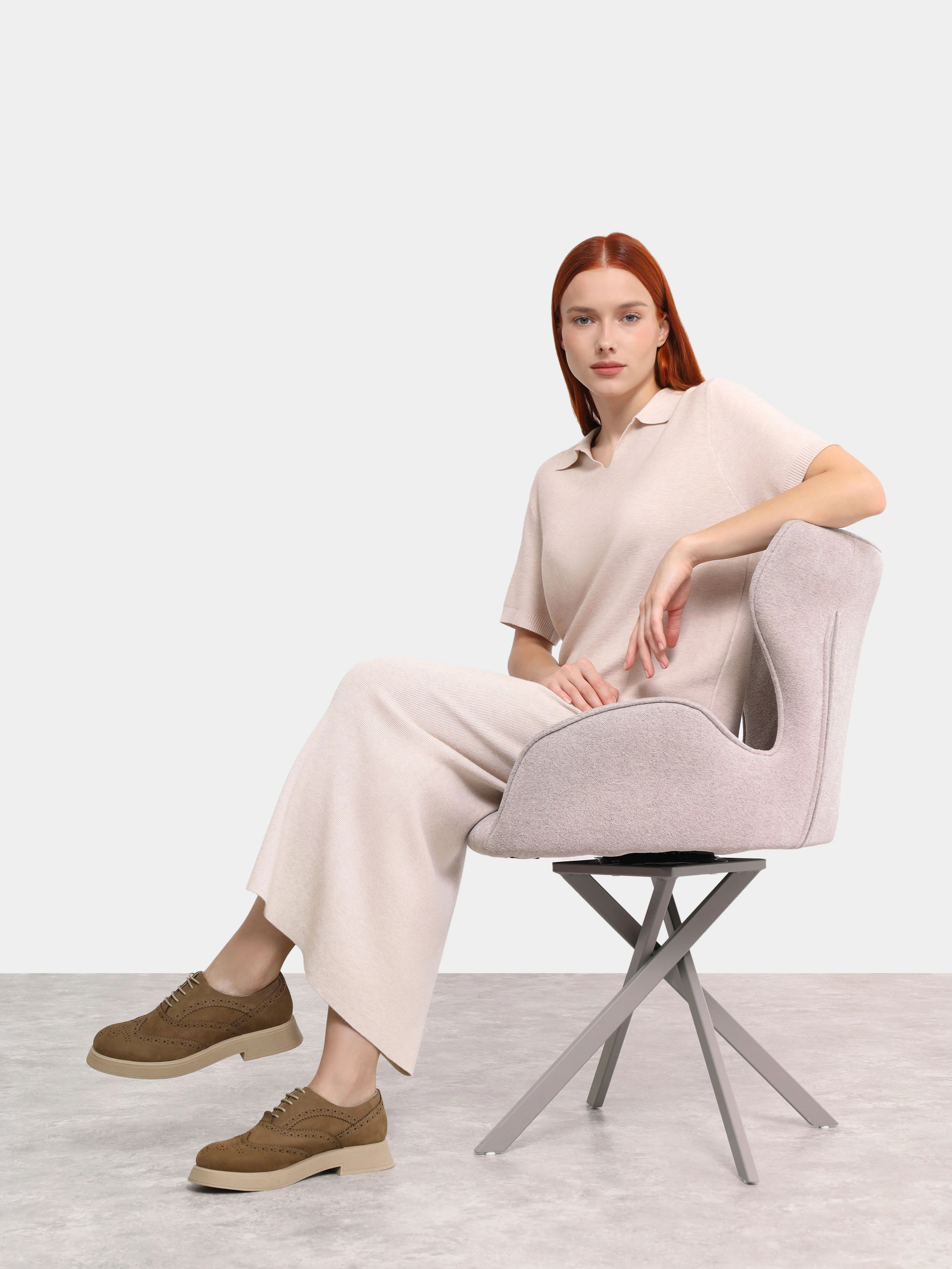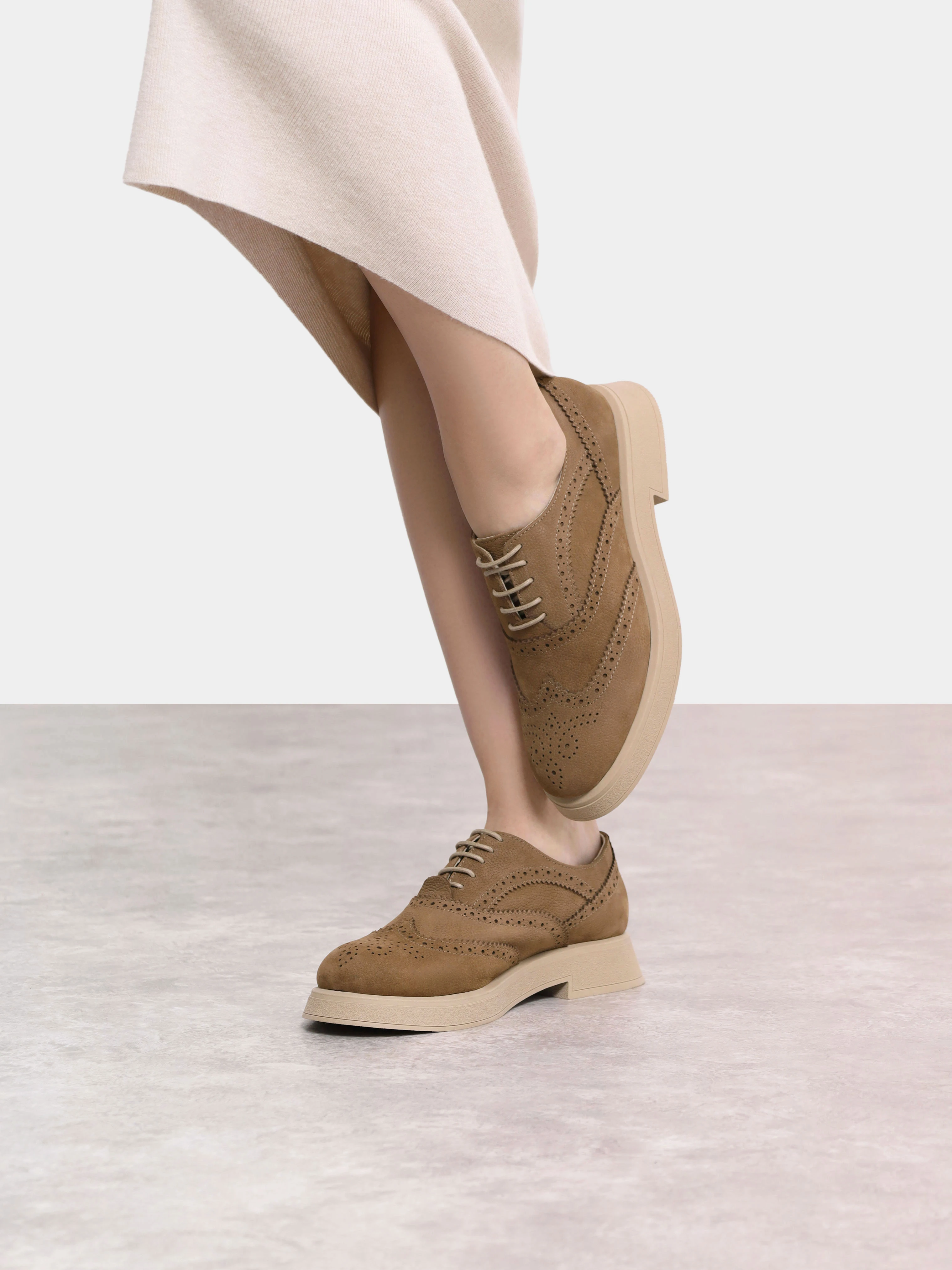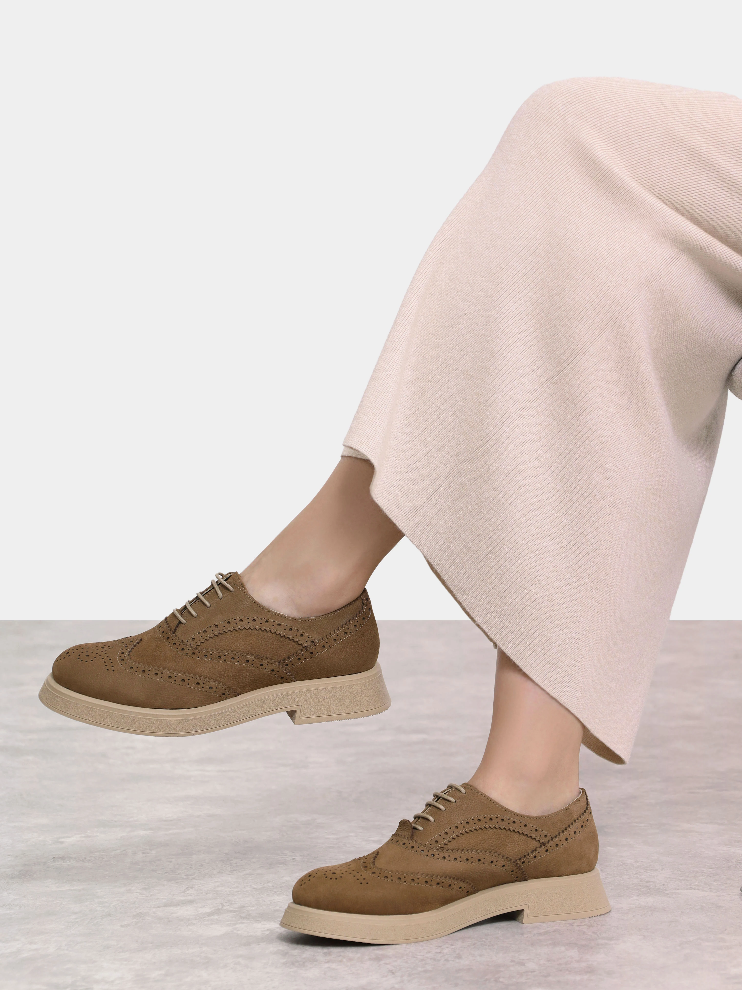 Полуботинки женские демисезонные, цвет рыжий, натуральный нубук