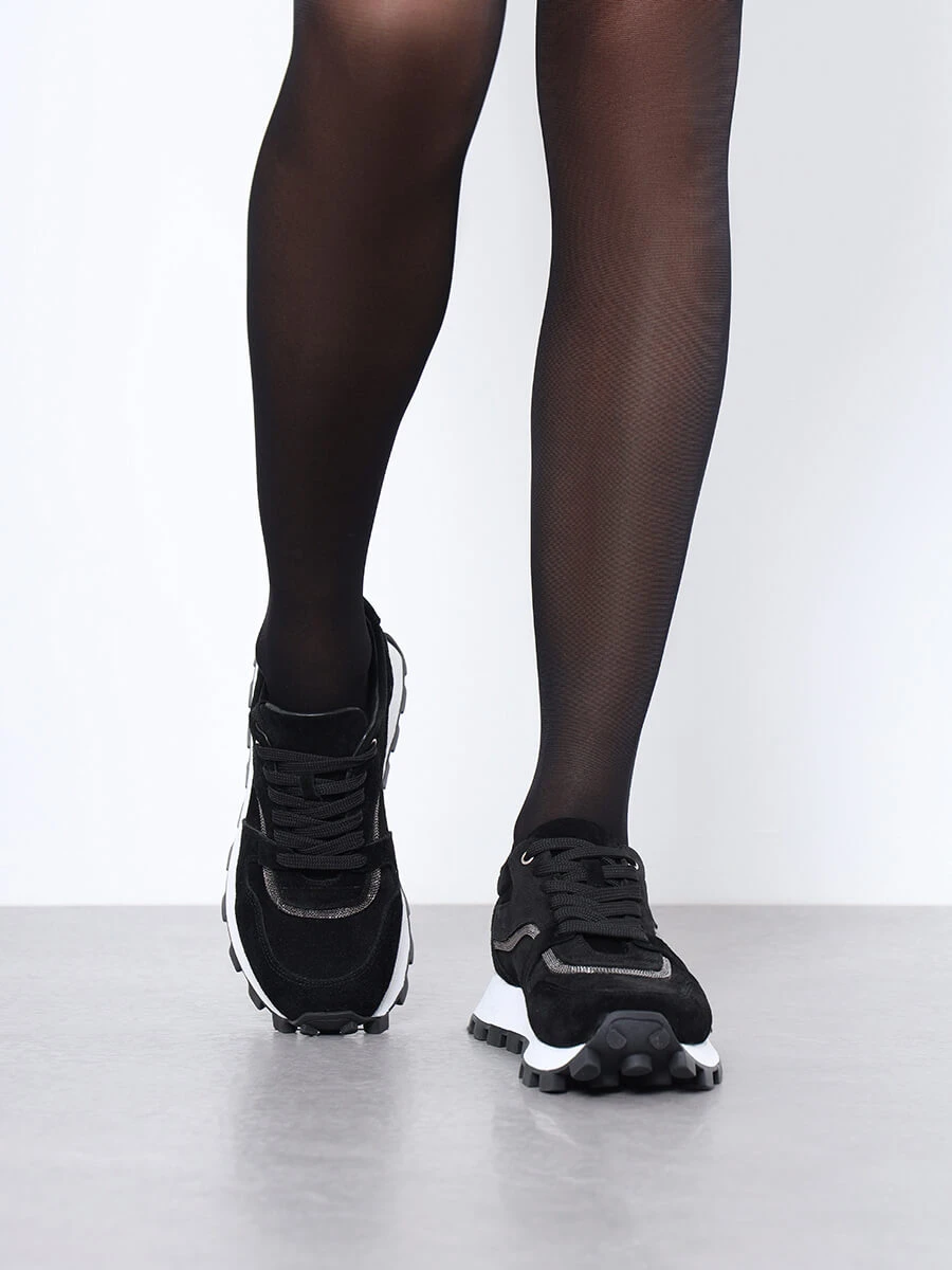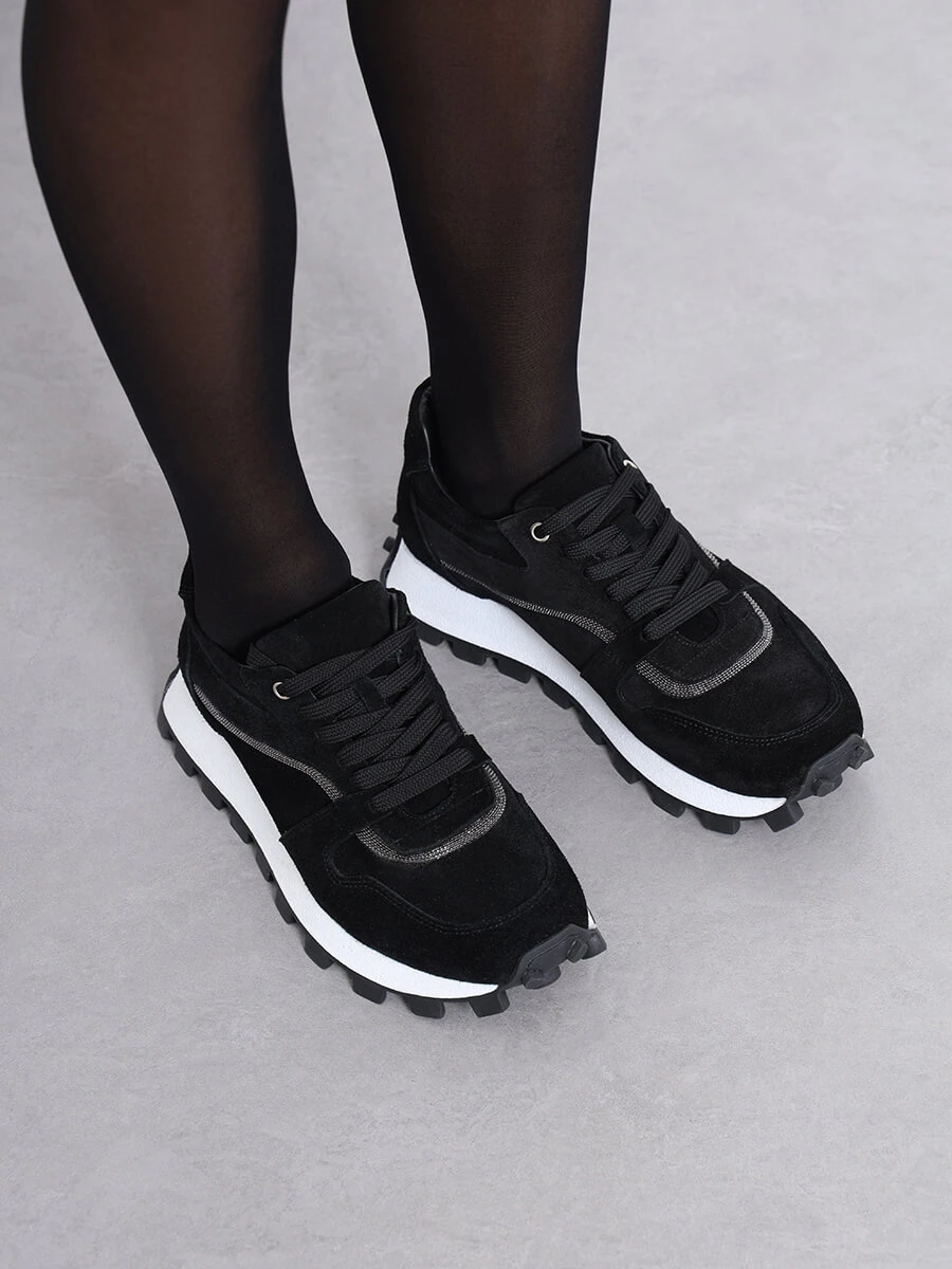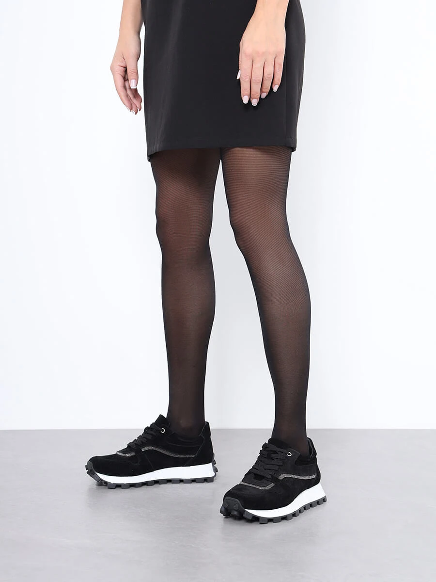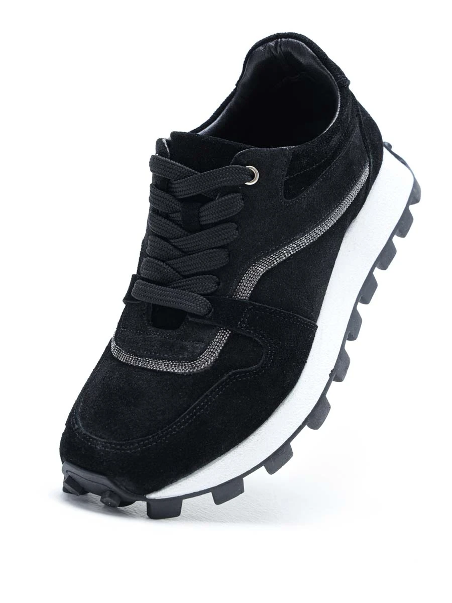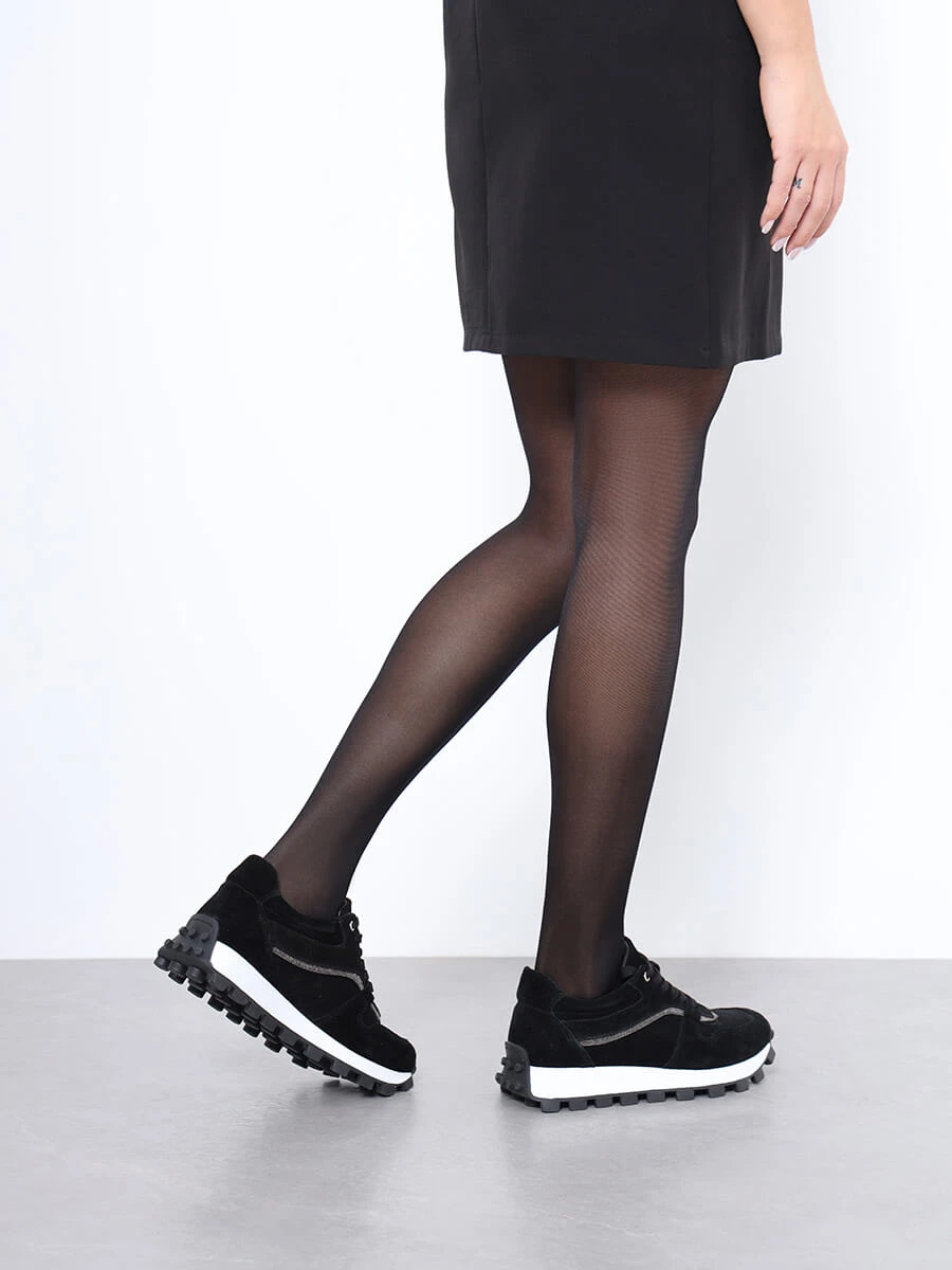 Кроссовки женские демисезонные, цвет черный, натуральный спилок
