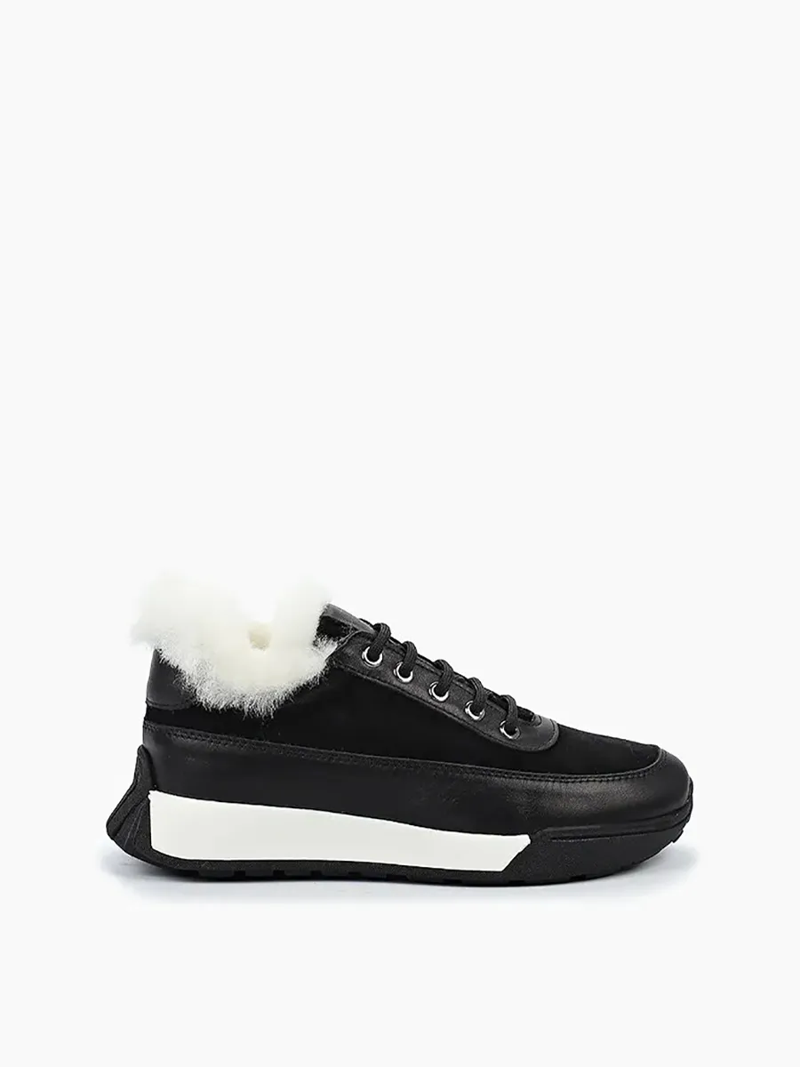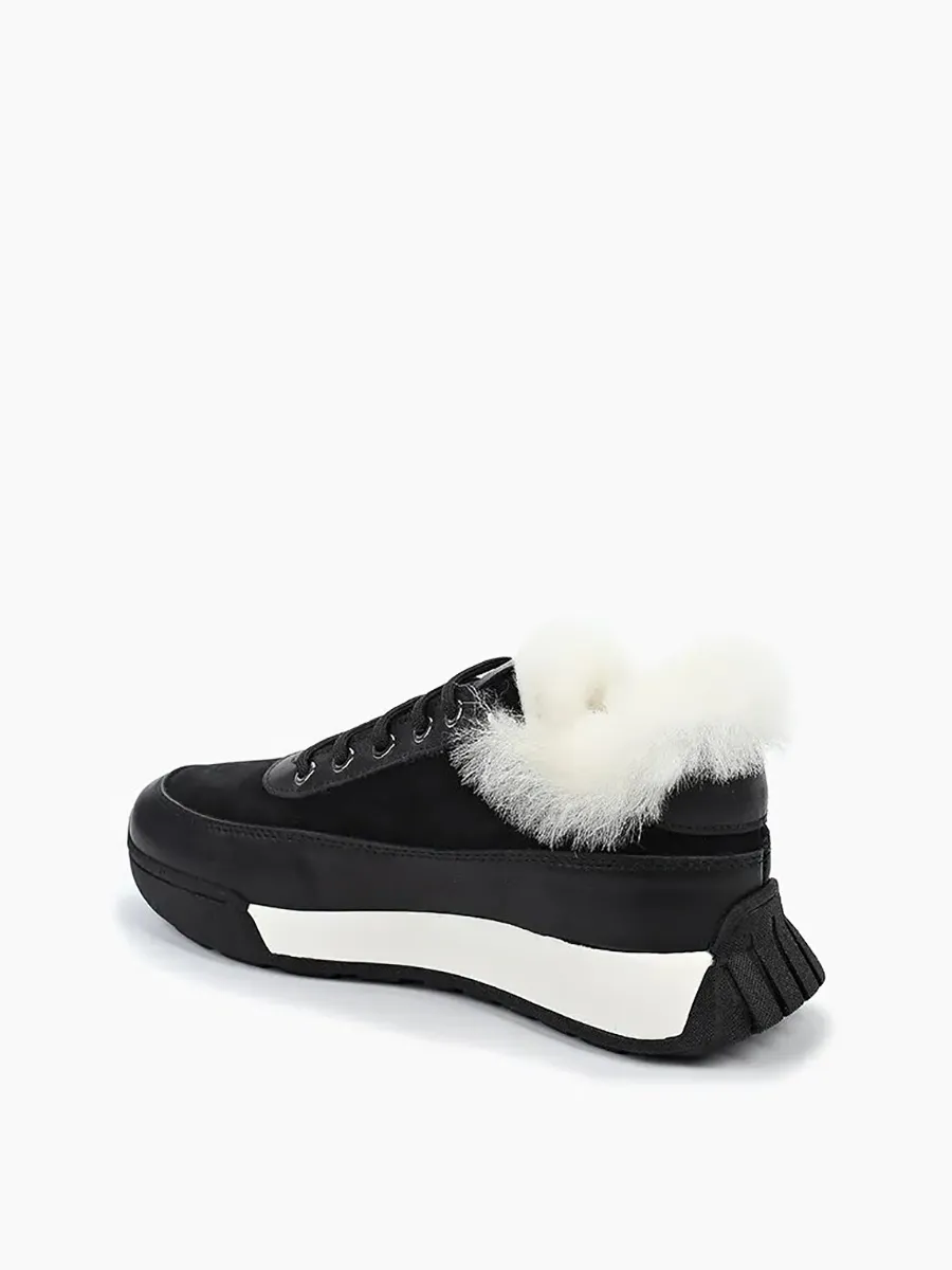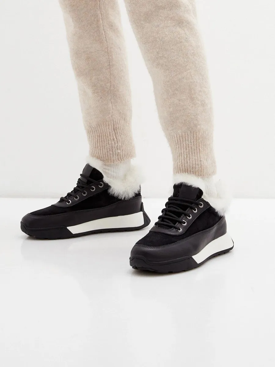 Кроссовки женские зимние, цвет черный, натуральная кожа