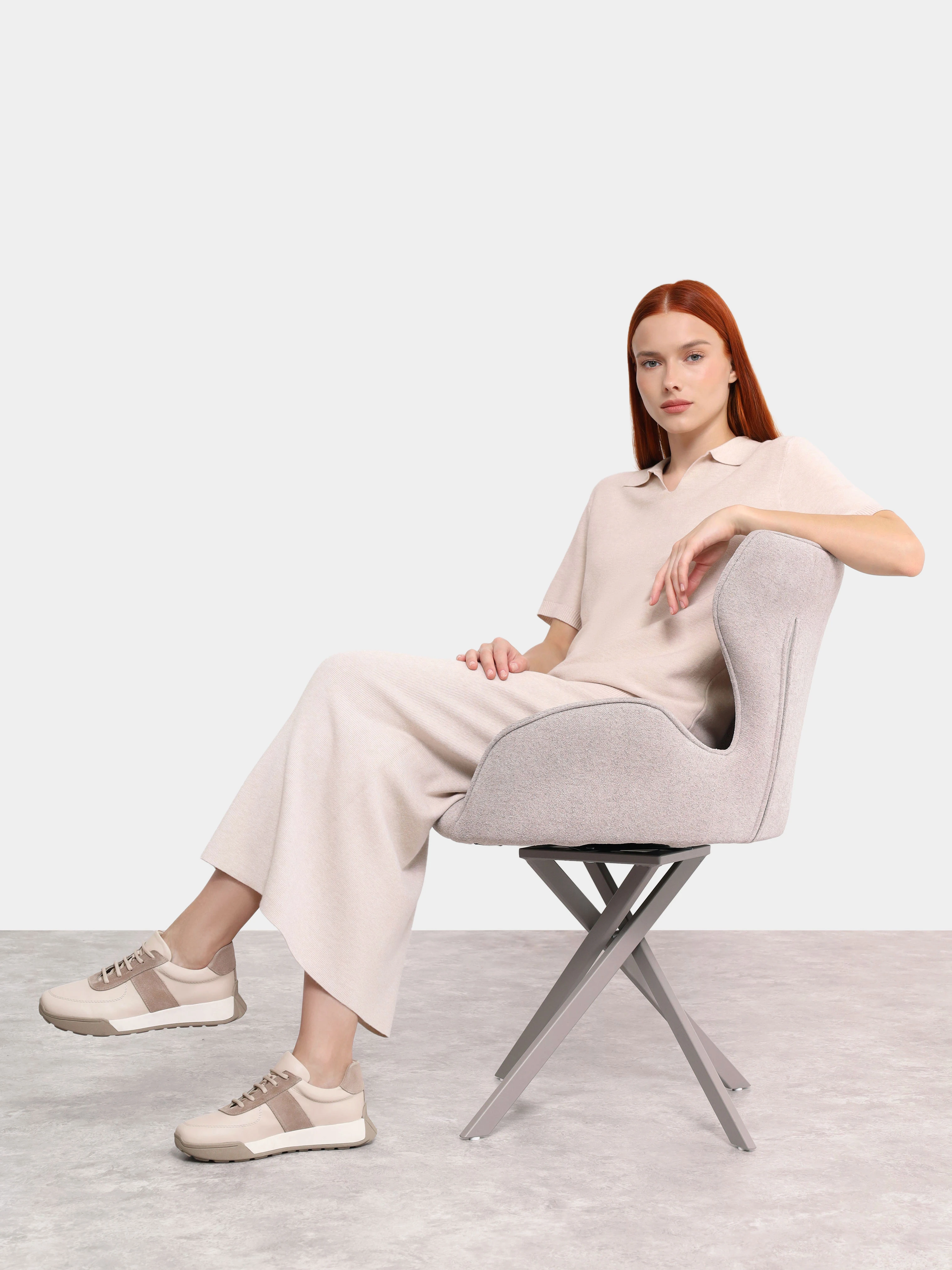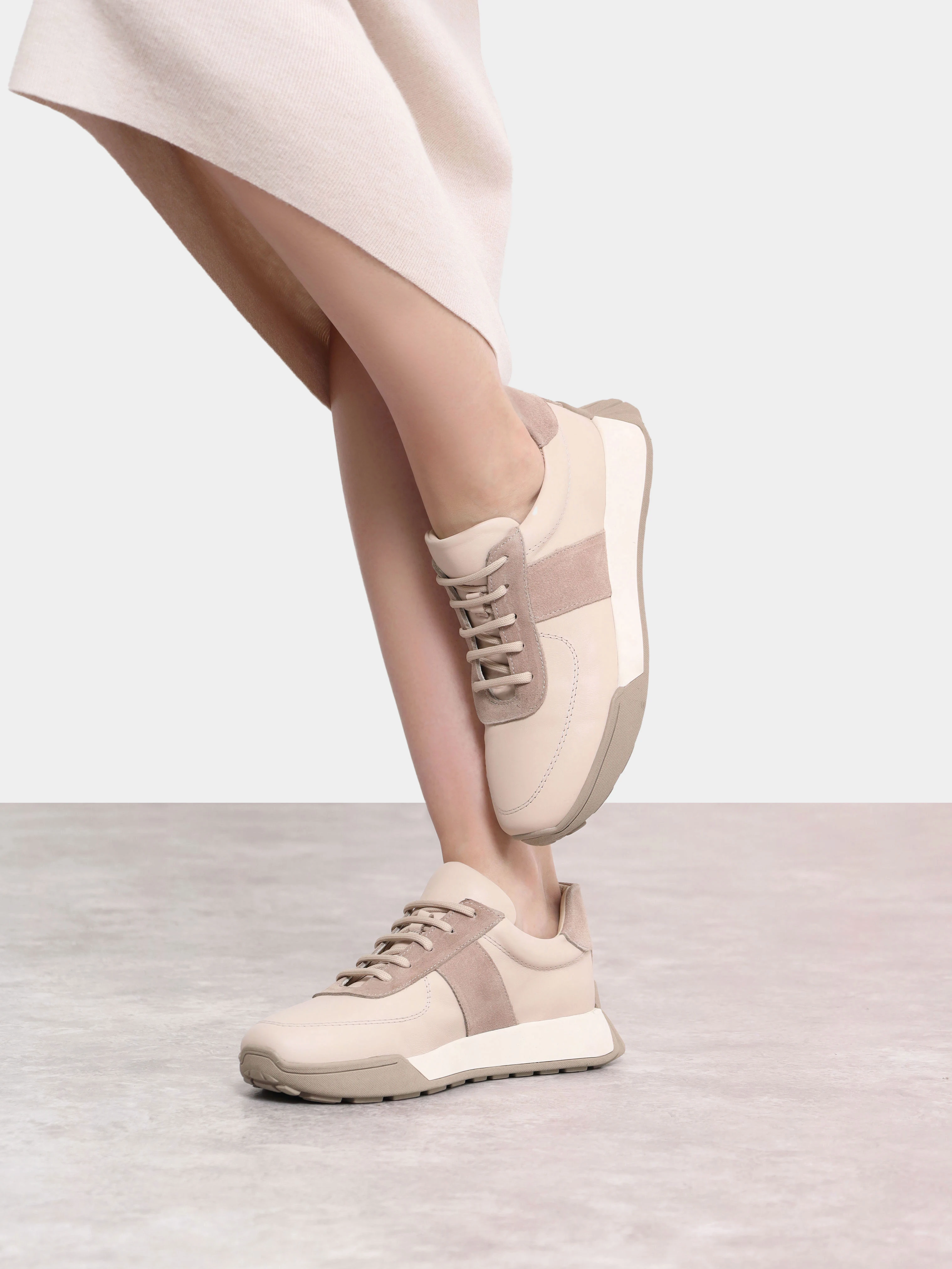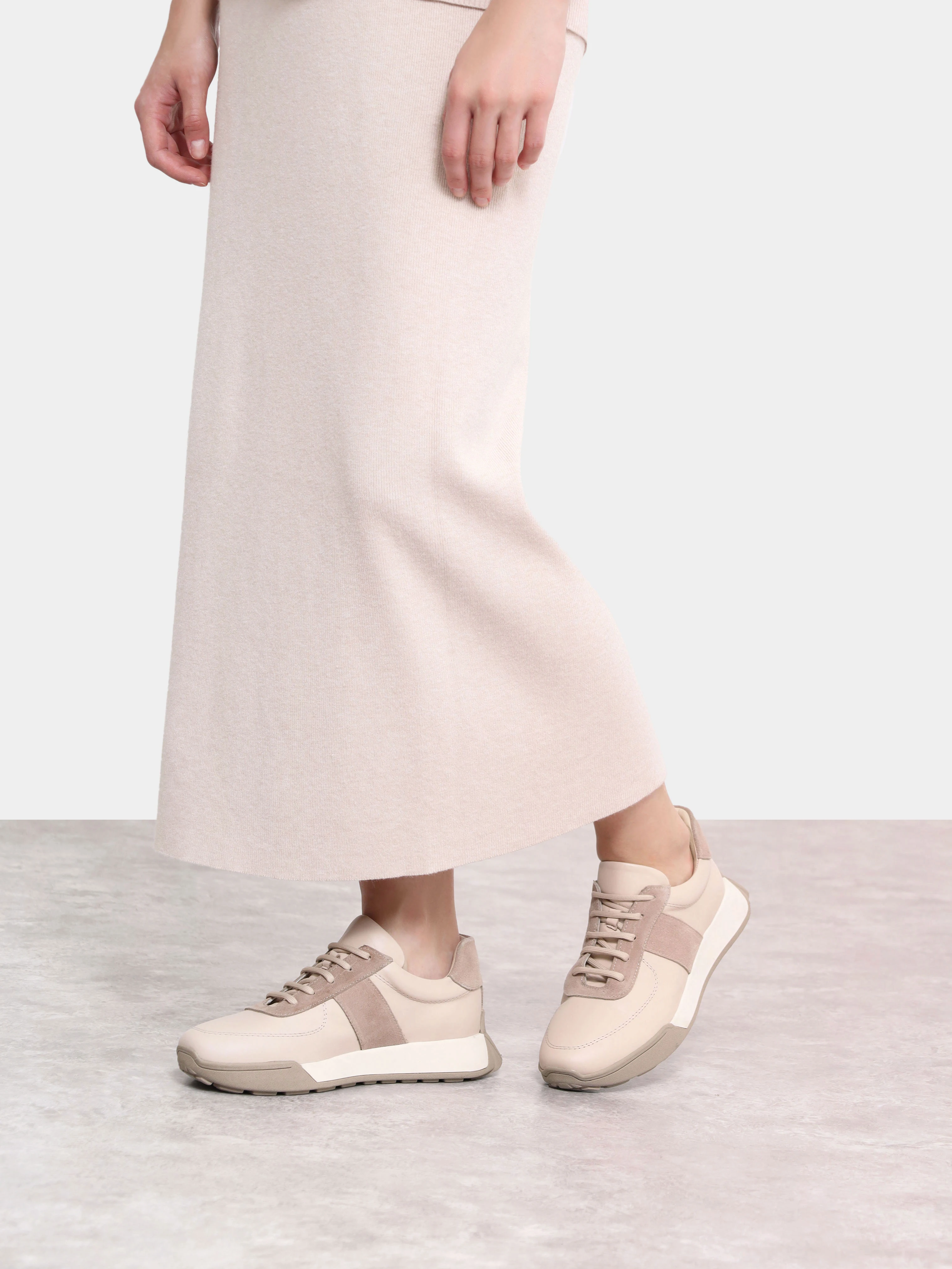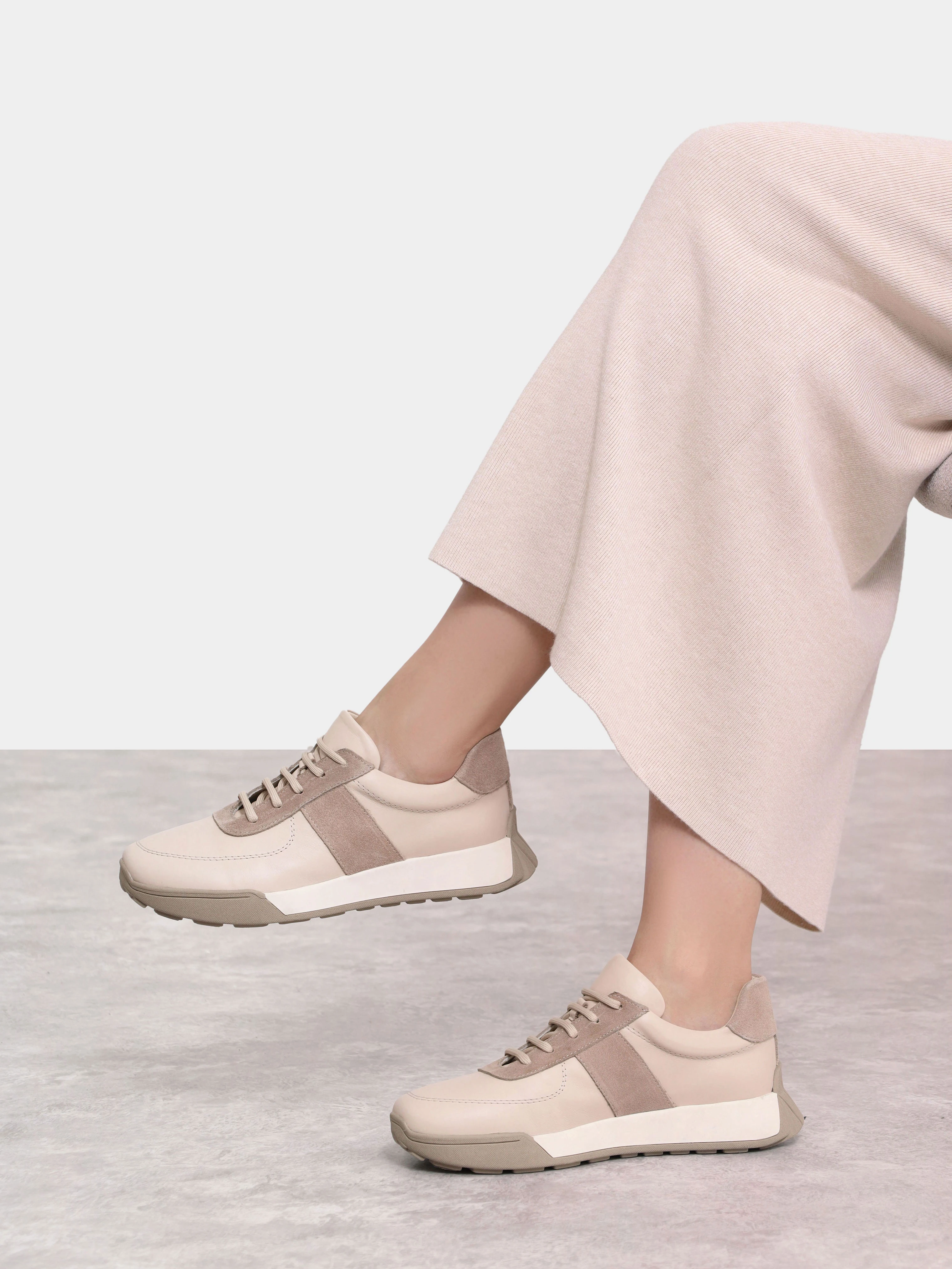 Кроссовки женские демисезонные, цвет бежевый, натуральная кожа
