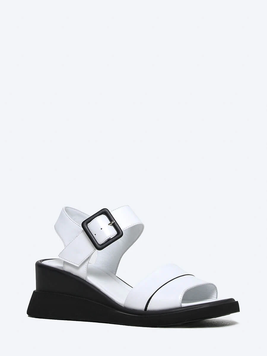 Босоножки выполнены из натуральной кожи. Благодаря танкетке средней высоты, модель подходит для каждодневной носки в летний сезон.