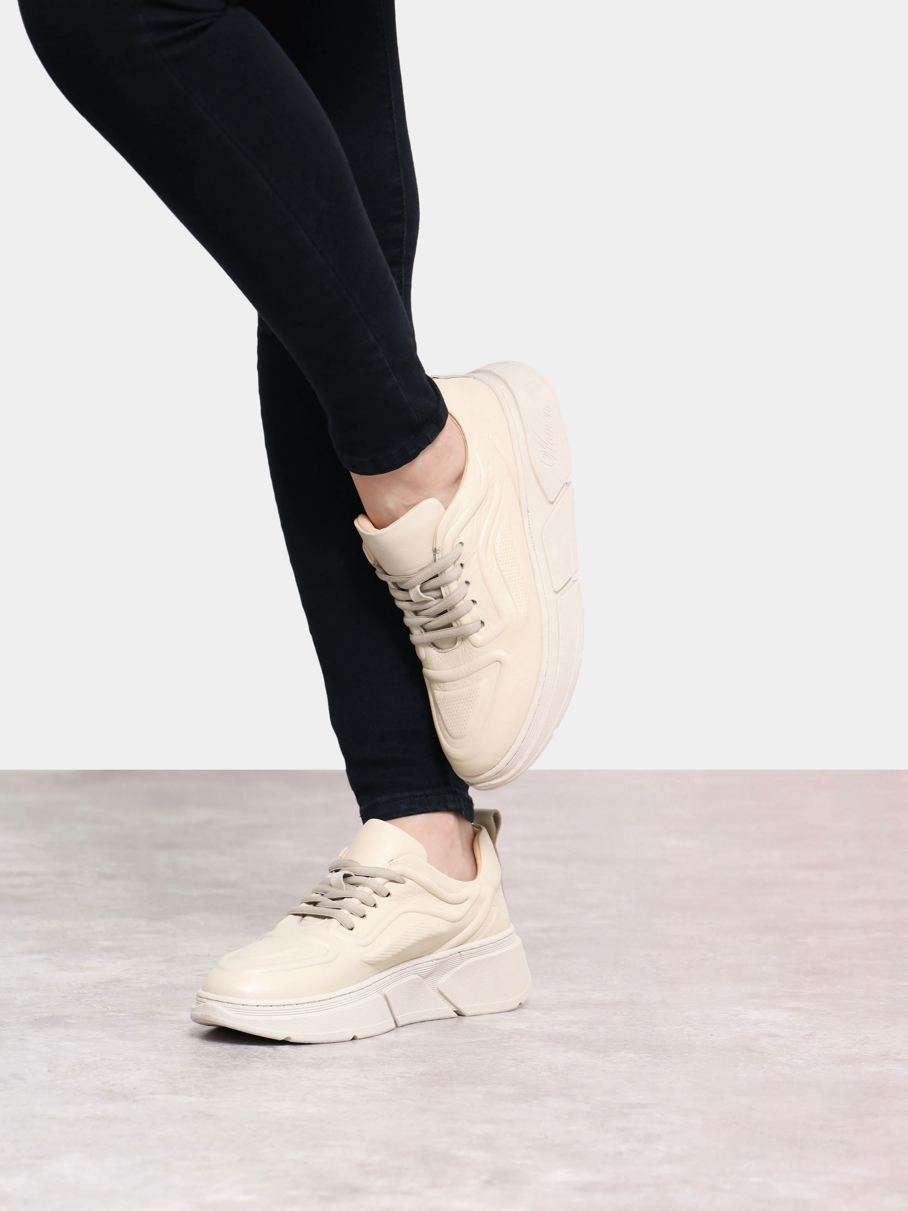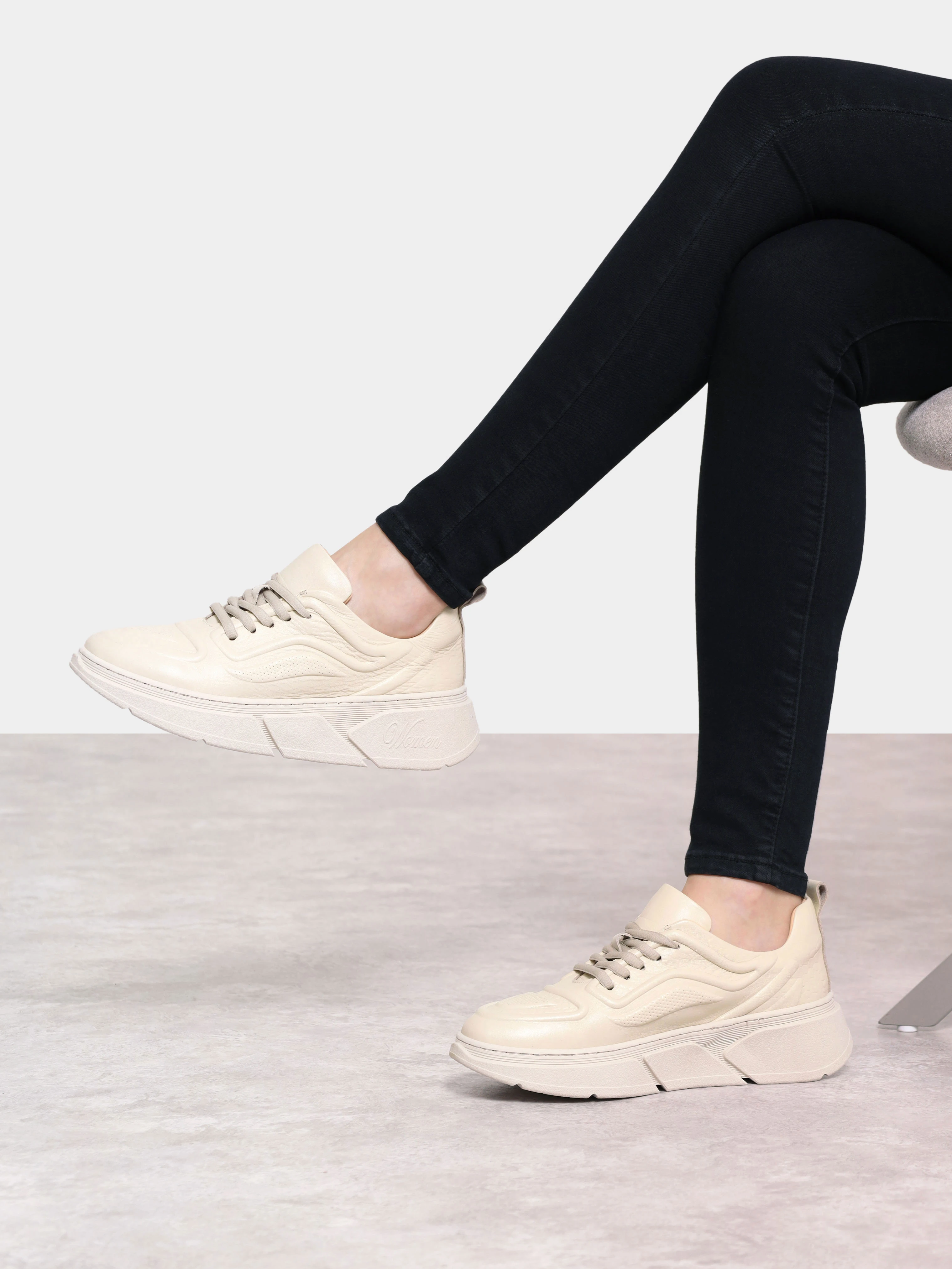 Кроссовки женские демисезонные, цвет бежевый, натуральная кожа