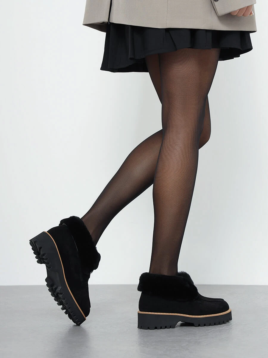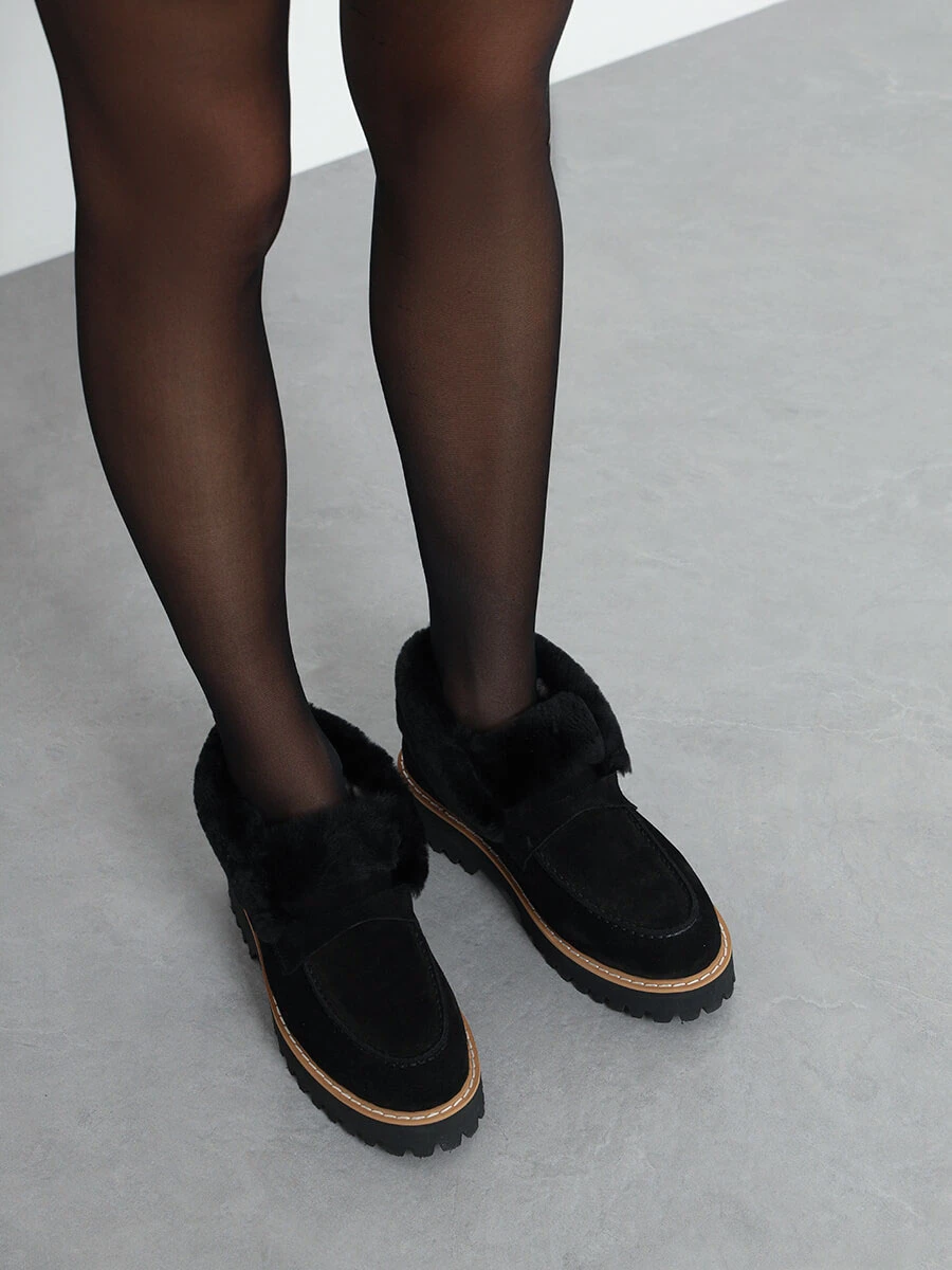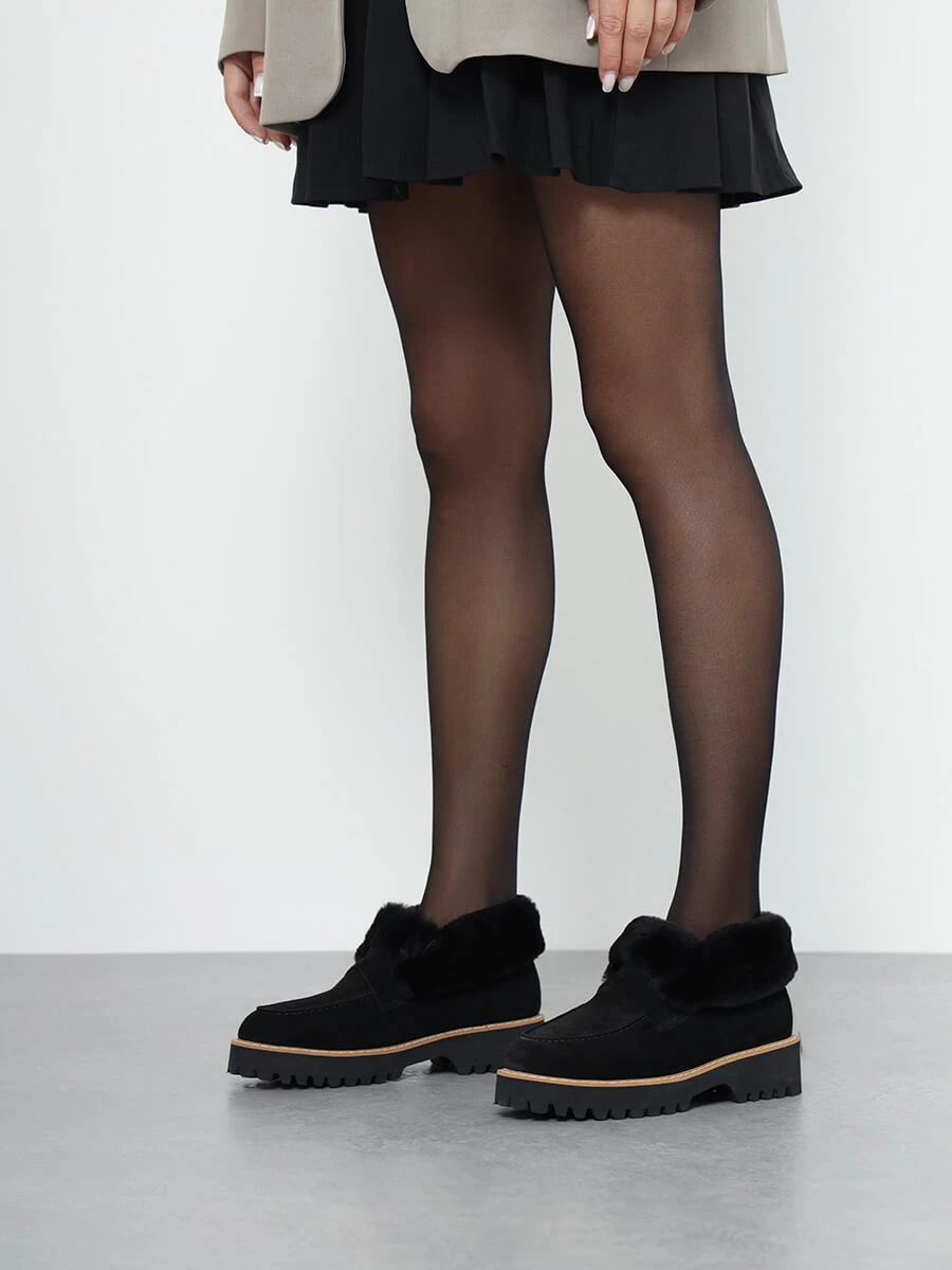 Лоферы женские зимние, цвет черный, натуральный нубук
