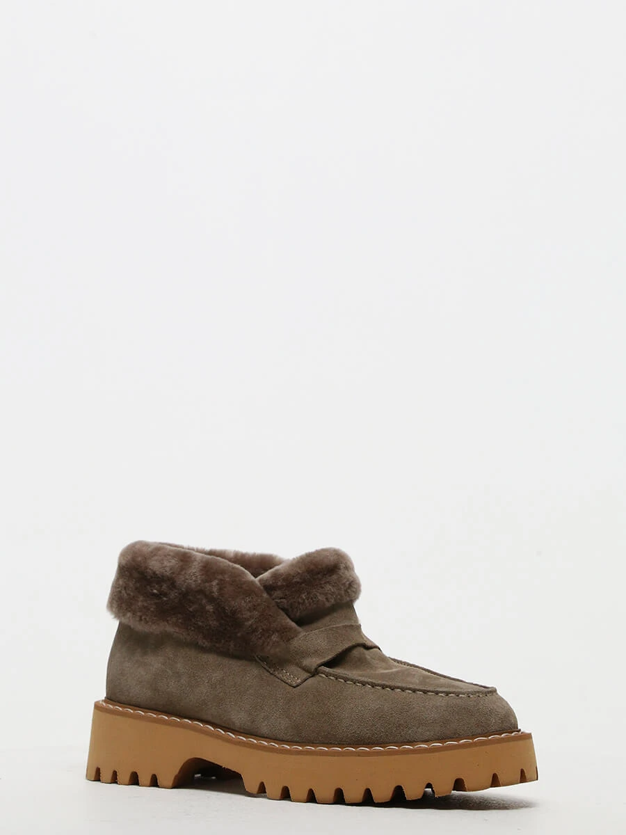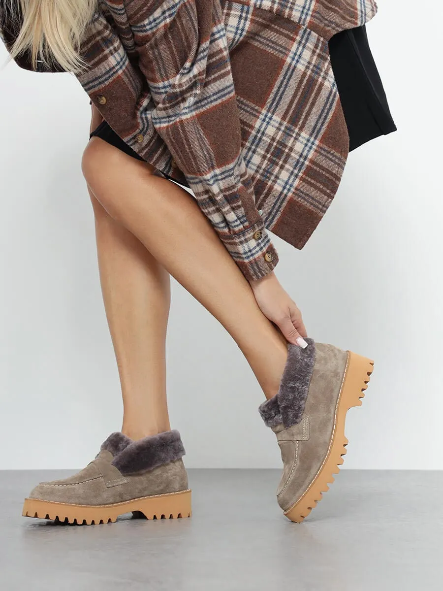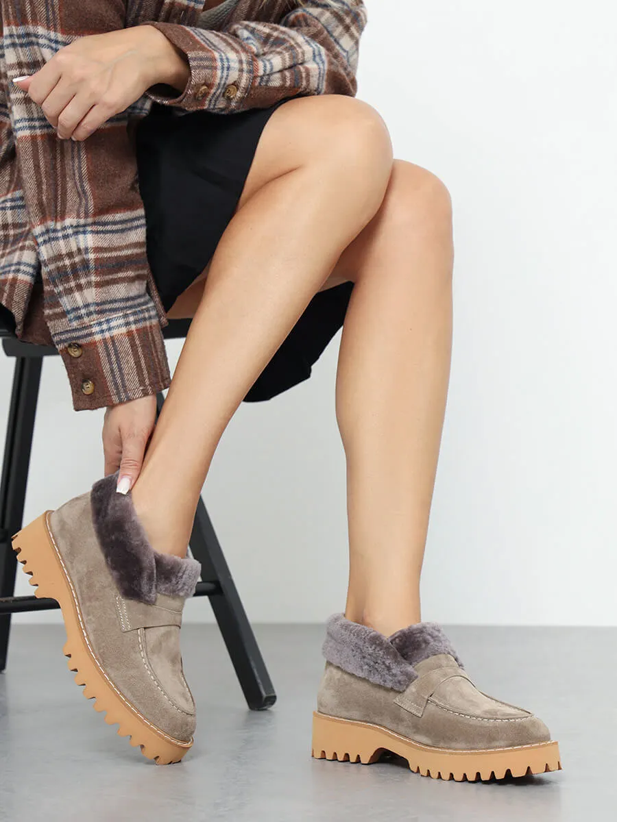 Лоферы женские зимние, цвет мокко, натуральный нубук