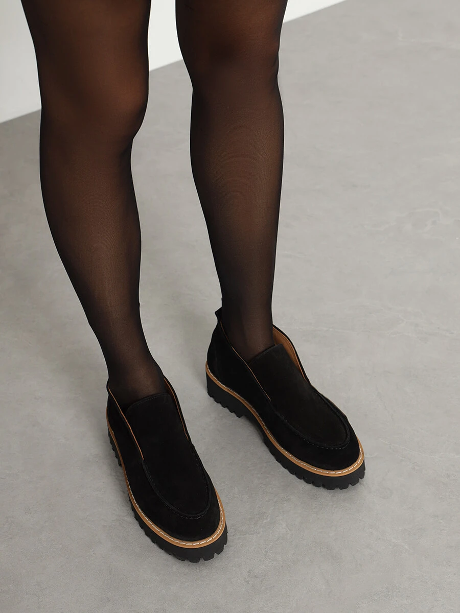 Лоферы женские всесезонные, цвет черный, натуральный нубук