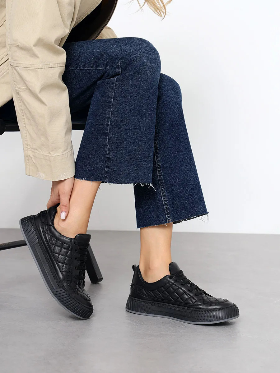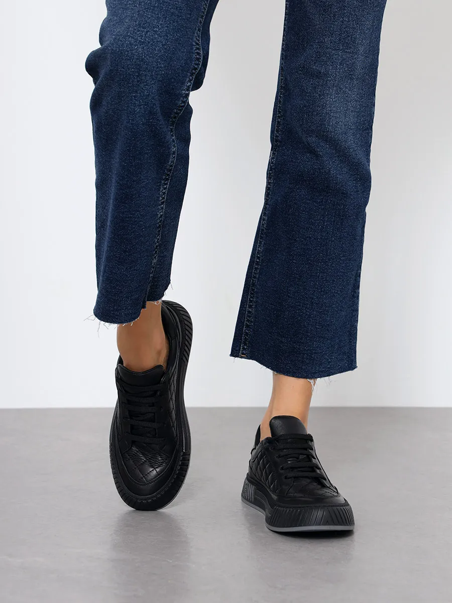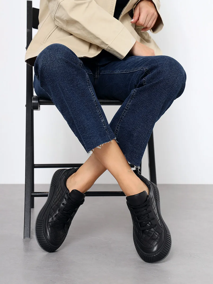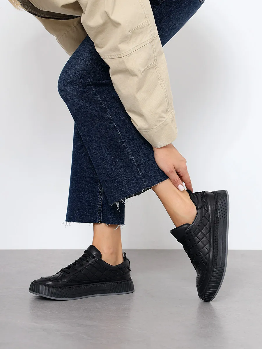 Кеды женские демисезонные, цвет черный, натуральная кожа