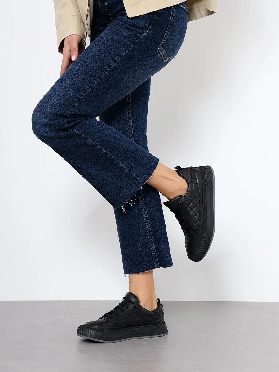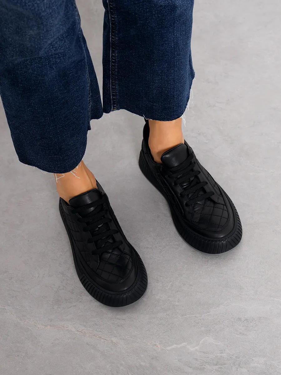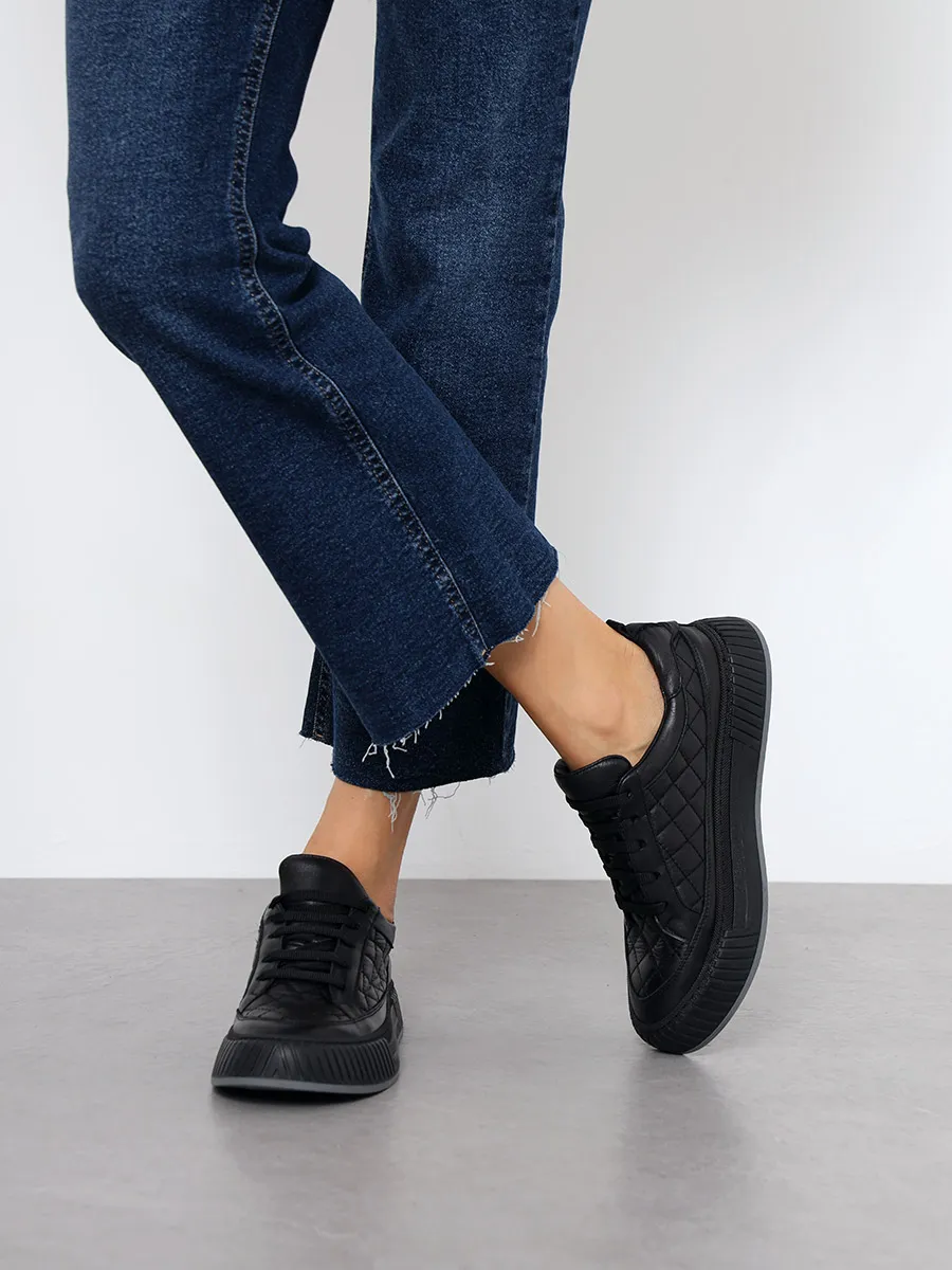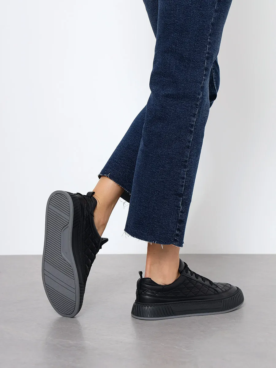 Кеды женские демисезонные, цвет черный, натуральная кожа