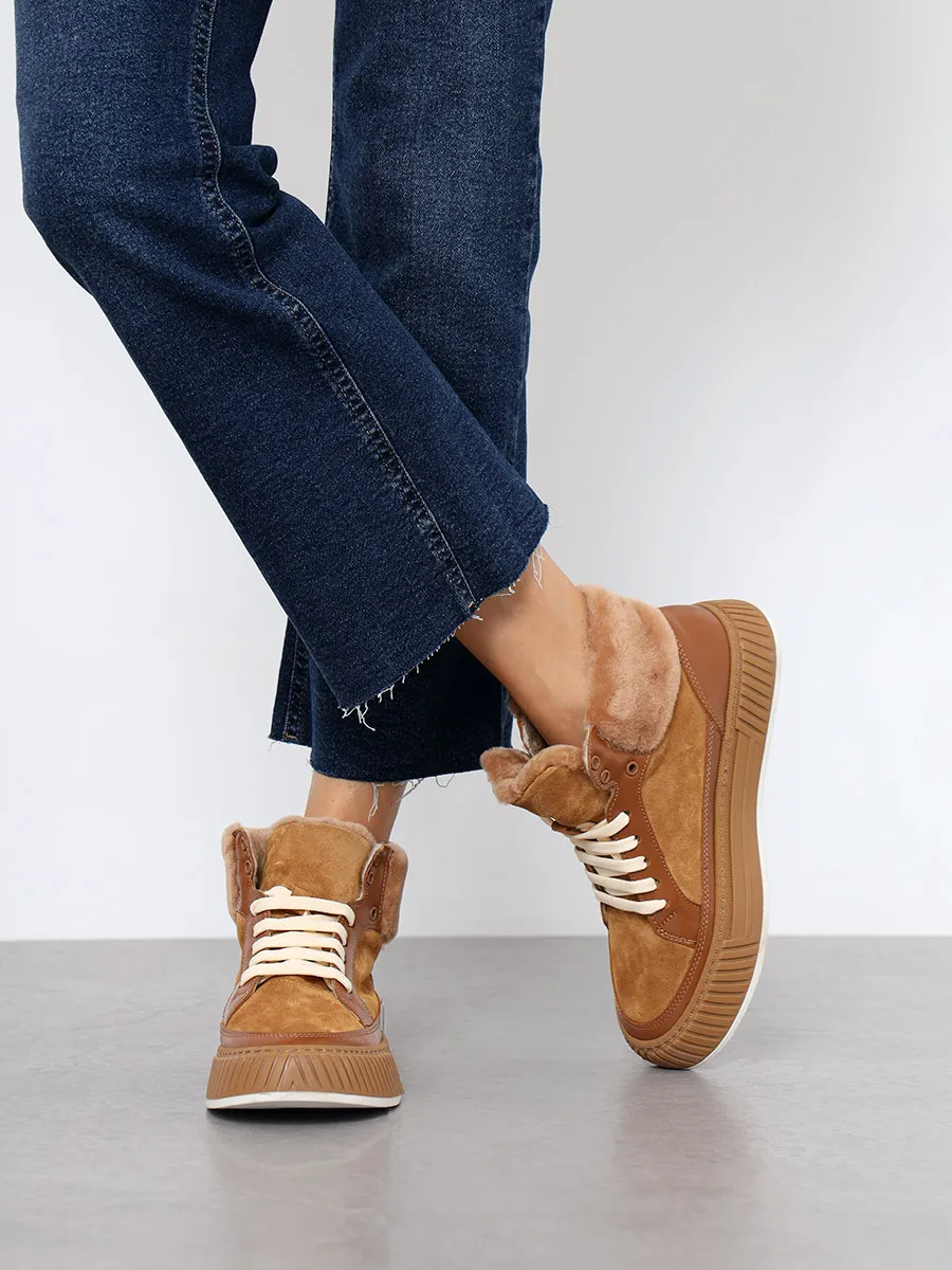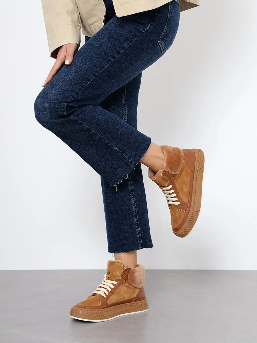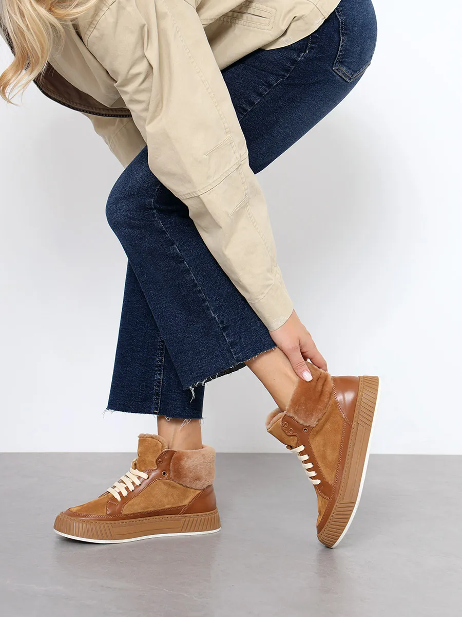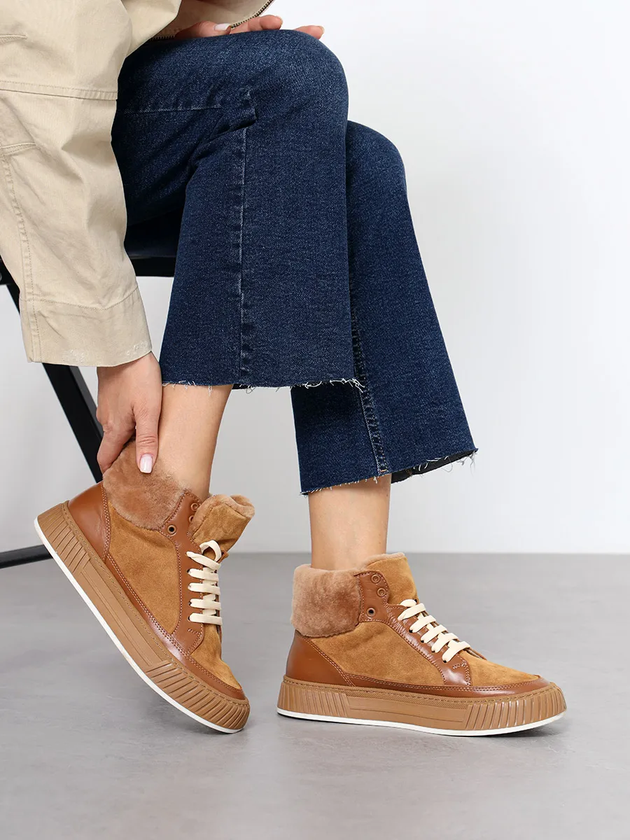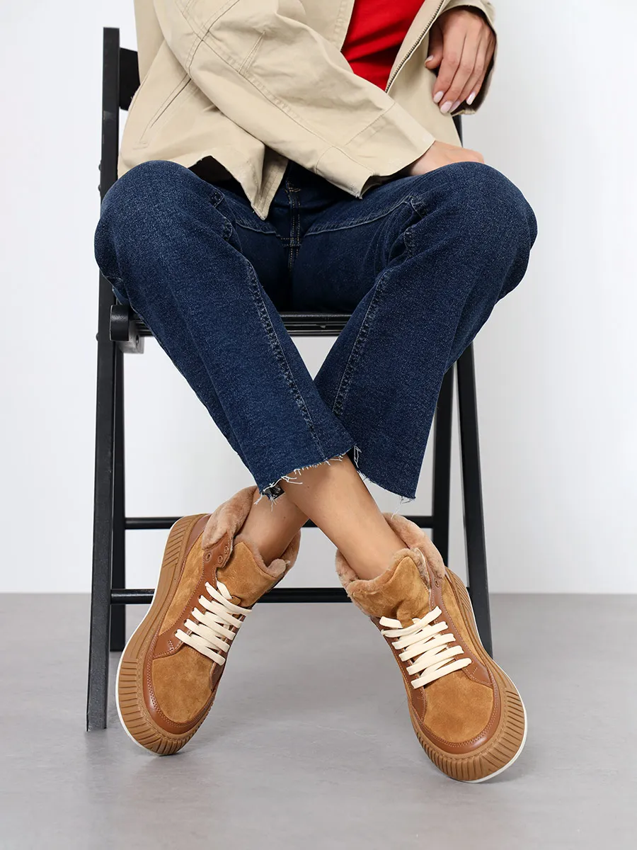 Кеды женские демисезонные, цвет рыжий, натуральный спилок