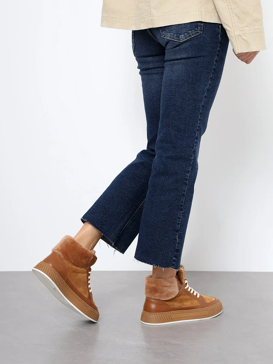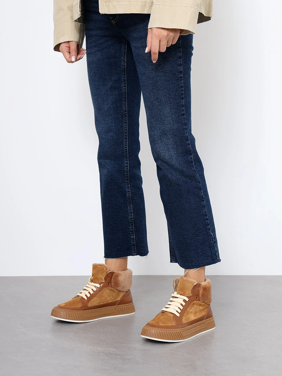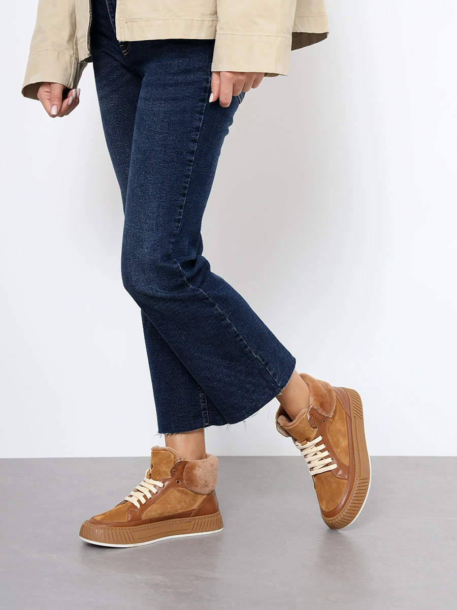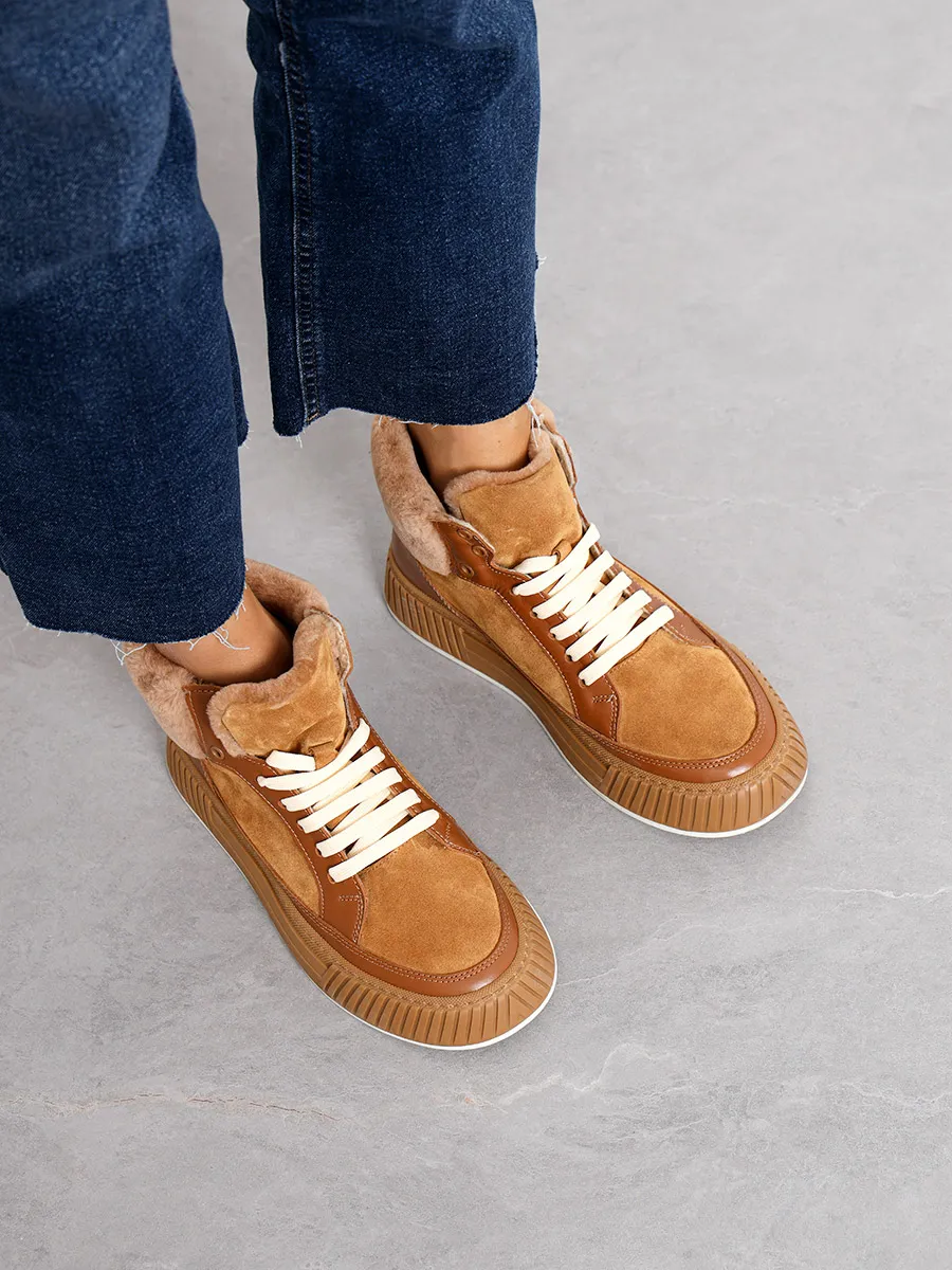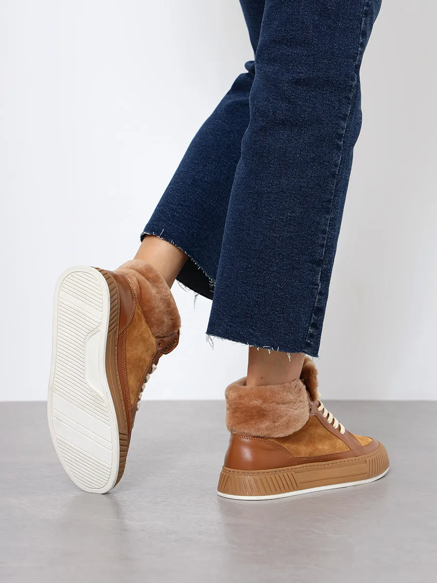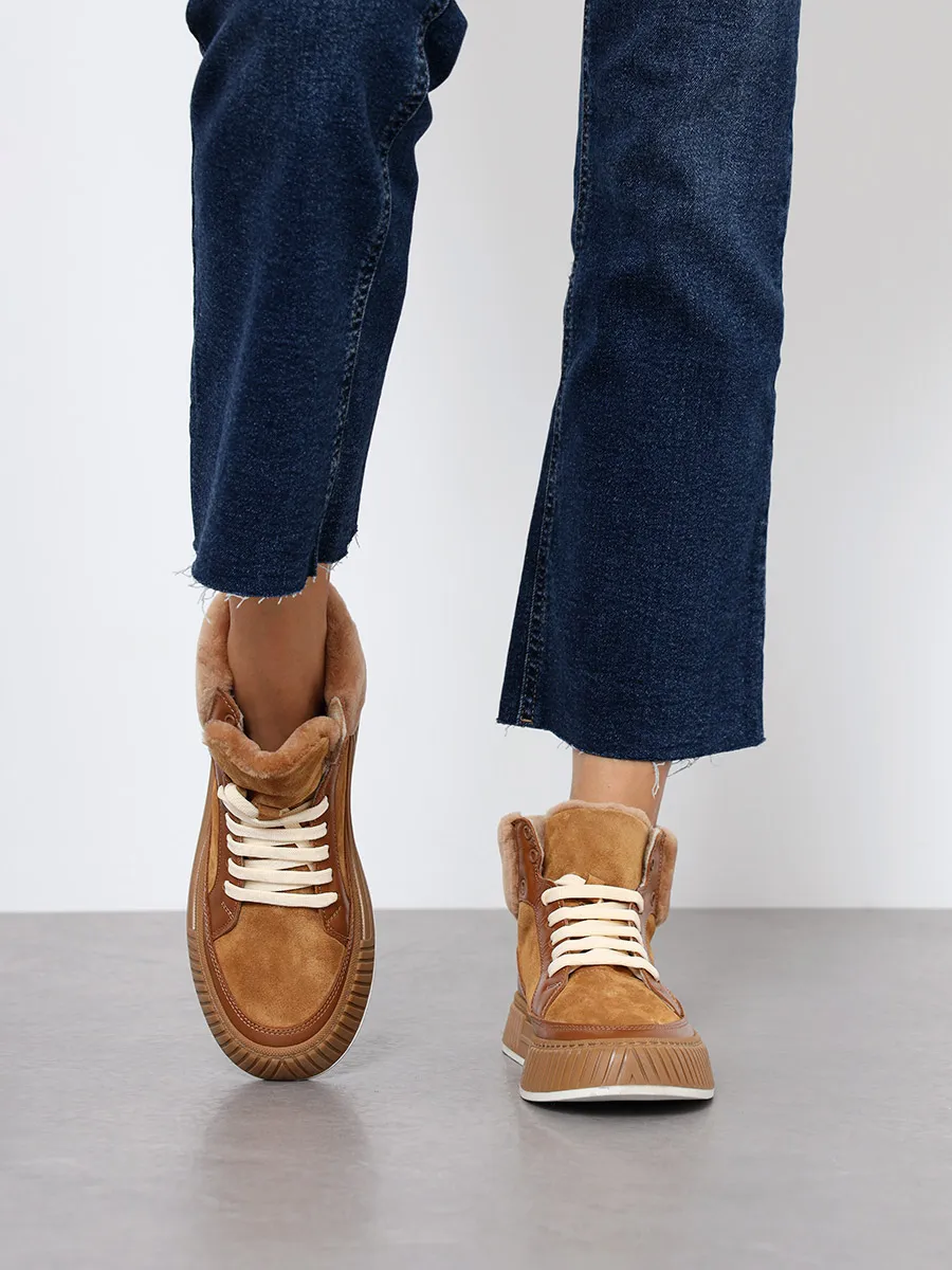 Кеды женские демисезонные, цвет рыжий, натуральный спилок