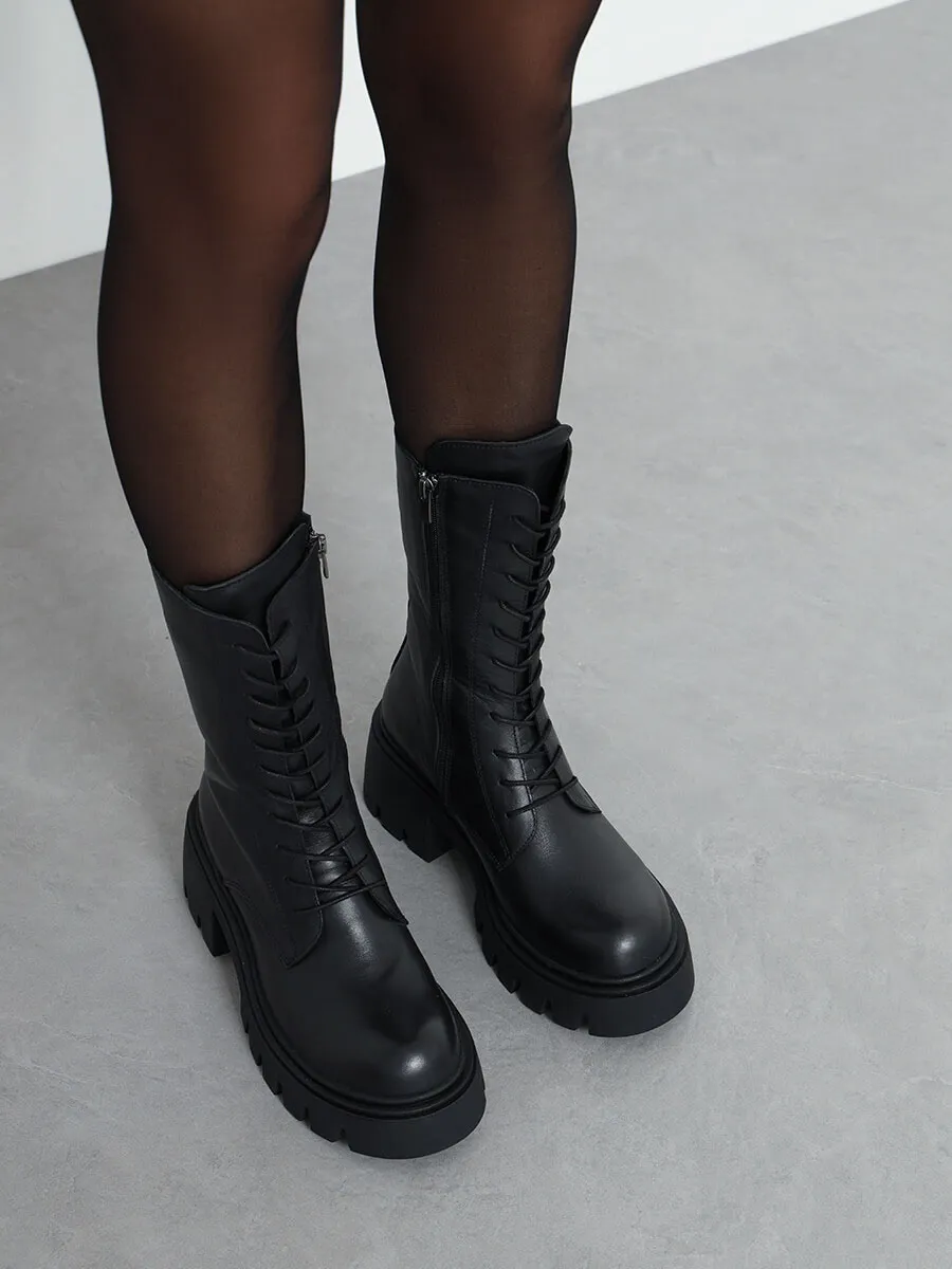 Ботинки женские демисезонные, цвет черный, натуральная кожа