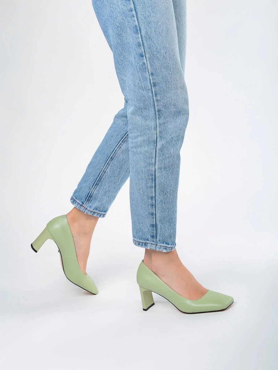 Туфли 1395405 женские цвет зеленый, натуральная кожа и полимерные материалы