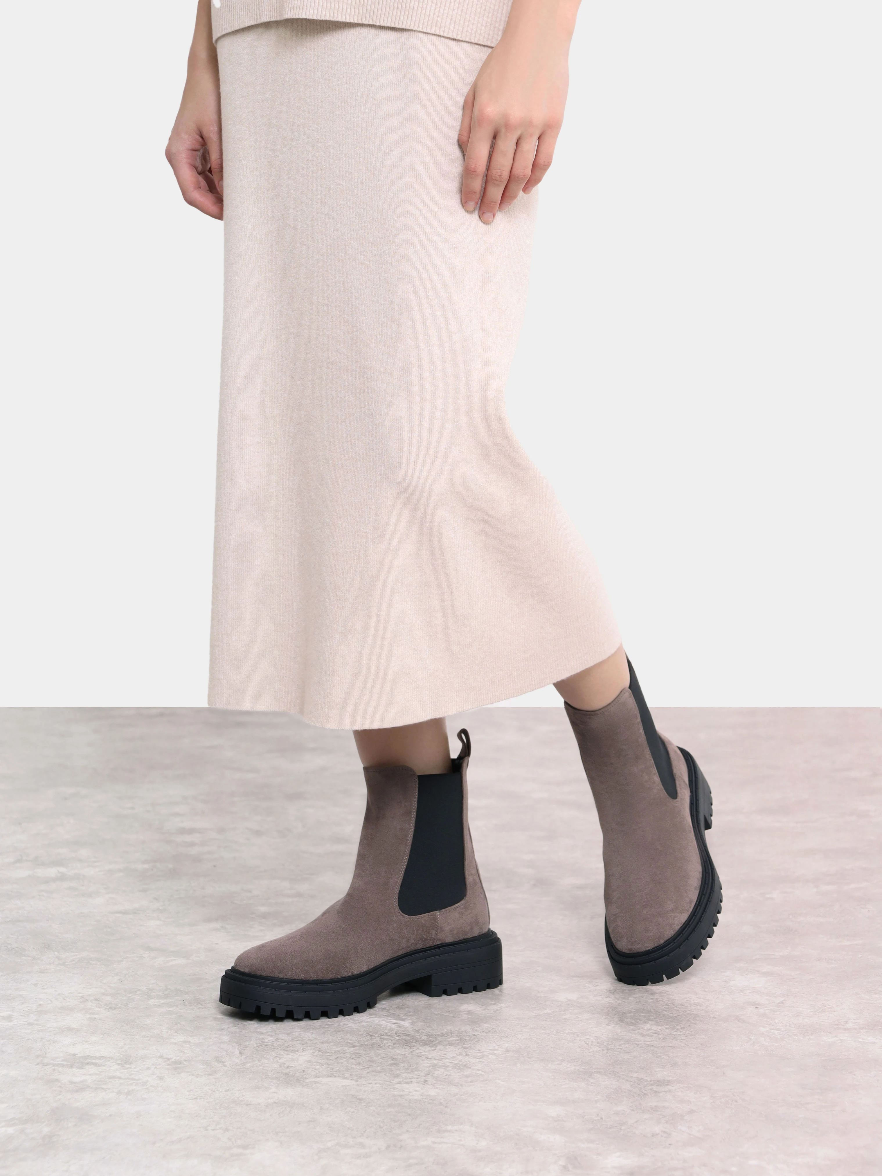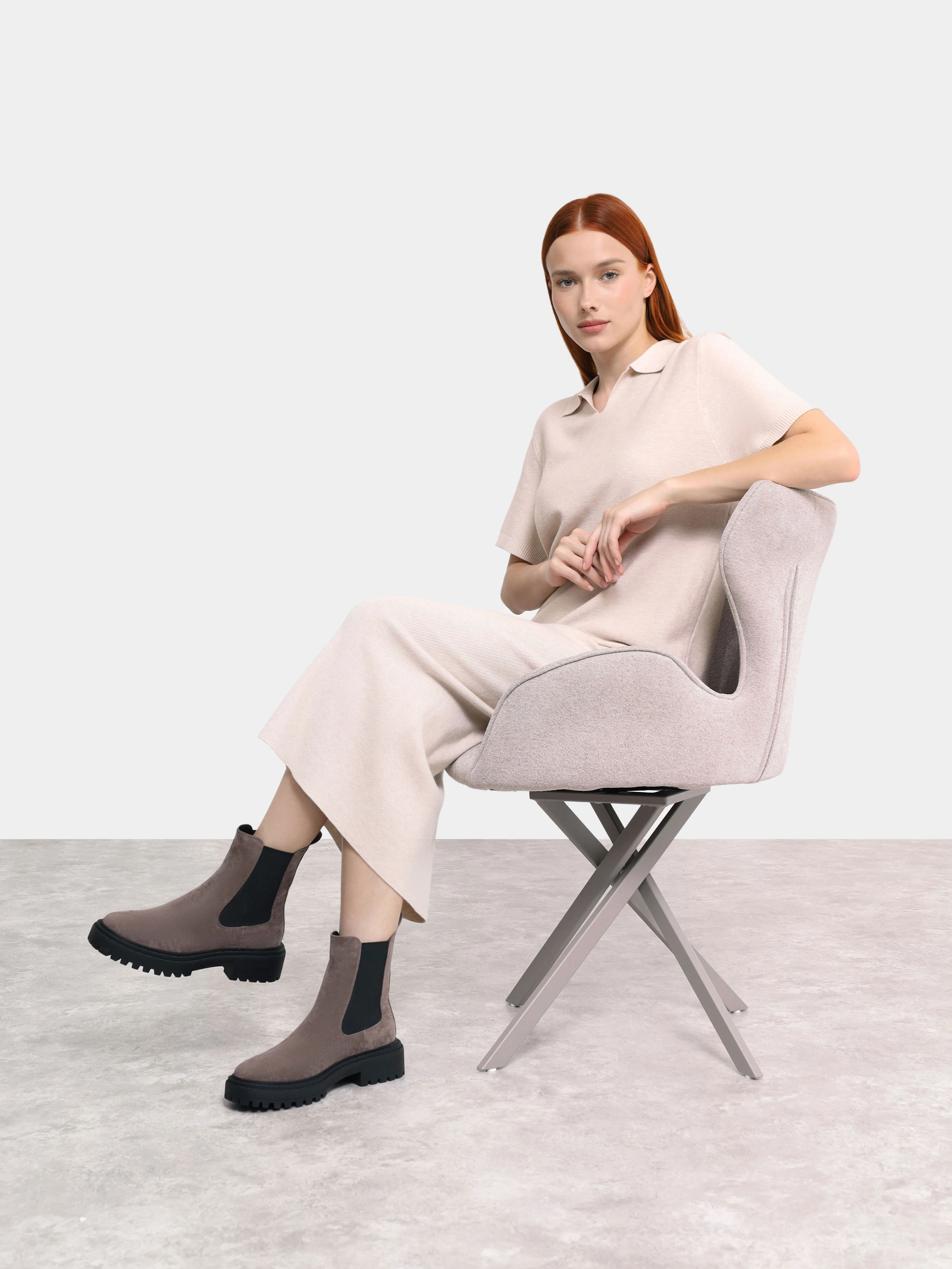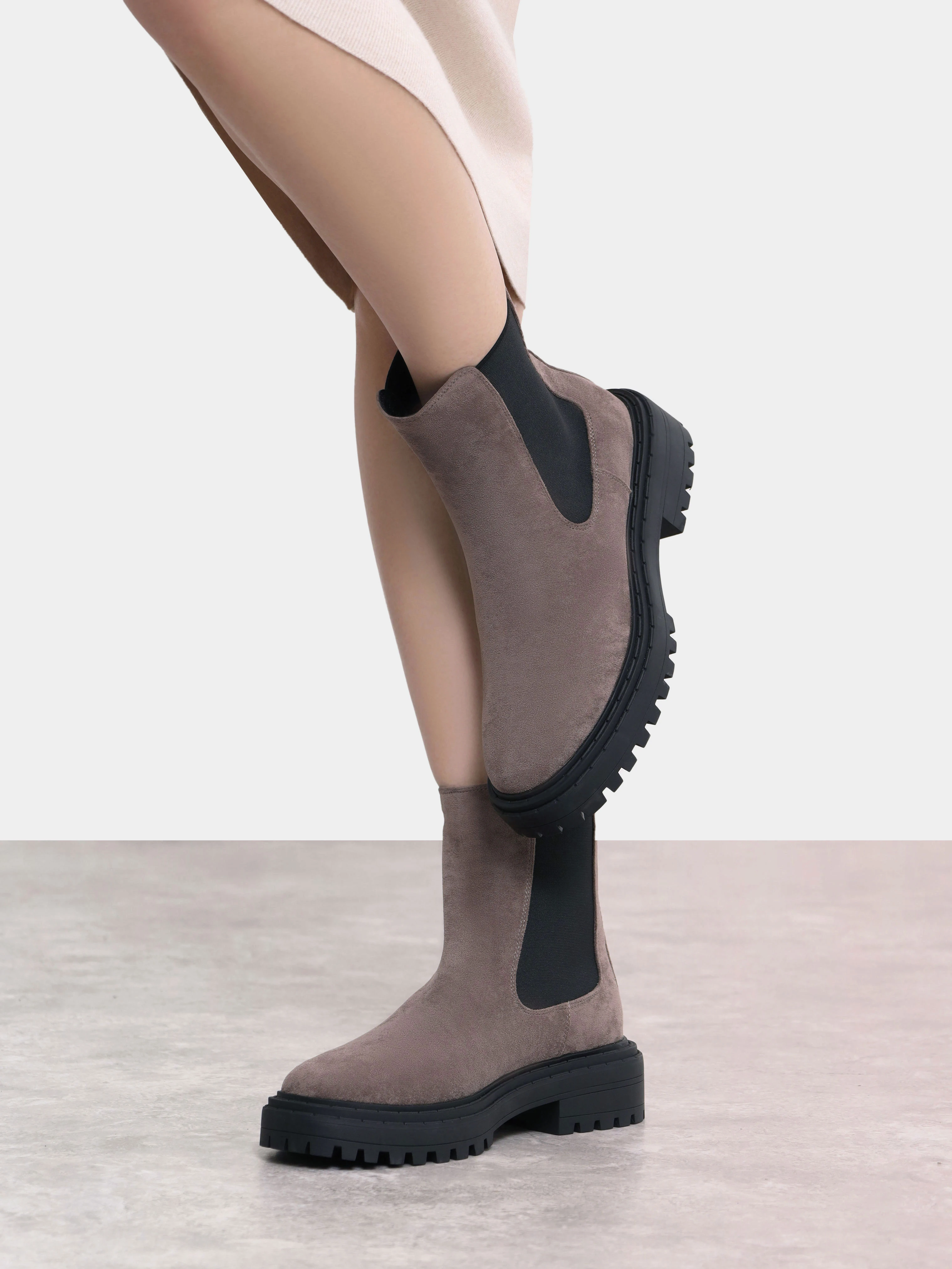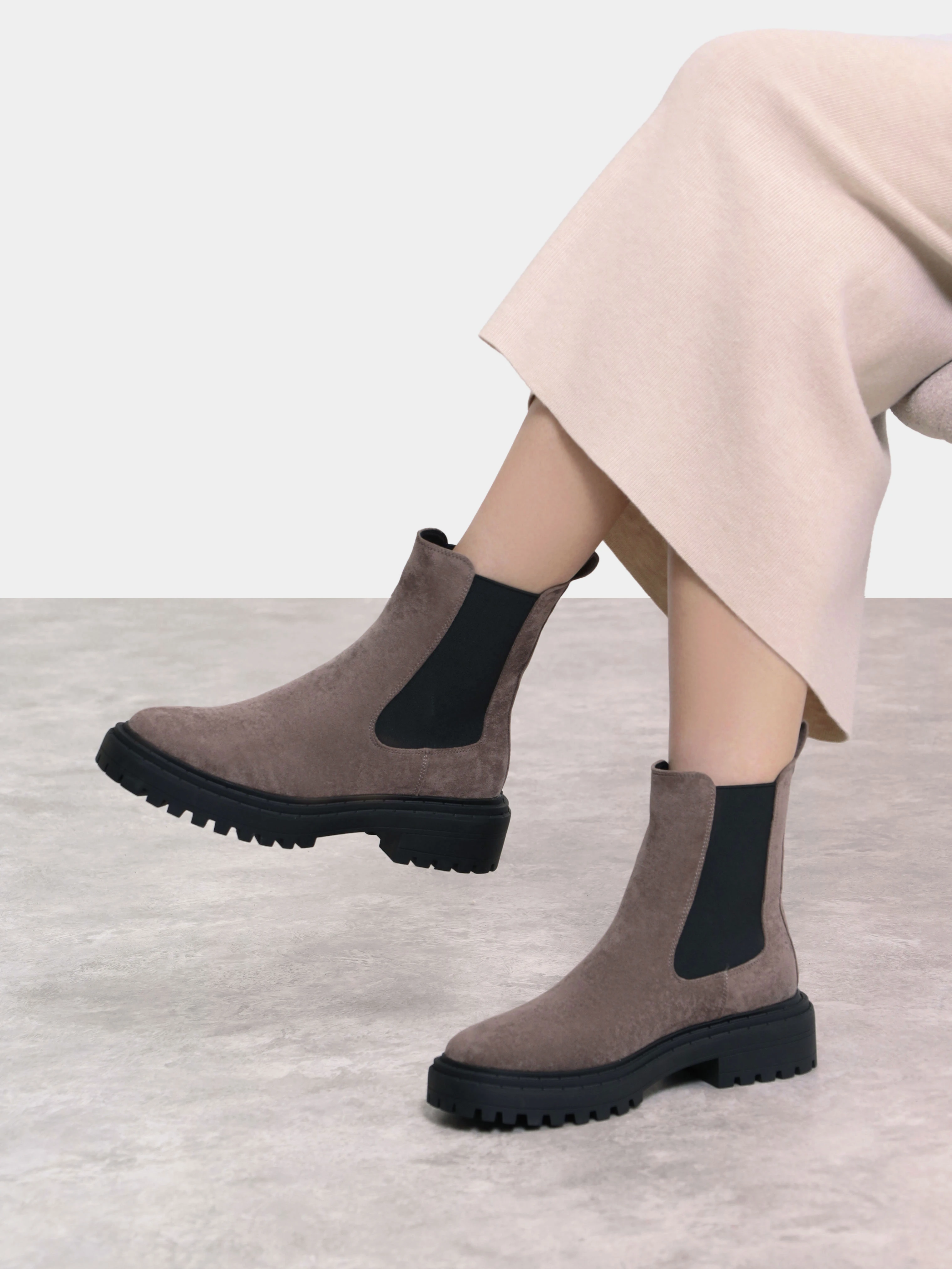 Ботинки женские демисезонные, цвет серый, искусственный велюр