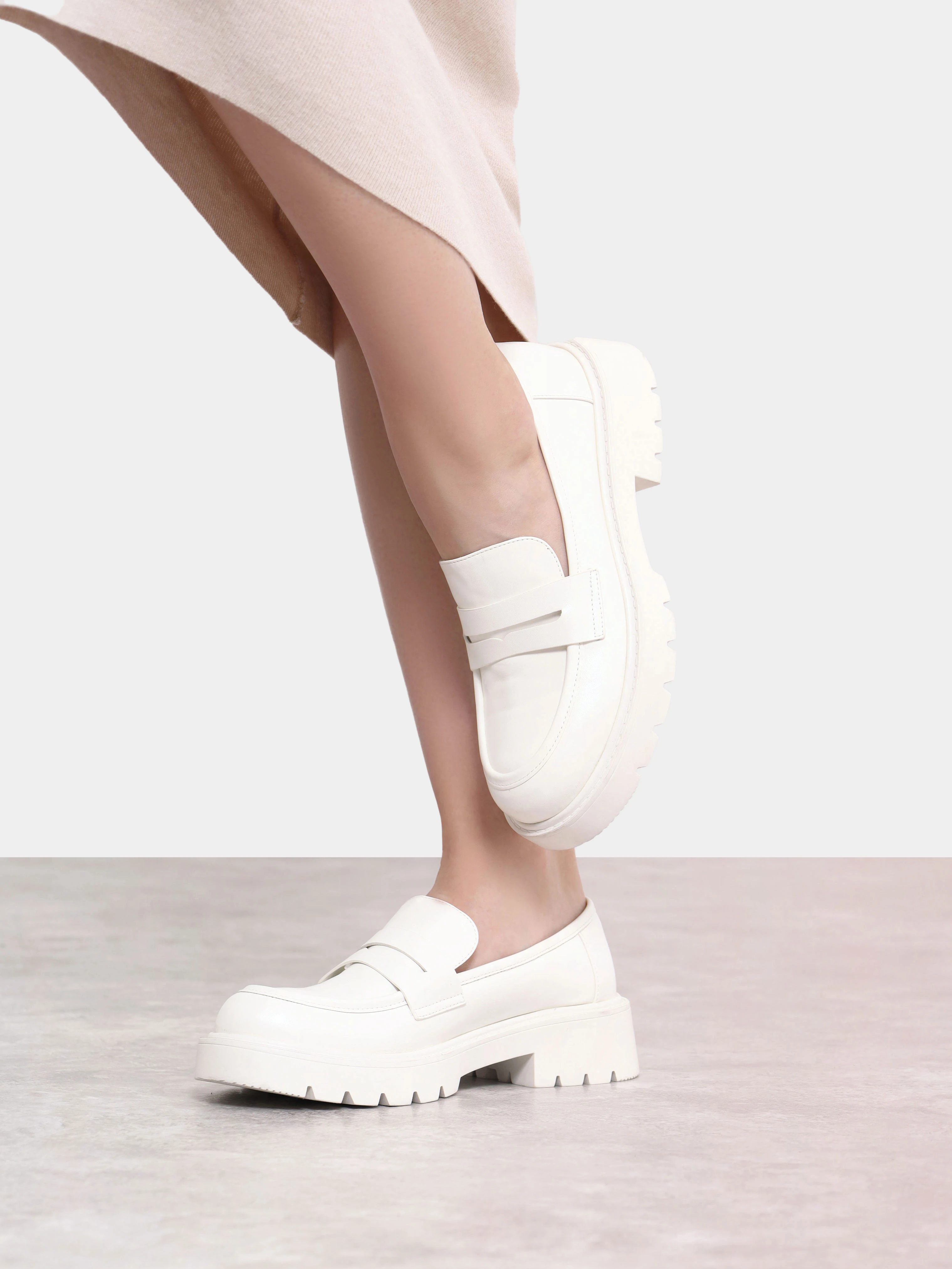 Лоферы женские всесезонные, цвет белый, искусственная кожа